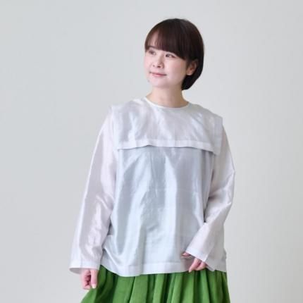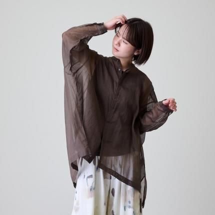 SOIL Super fine voile with selvage gathered L/SL shirt(2color)