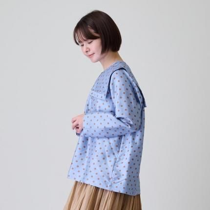 首の後ろ、肩や身頃の切り替え部分、袖口など、随所に分散してギャザーを施すことで、着映えがしながらも着太りしない秀逸なシルエットを生み出しています。