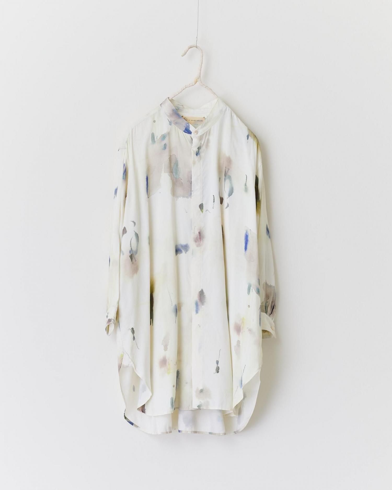 滑らかでしなやかなレーヨンシルクの生地が生み出す美しいドレープと上品な光沢がシャツの魅力をより一層高めています。