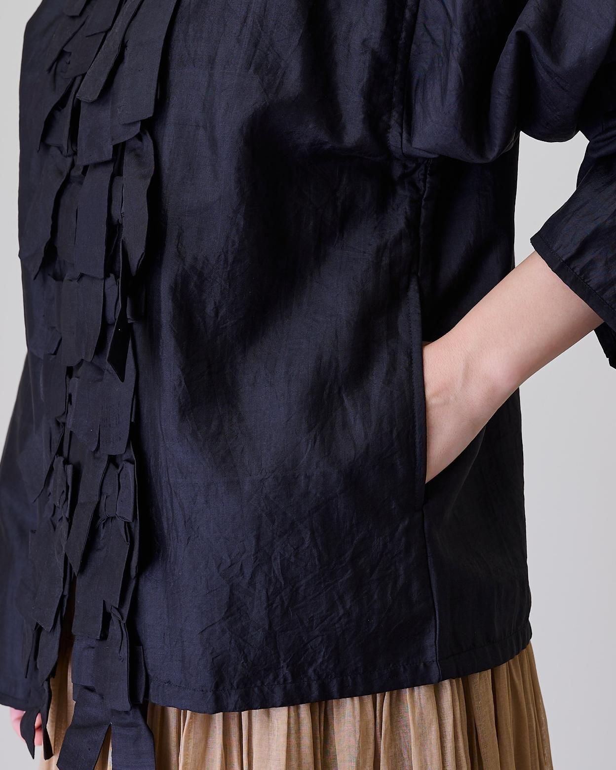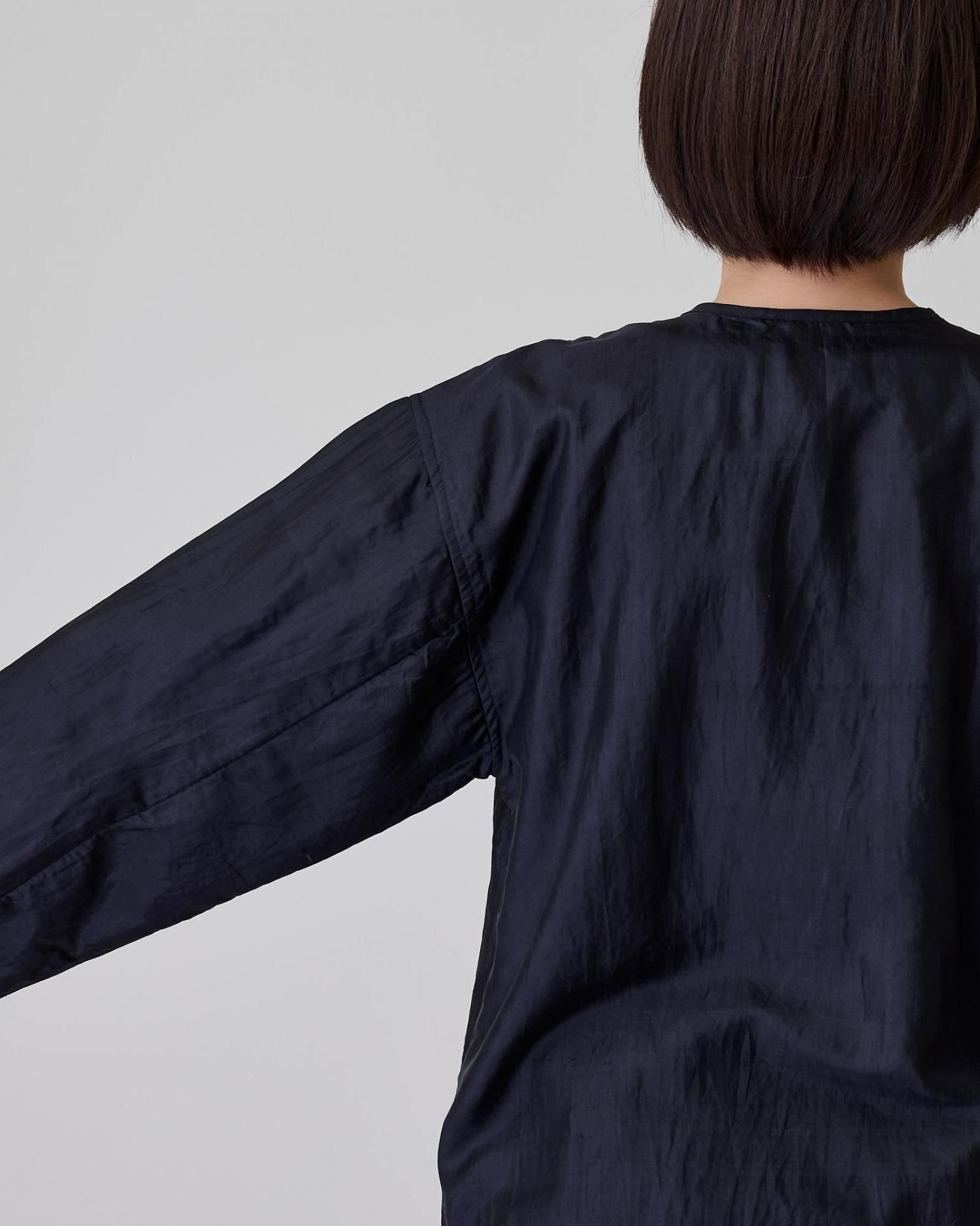 ブラウスとジャケットのイイトコドリをしたようなアイテムで、ブラウス感覚で気楽に着られ、ジャケットのような使い勝手と上品さのある便利な一着です。