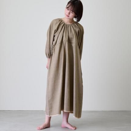 1日にわずか3mしか作れないというシルク地は、野蚕ならではのラフさに、手紡ぎ・手織りの不均一さが加わり、デイリーに似合う独特のシルクの風合いを生み出しています。