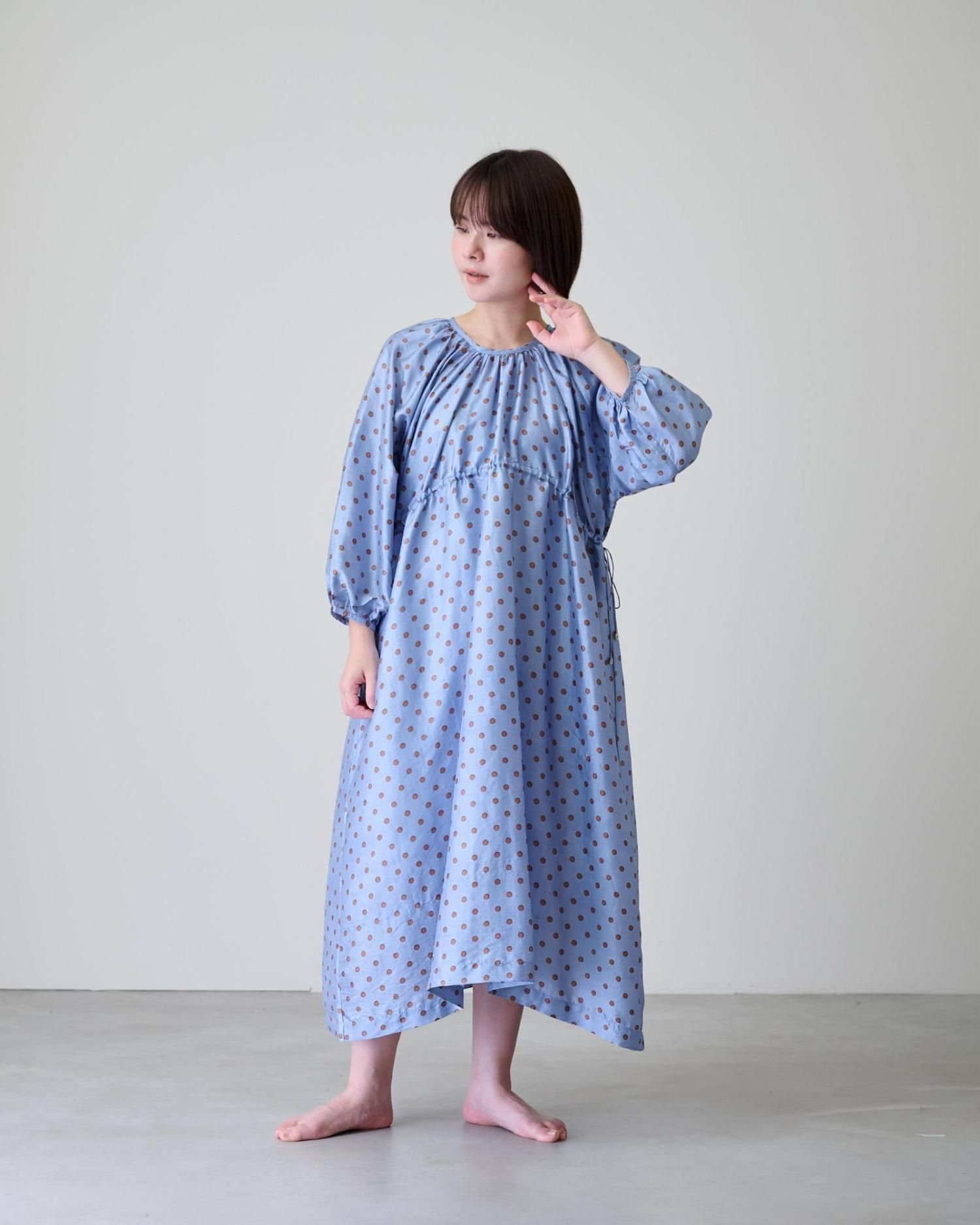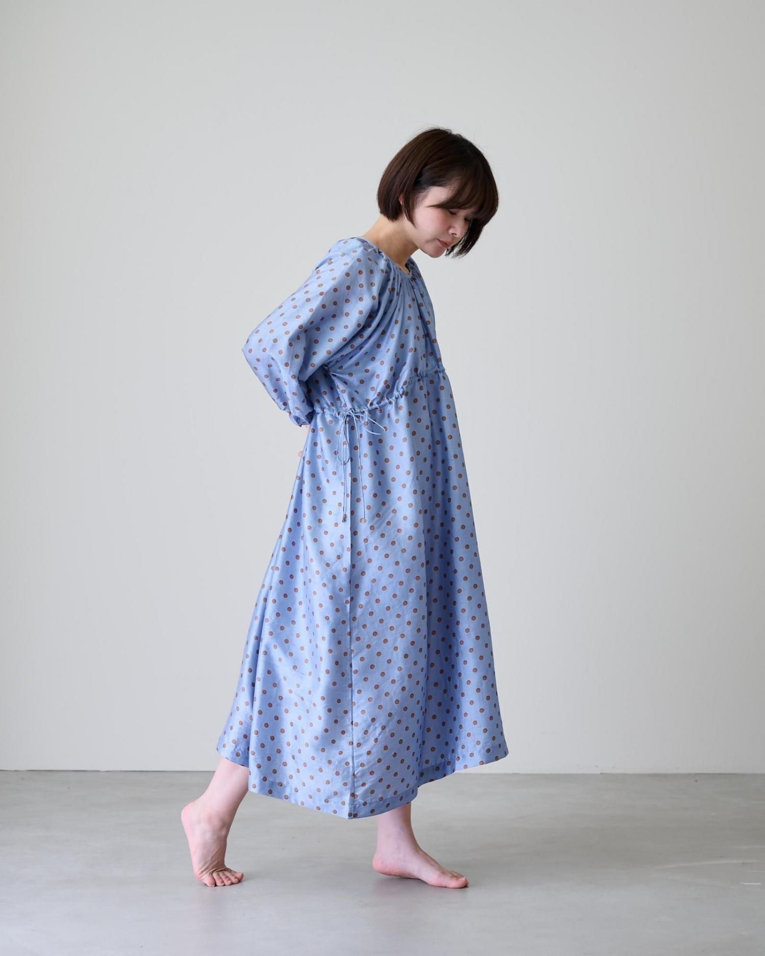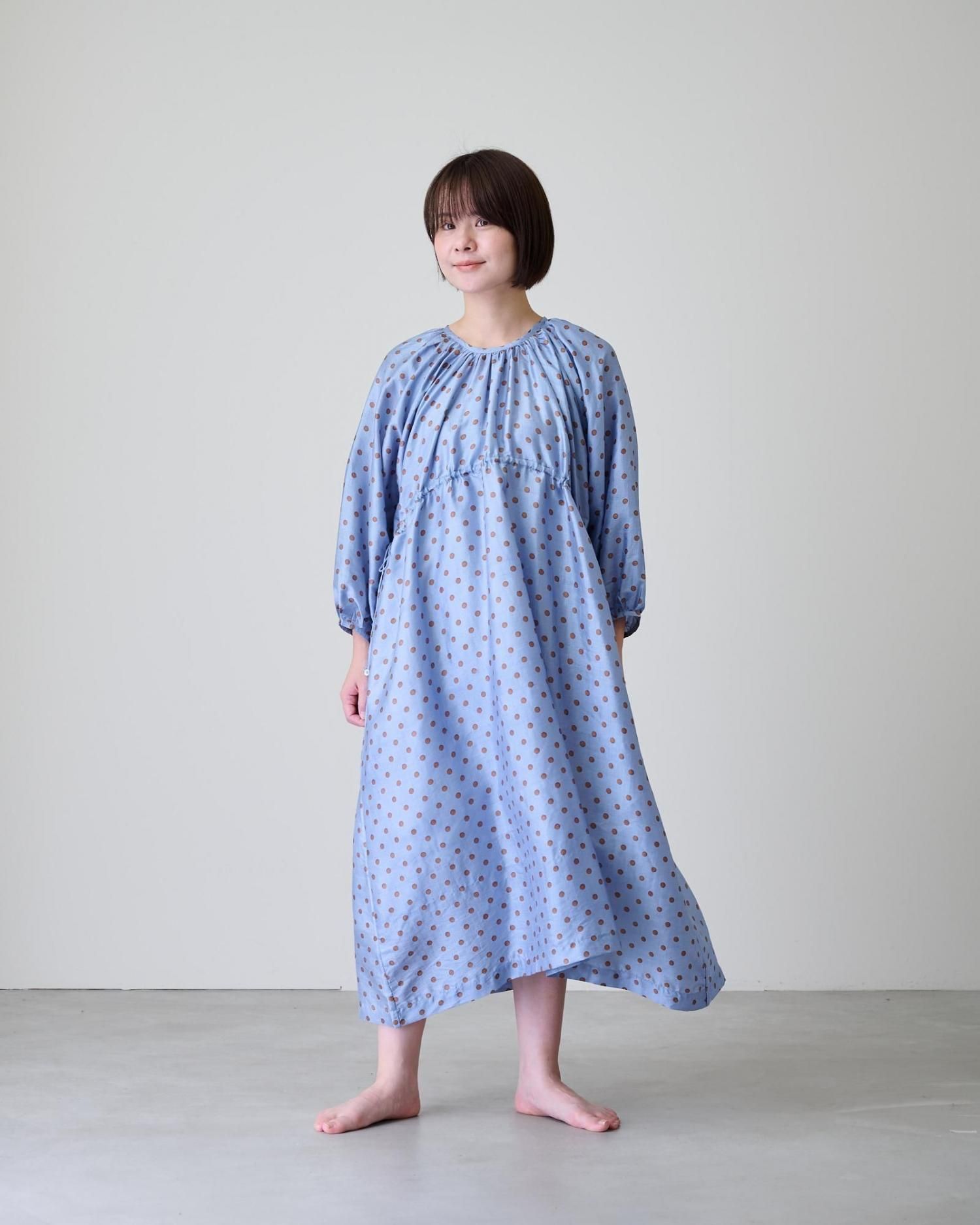 手紡ぎ・手織りのカディシルクで仕立てたワンピースは、まるで空気を纏っているように軽やか。