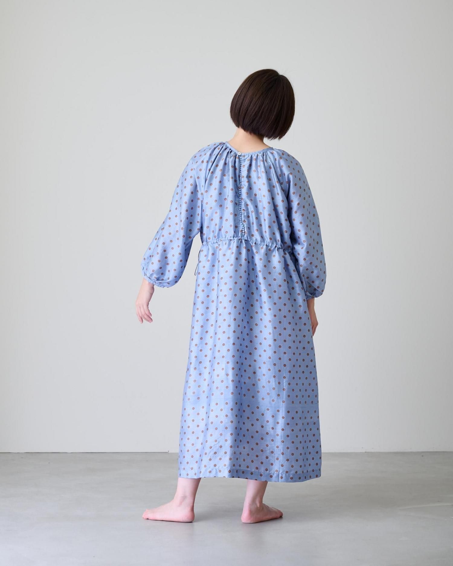 手仕事ゆえの織りムラやかすれ、ヨレやフシ、そして繊維についている僅かな汚れやひっかき傷などが見受けられることもありますが、それが逆に風合いとなり、デイリーにも気兼ねなく着られるリラックス感のあるワンピースに仕上がっています。
