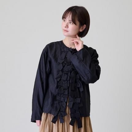たくさん並んだ包みボタンは実は飾りで、一番上だけを外して脱ぎ着できるようになっています。