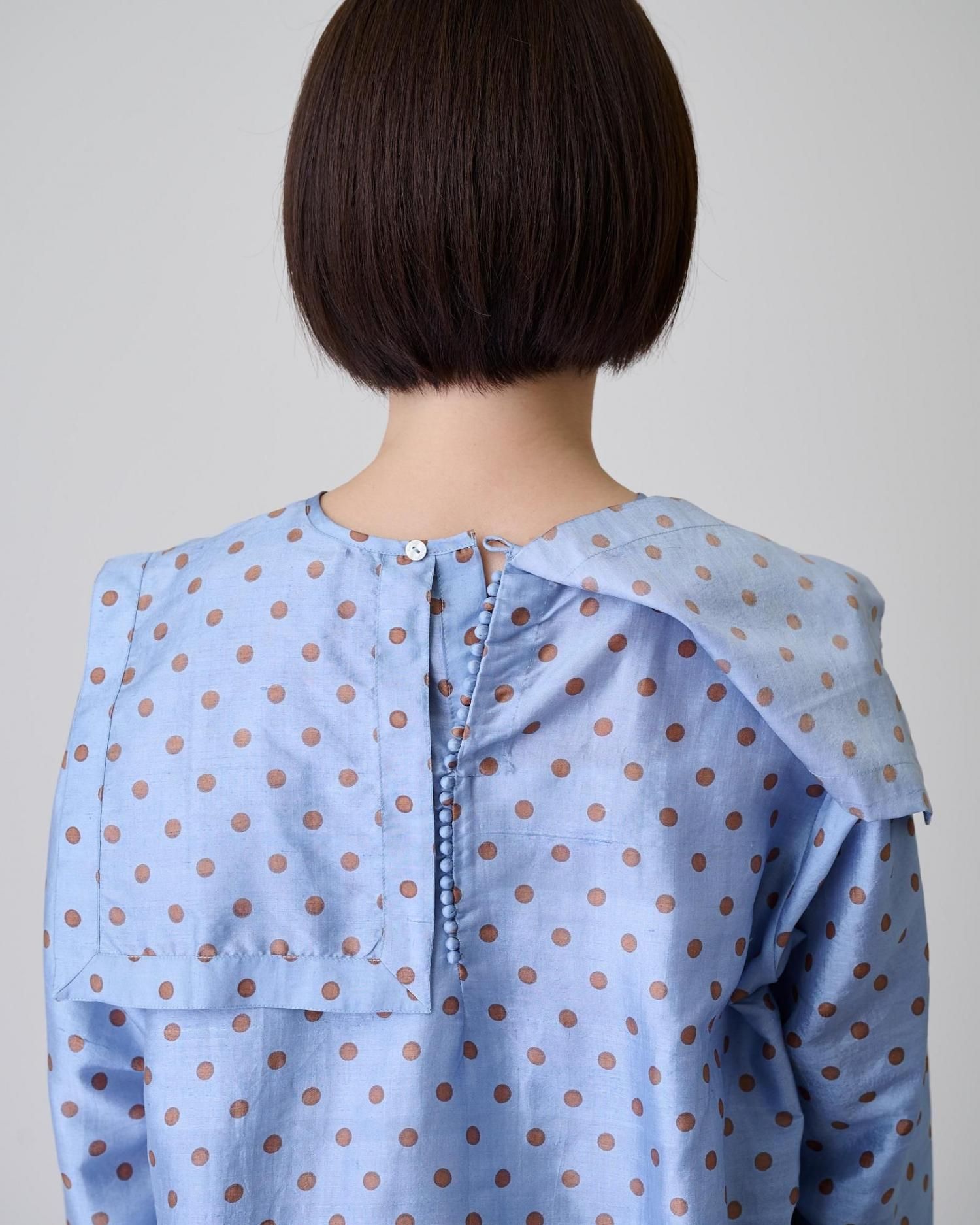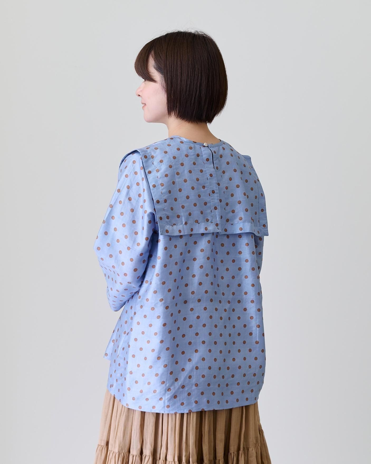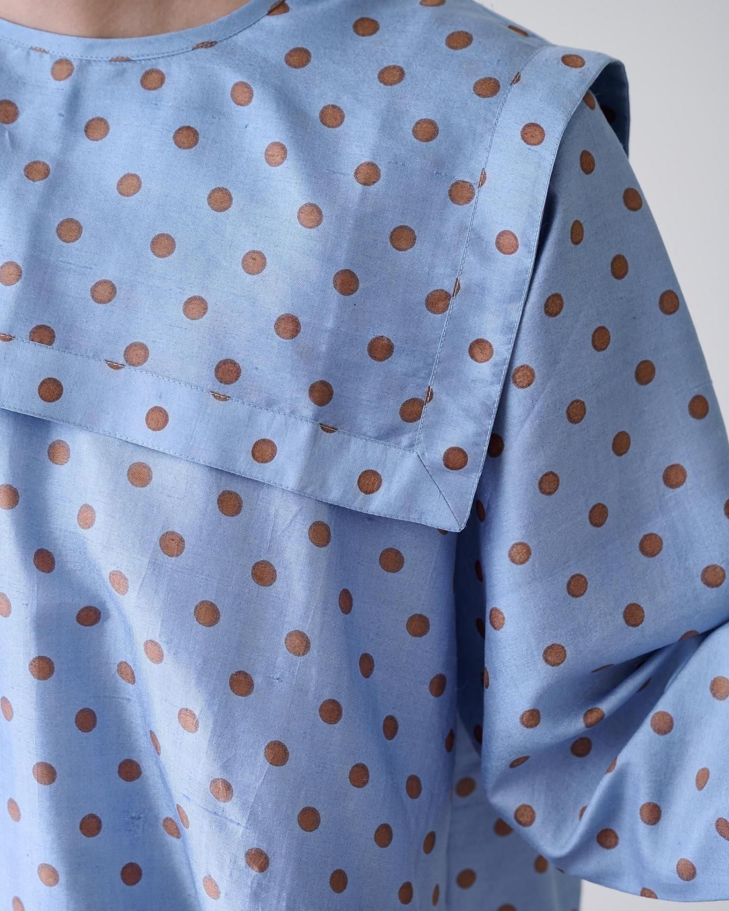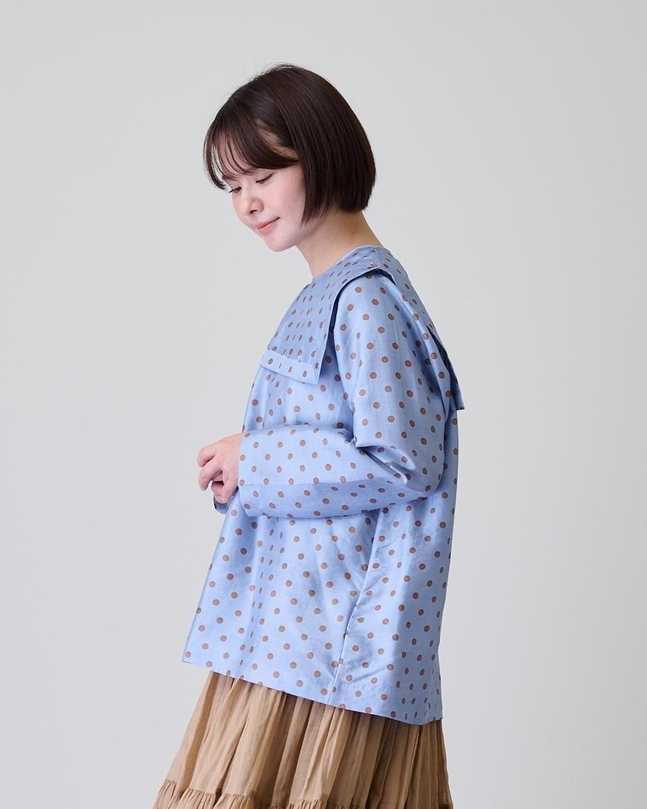 Khadi silk polka dots print Buck button sailor blouse(2color)