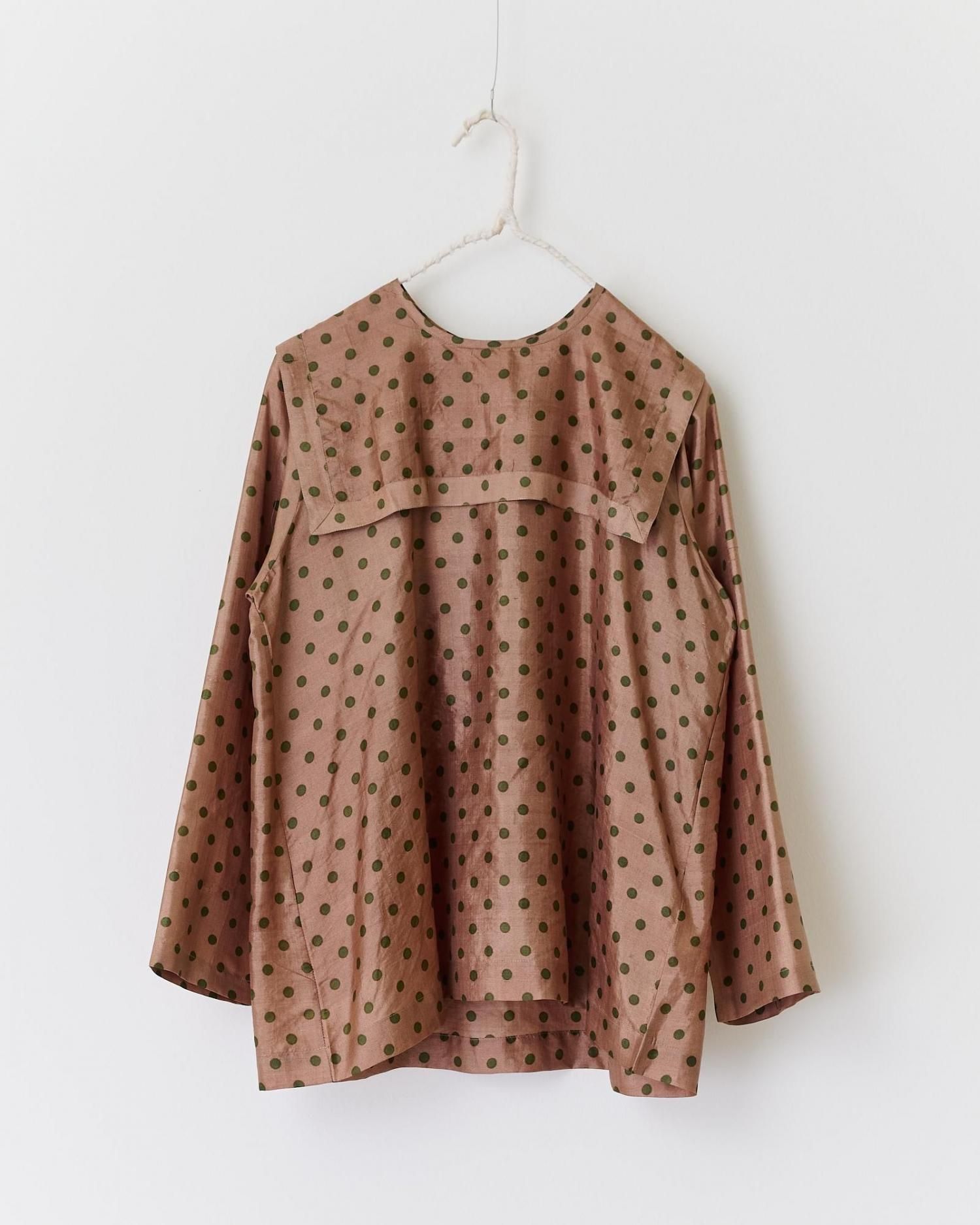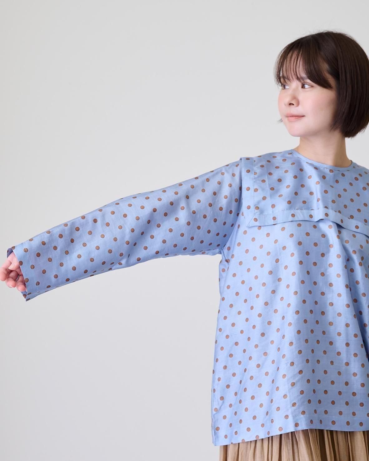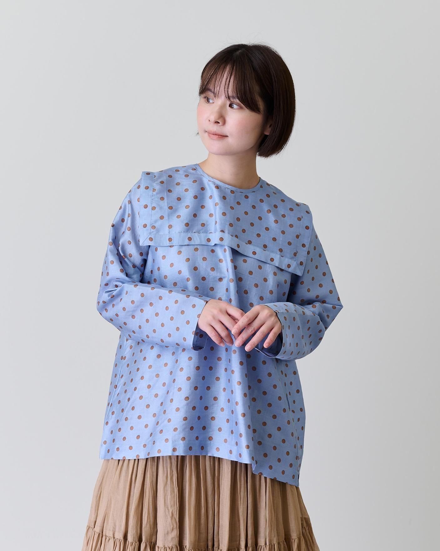 Khadi silk polka dots print Buck button sailor blouse(2color)