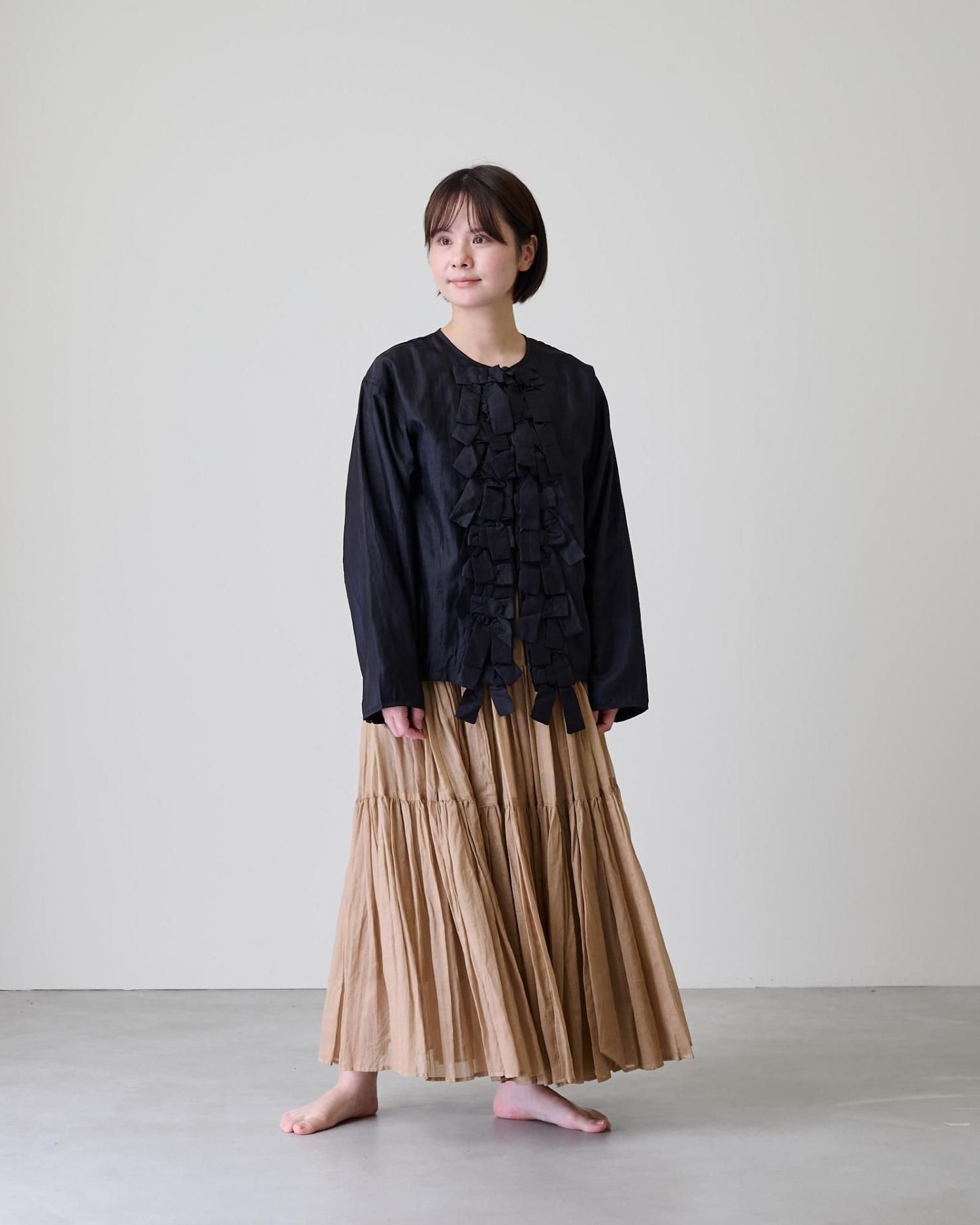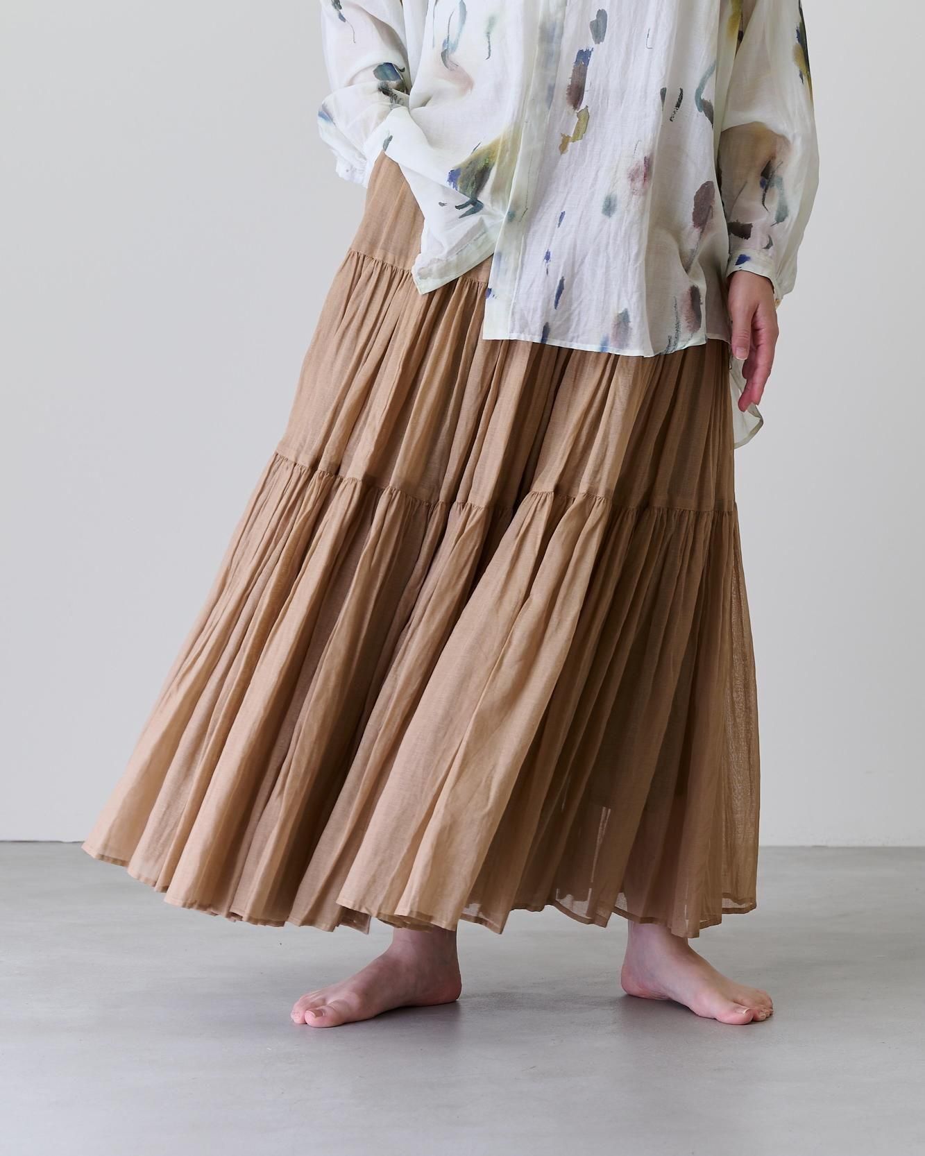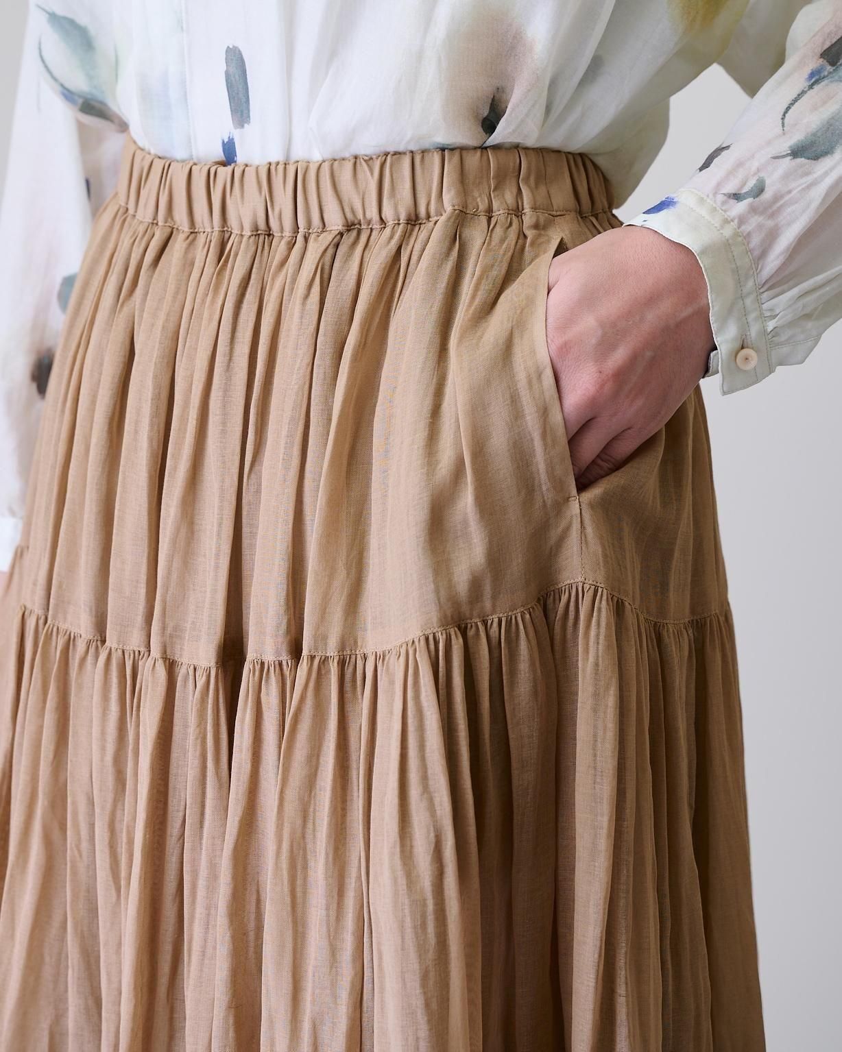 その特別な素材を贅沢に使った、ティアードスカートです。