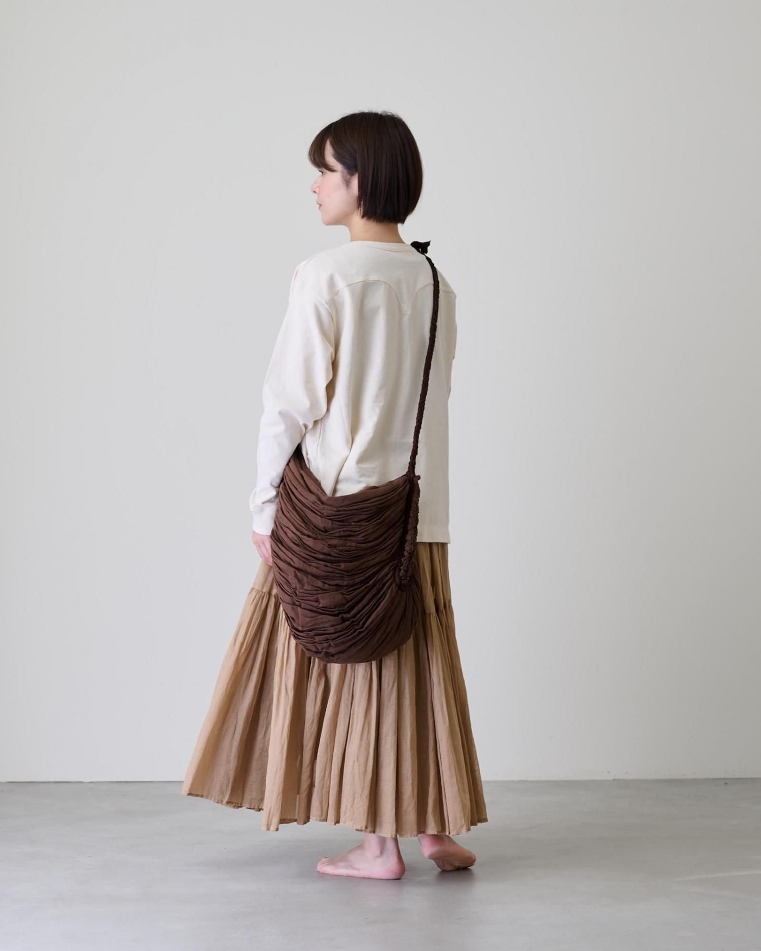 このバックは、元はバッグを作ろうと思ってデザインをしたものではなく、服を作る過程で様々な技法を試していた時に偶然生まれたものだそうです。