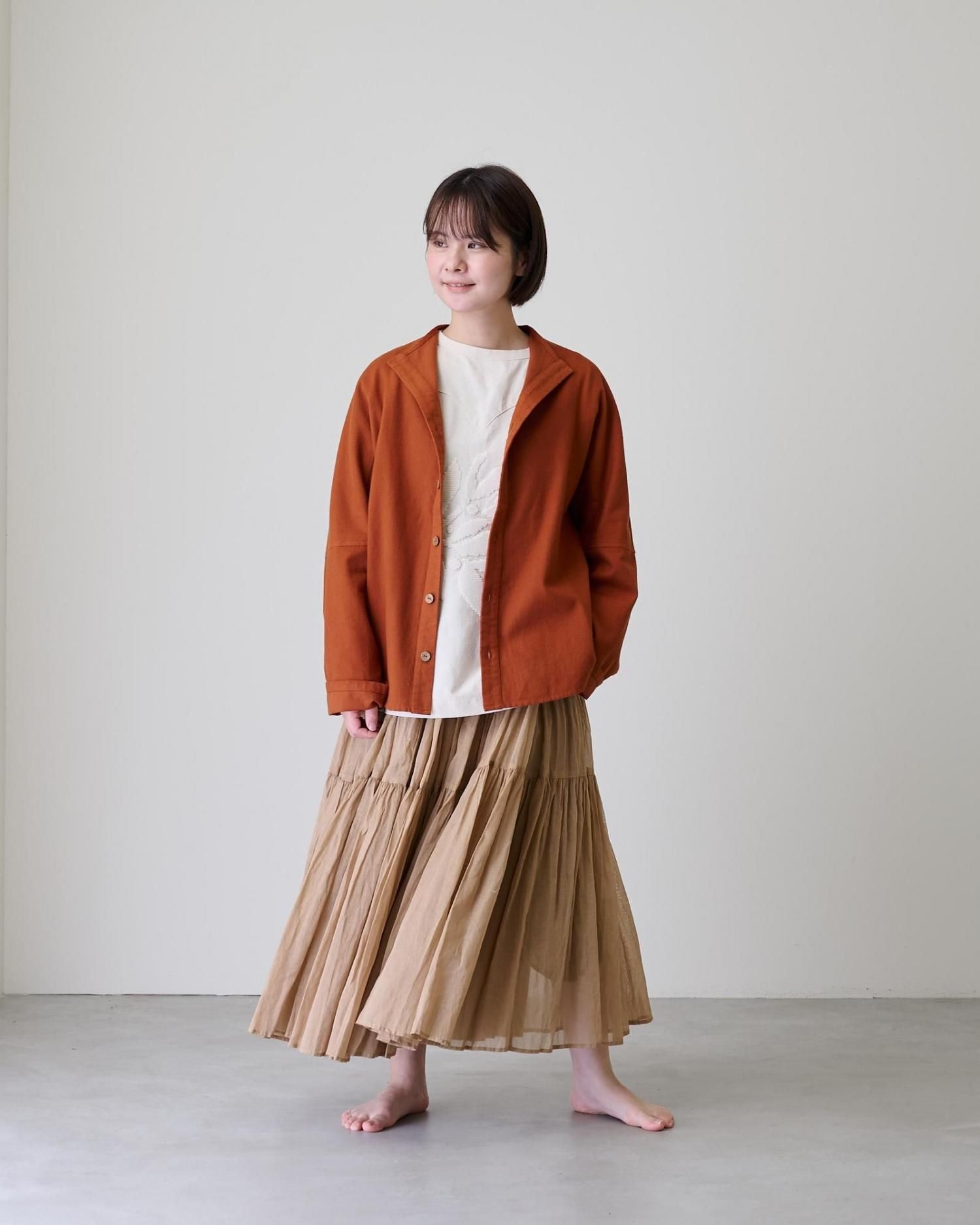 ブラウスとして着ても、前を開けて羽織って良い、着回し抜群の一着です。