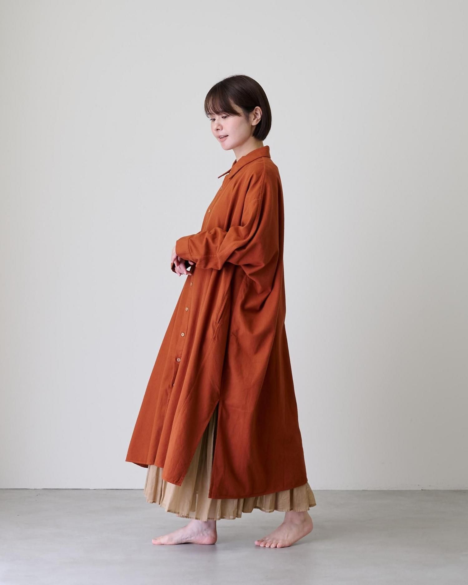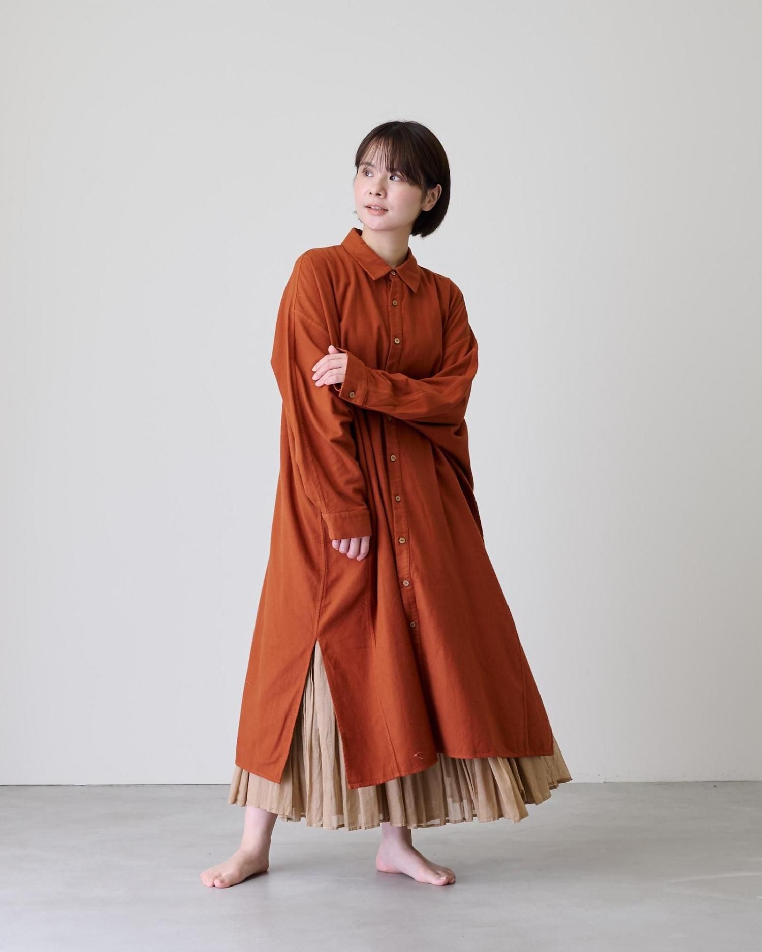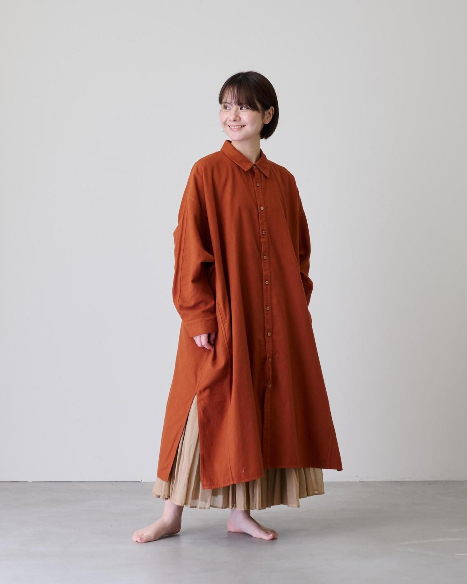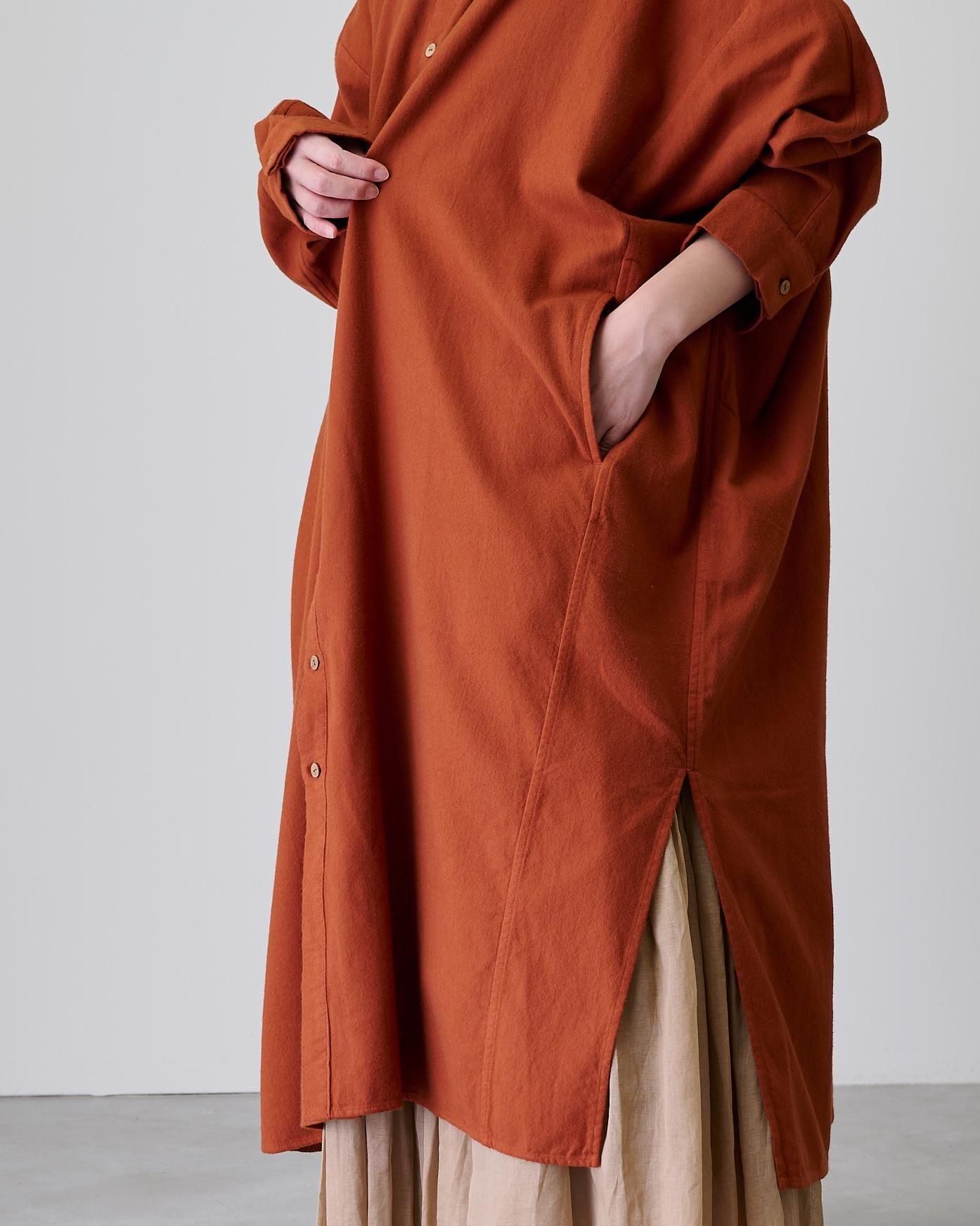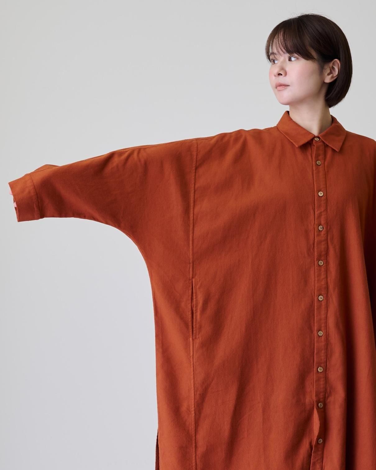 そんな極上のコットンネル地で仕立てたのは、着回し抜群の使い勝手の良いシャツワンピです。
