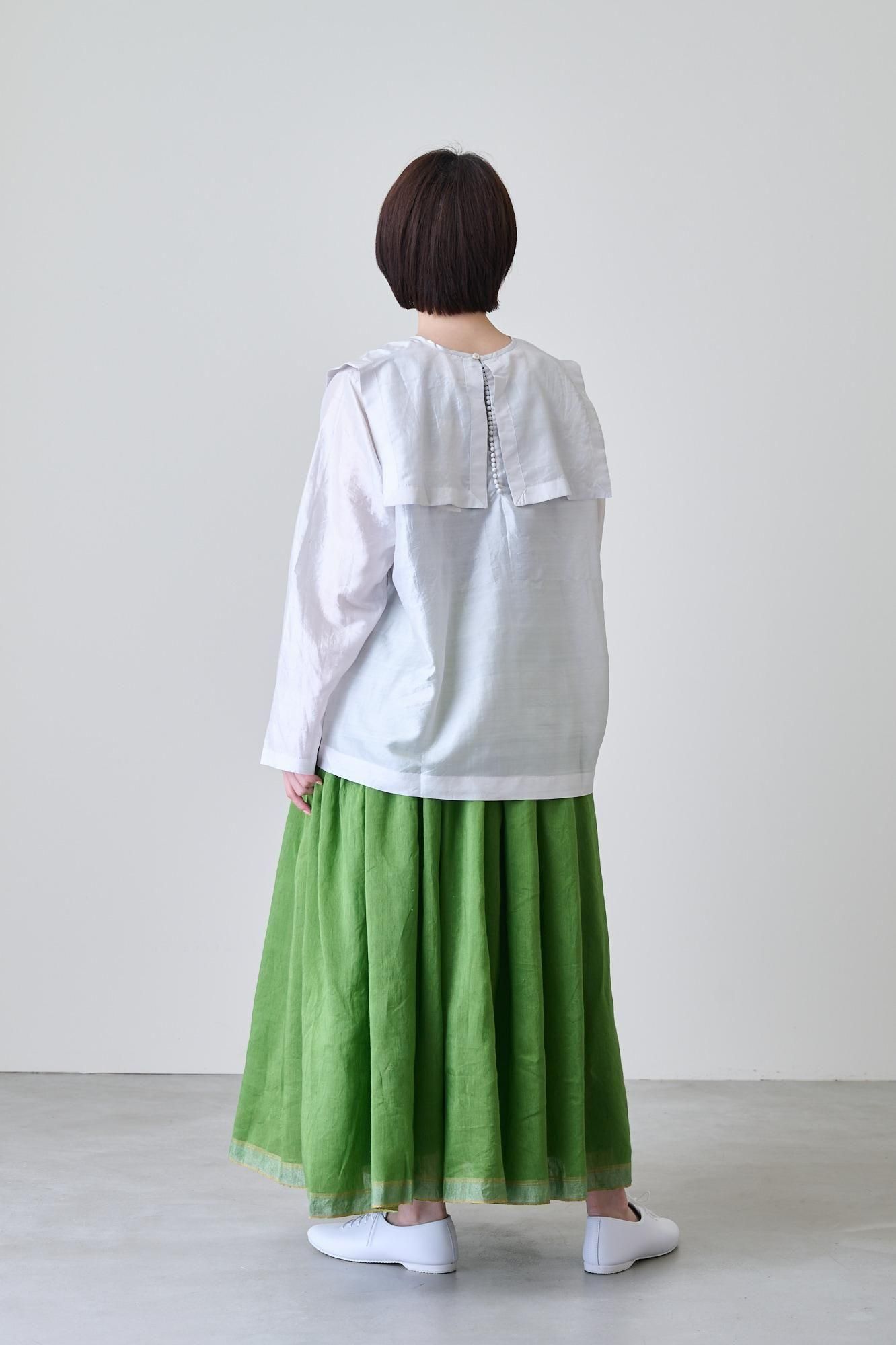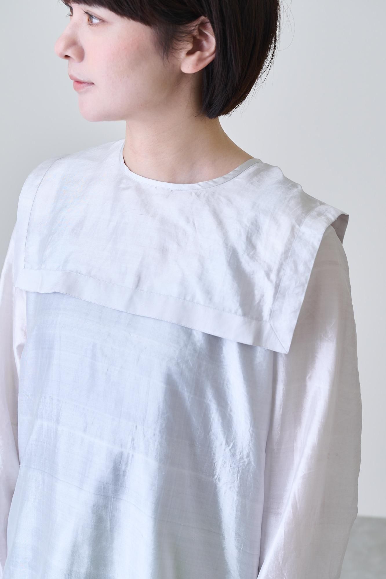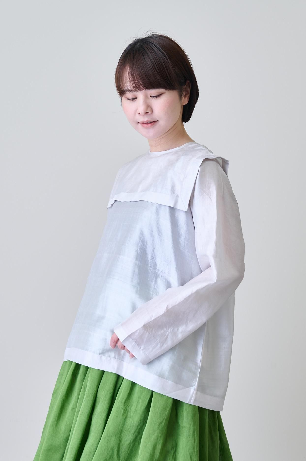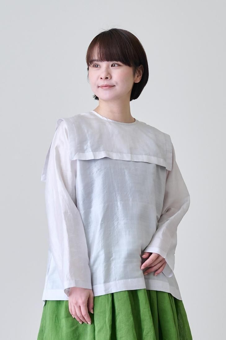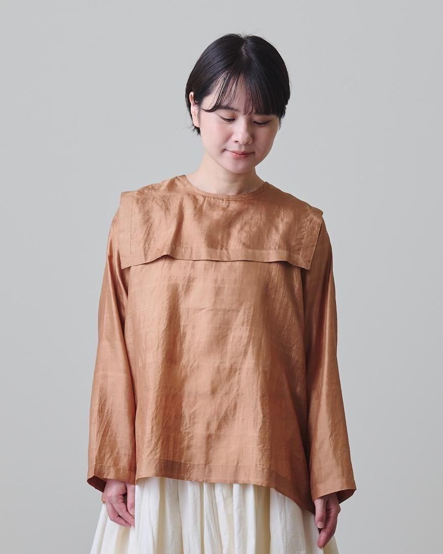 カディシルクで仕立てたブラウスは大きなセーラーカラーがポイントです。