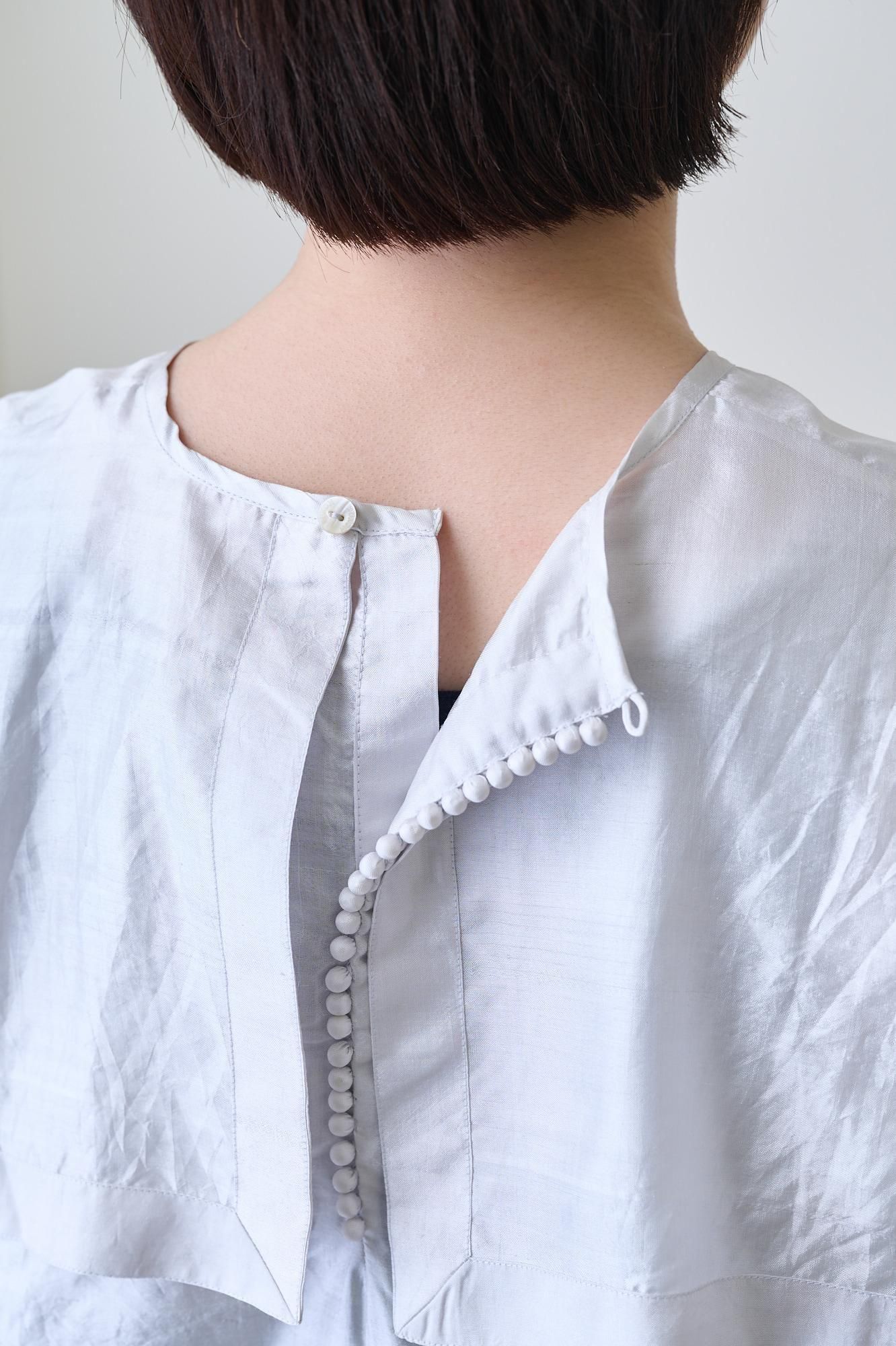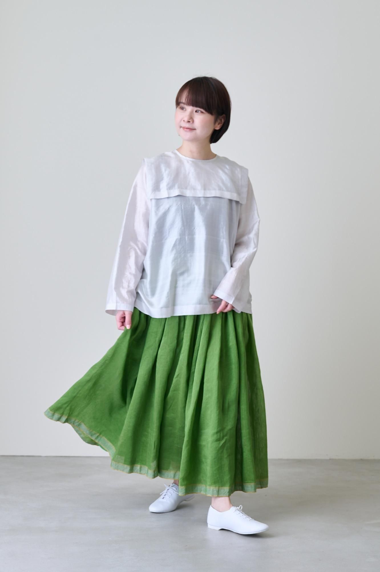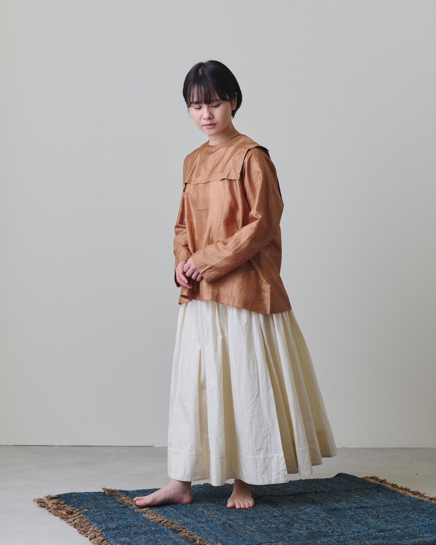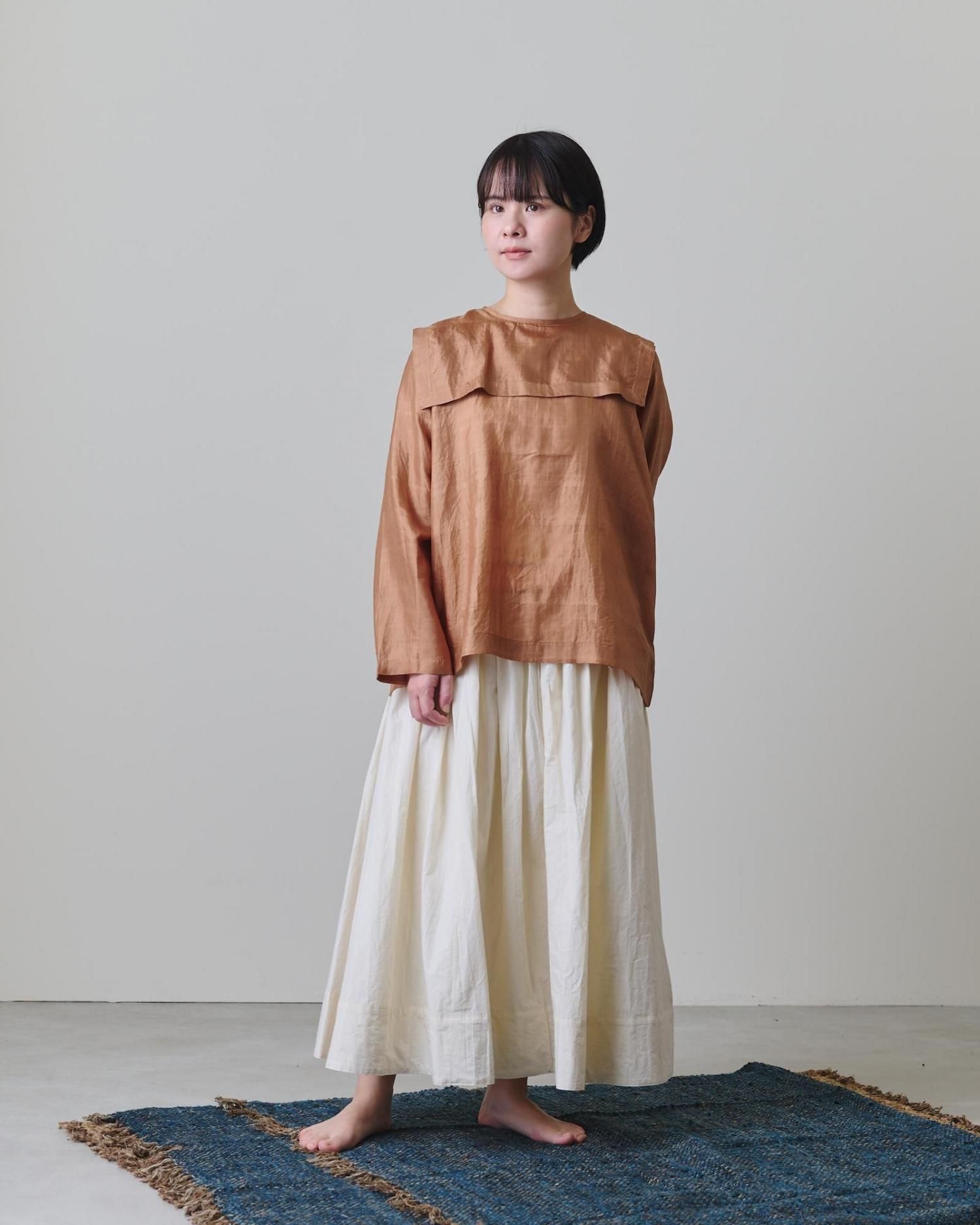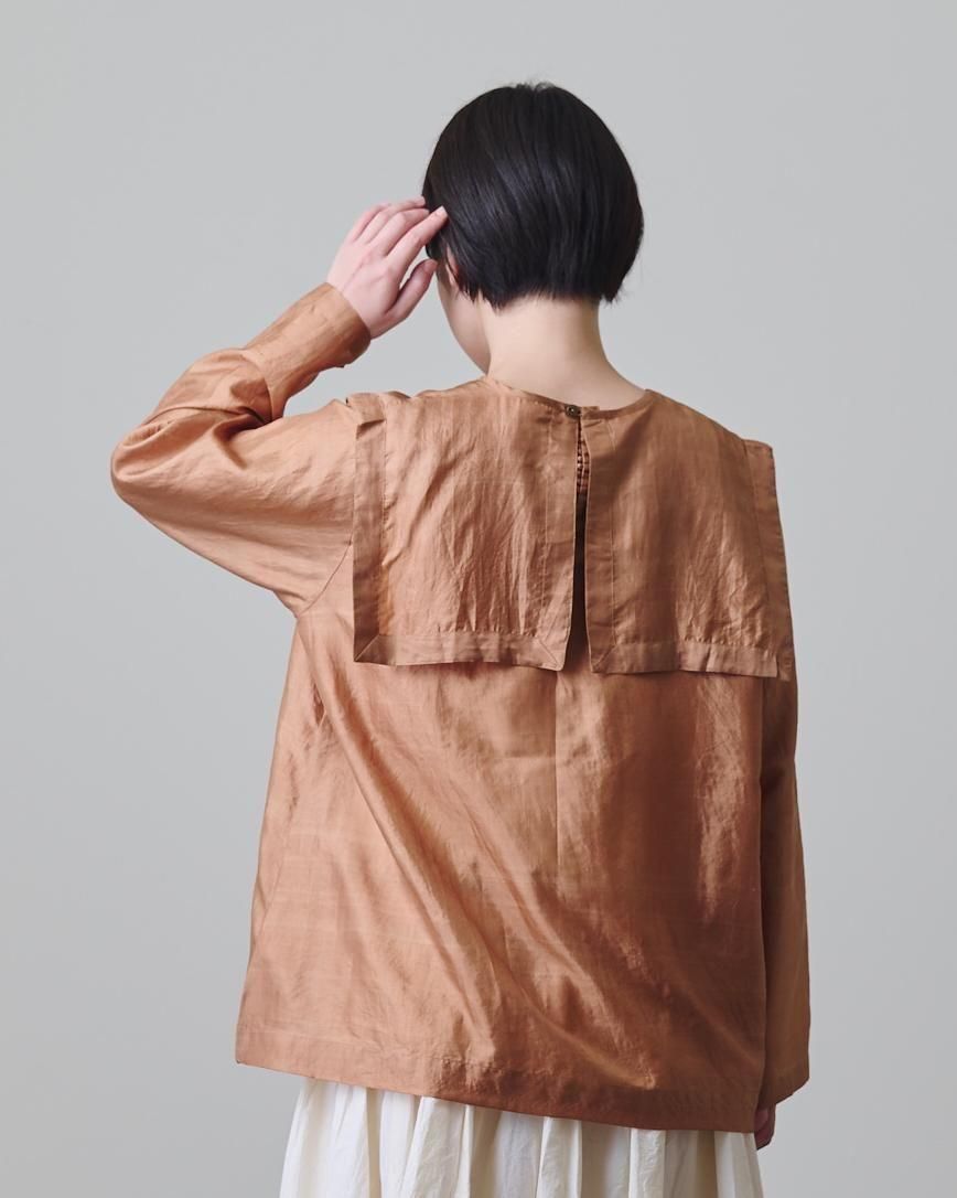 カディシルクで仕立てたブラウスは大きなセーラーカラーがポイントです。