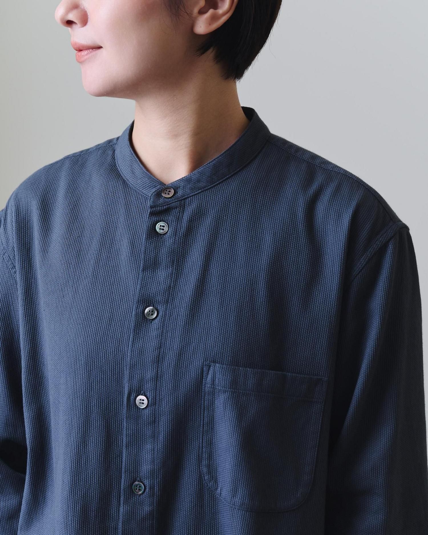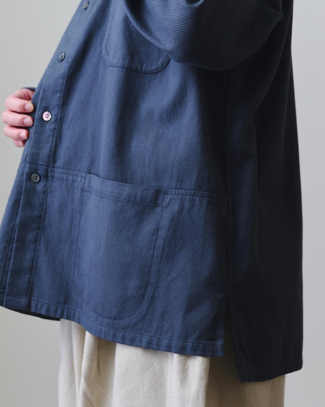 そんな刺子織の生地で仕立てたのは、シャツとジャケットの機能のイイトコドリをしたシャツジャケット。