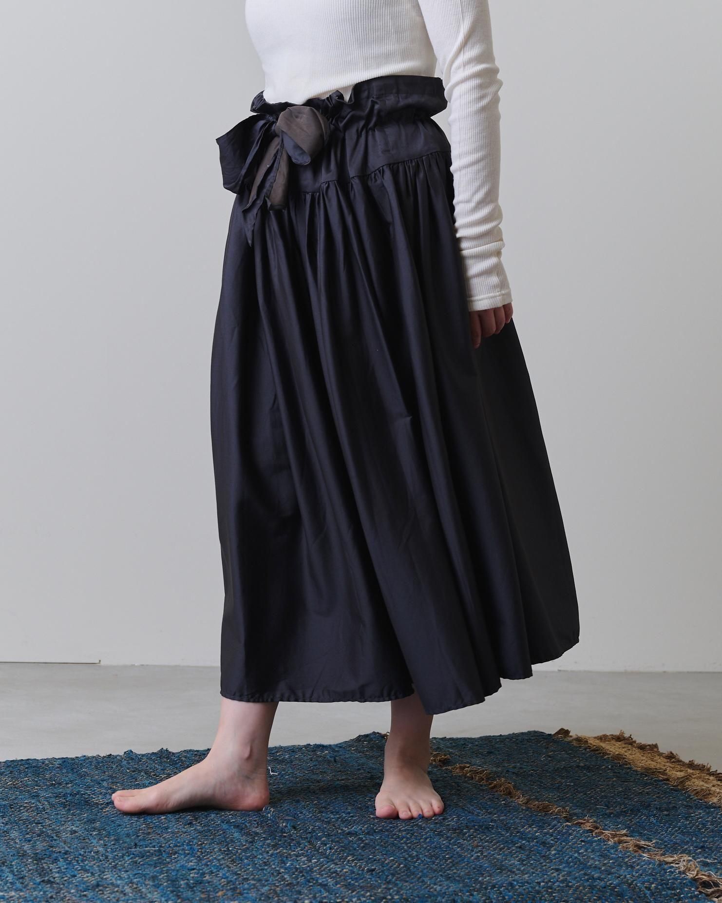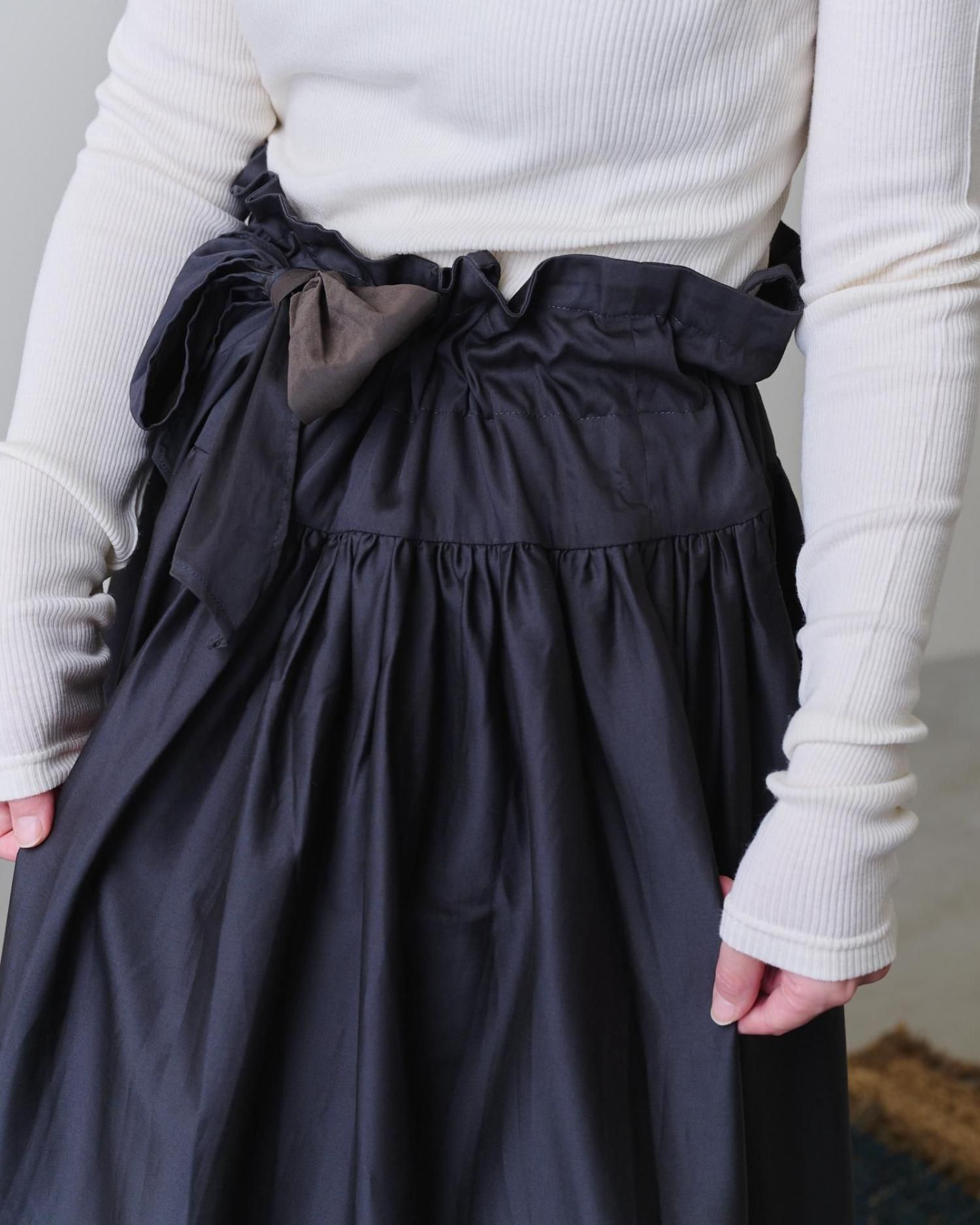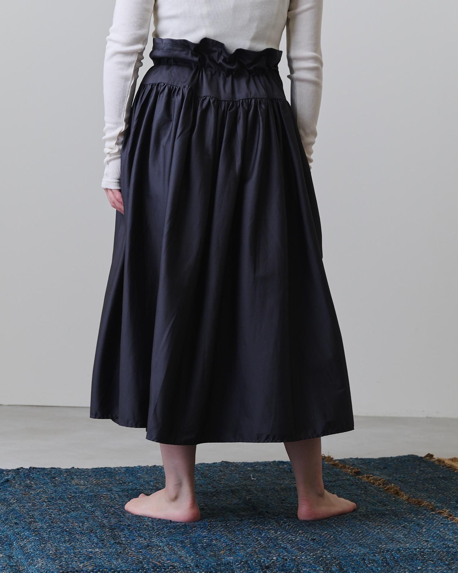 柔らかながらも張りのある生地を贅沢に使い、切り替え部分にもたっぷりとギャザーを入れたスカートは、ドレープが美しい、エレガントなシルエットに仕上がっています。
