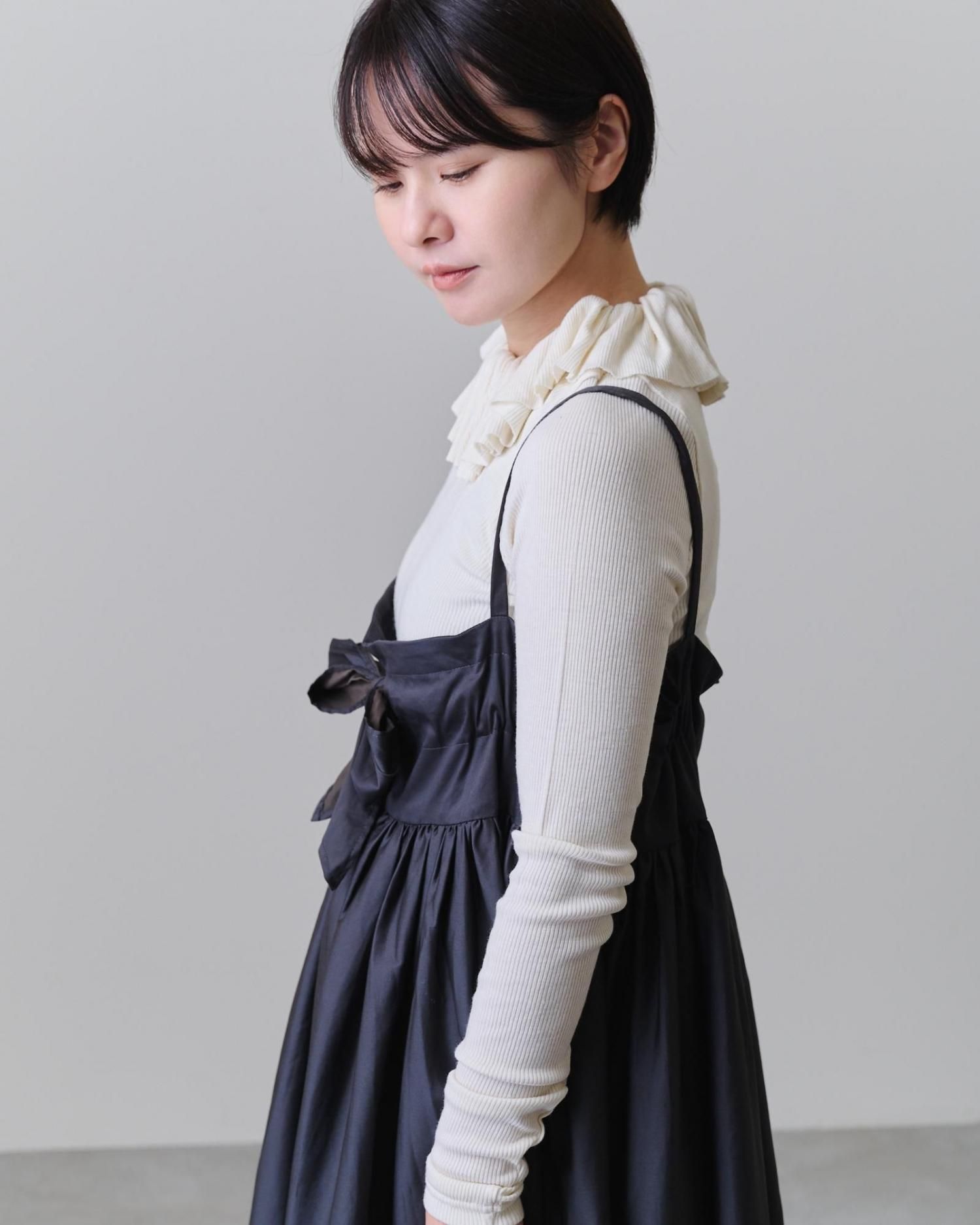 スカートの両サイドに付けられた肩紐を肩にかけることでチュニックのようにも楽しめる2wayの仕様になっています。