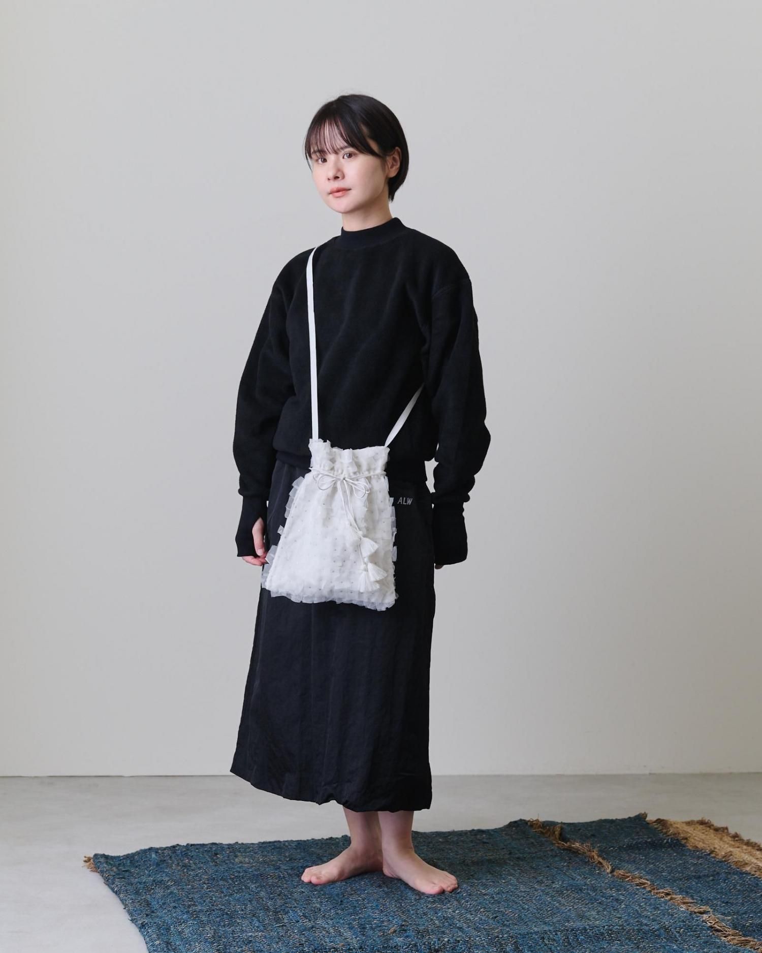 1日にわずか3mしか作れないというシルク地は、野蚕ならではのラフさに、手紡ぎ・手織りの不均一さが加わり、デイリーに似合う独特のシルクの風合いを生み出しています。
