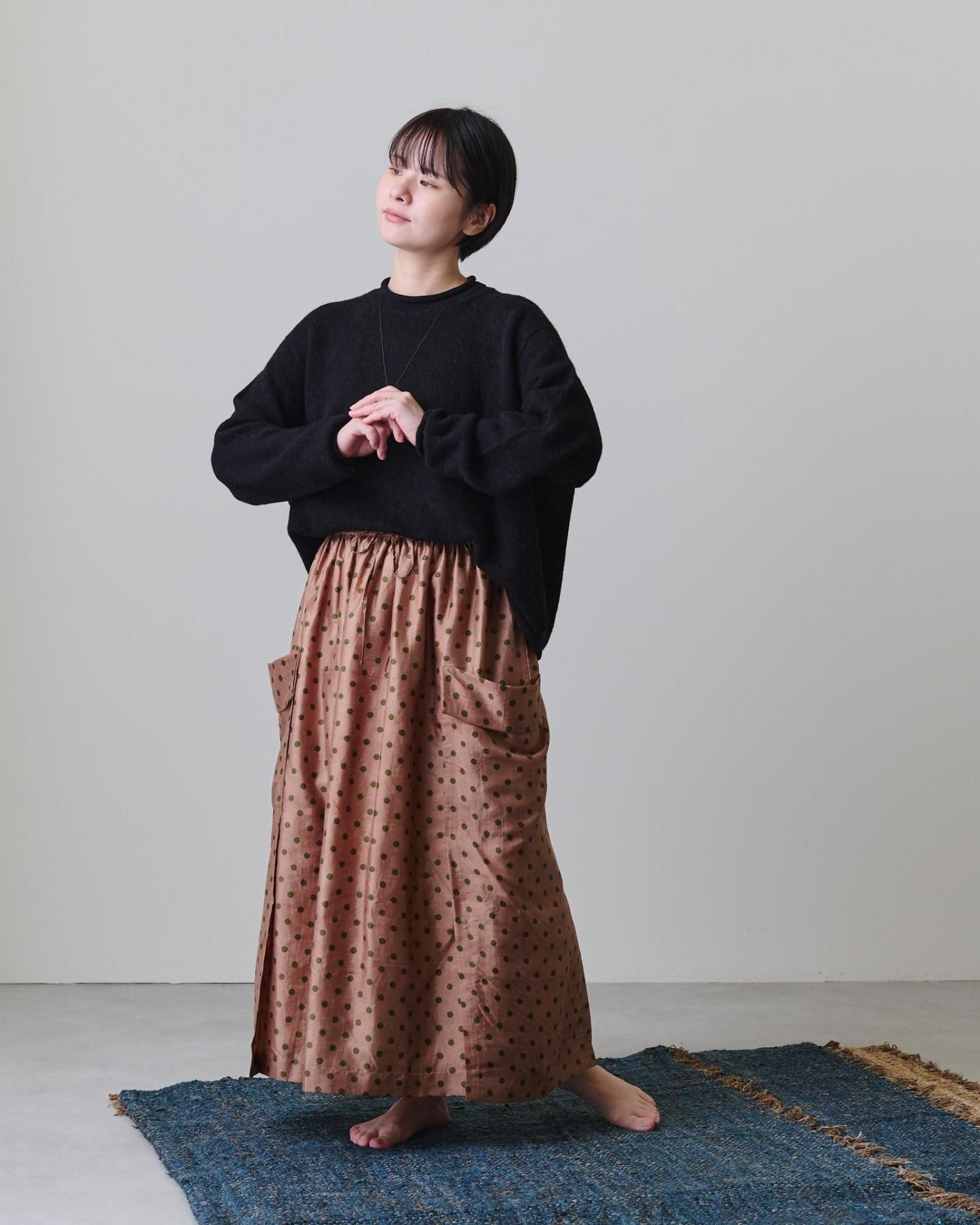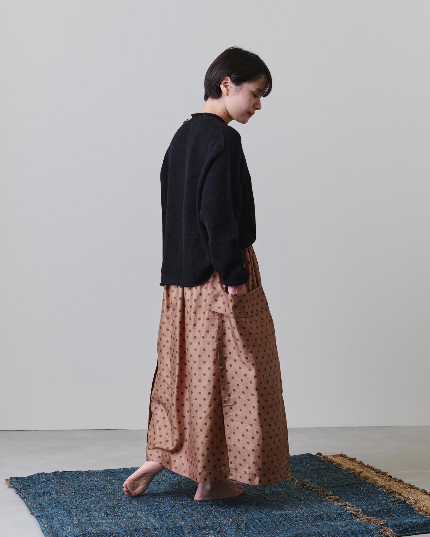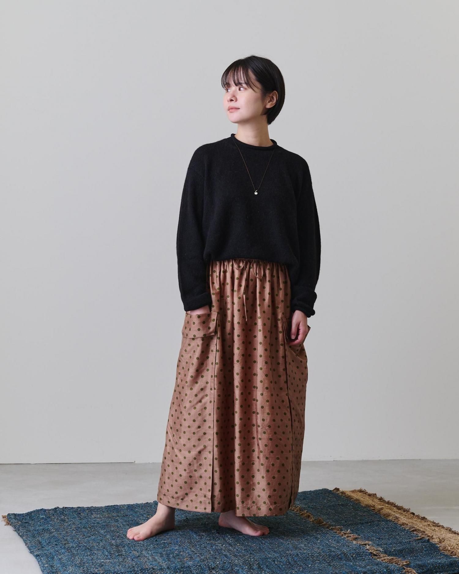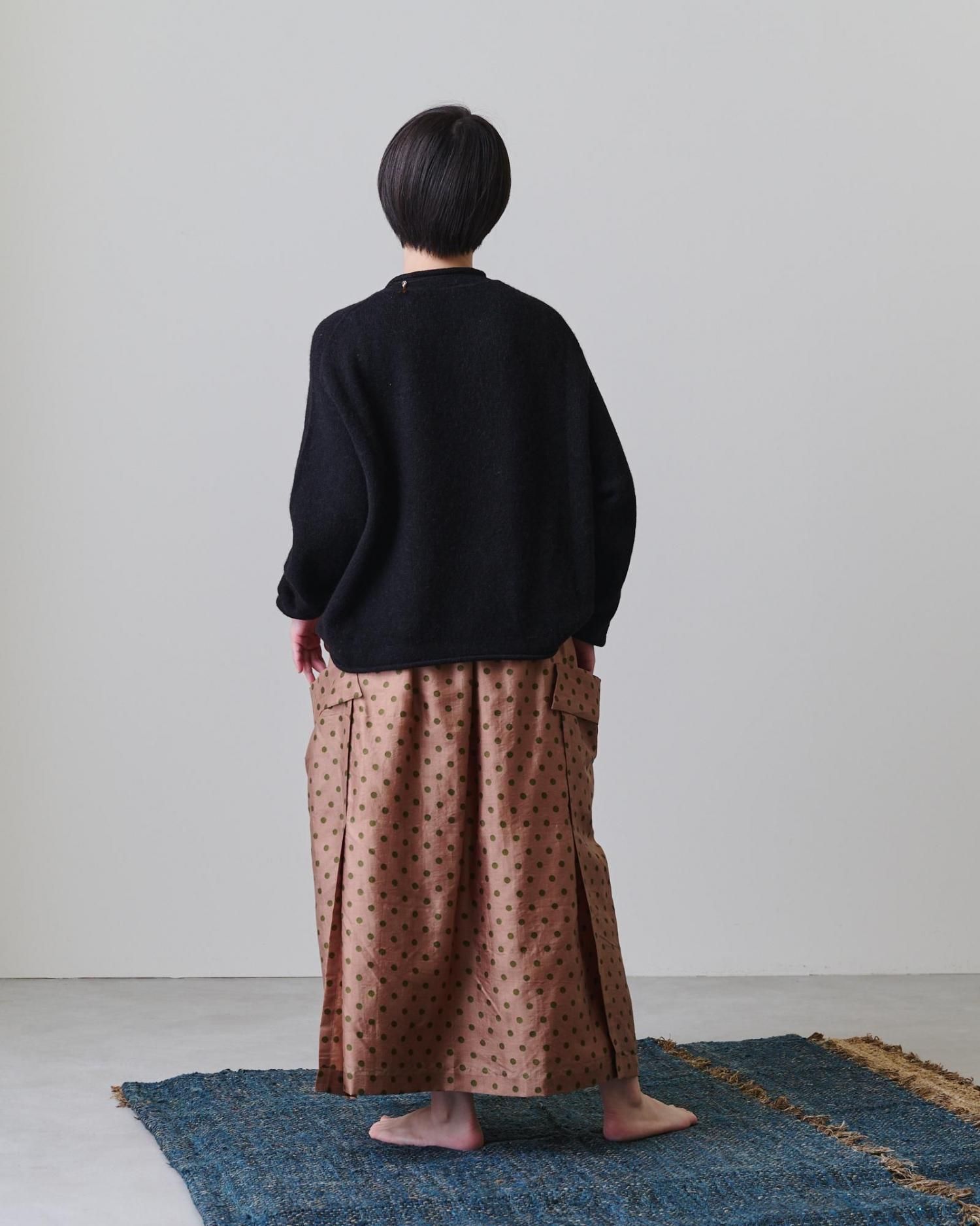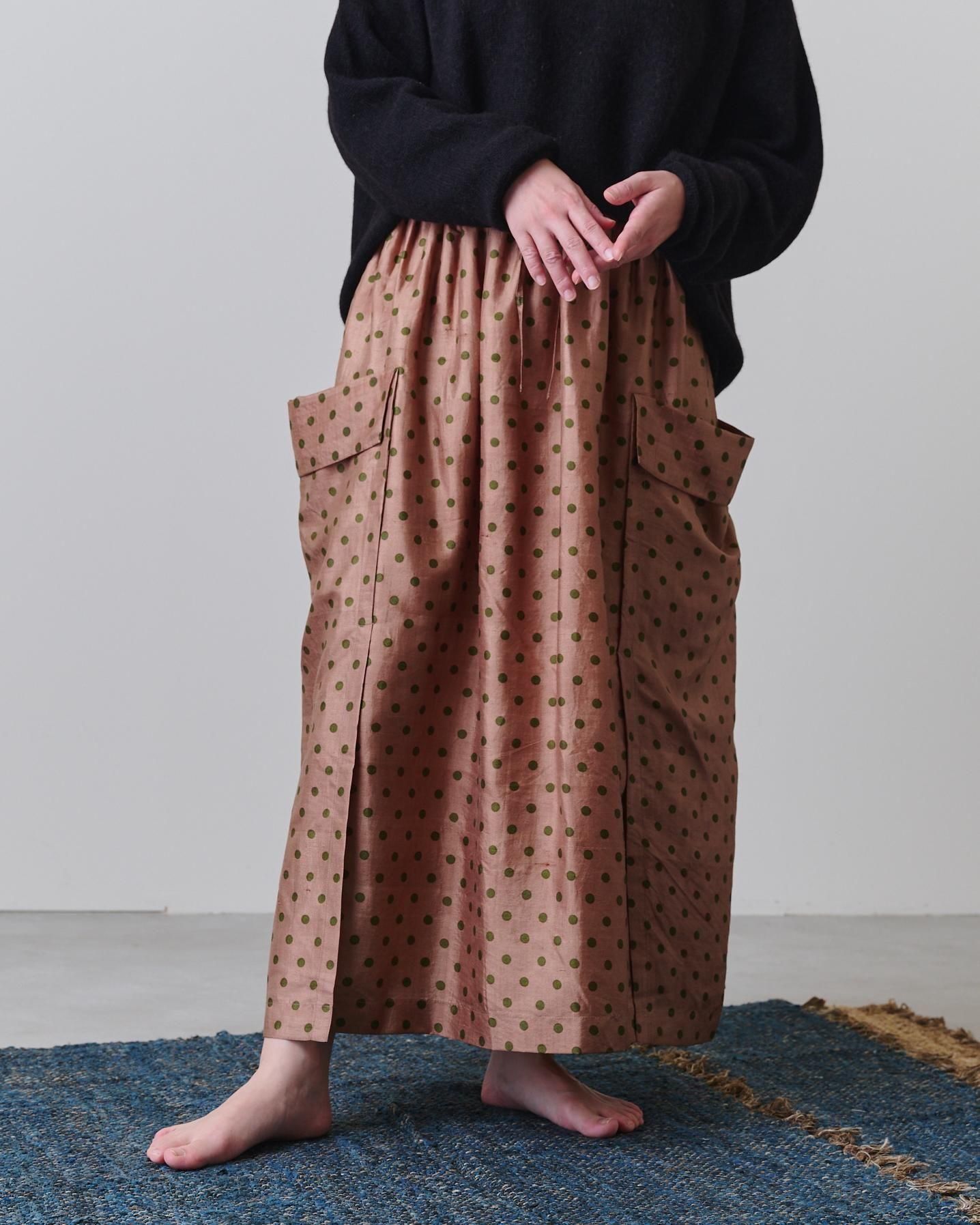 そんな生地で仕立てたのは、両サイドの切り替え部分がレイヤード(重ね合わせ)になっている凝った作りのスカートです。