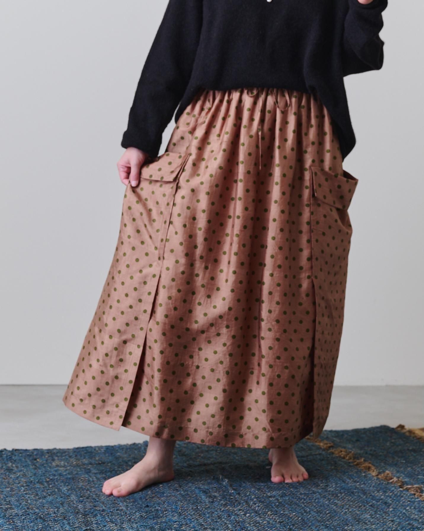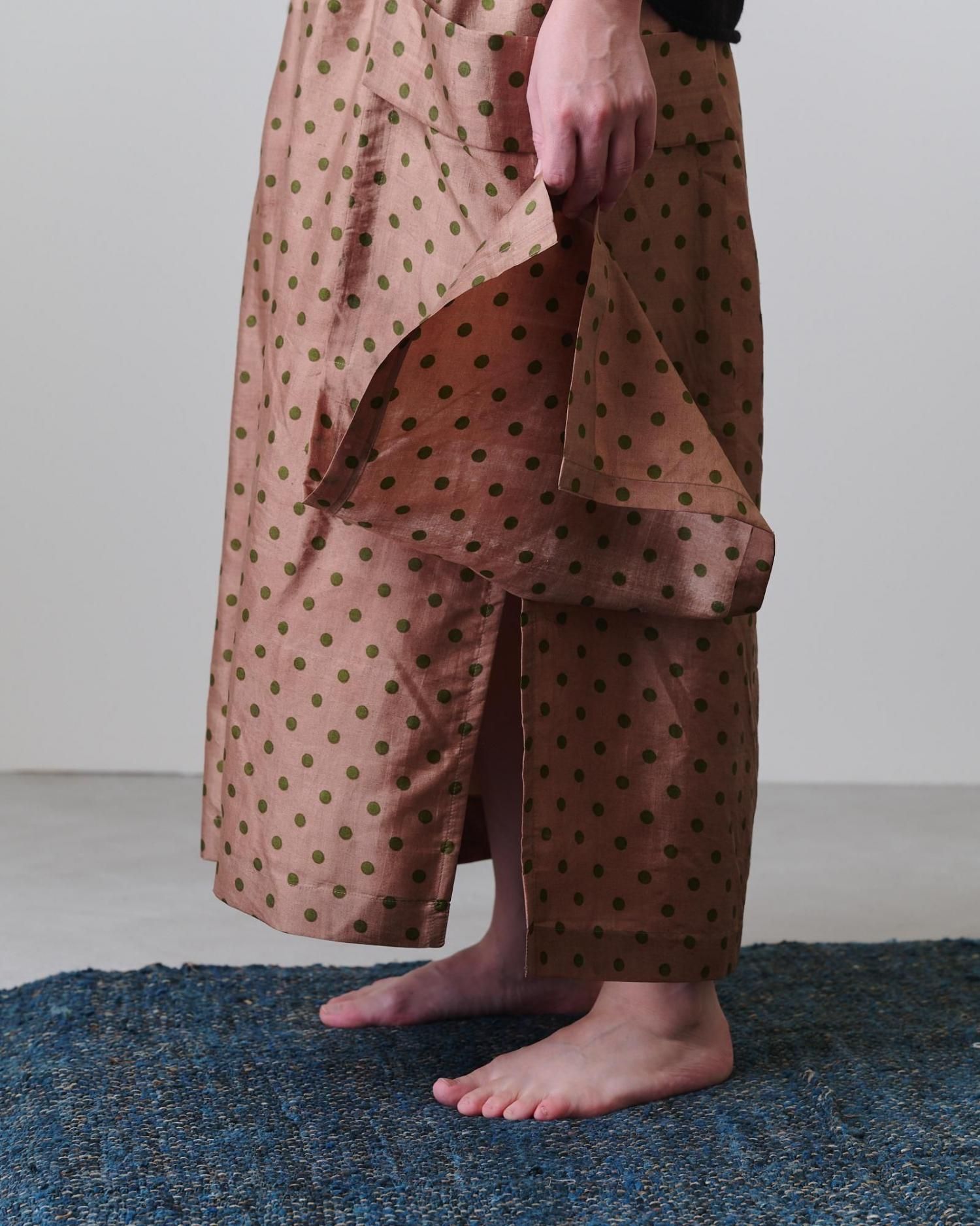 コックリとしたブラウンにフォレストグリーンを配したドット柄。