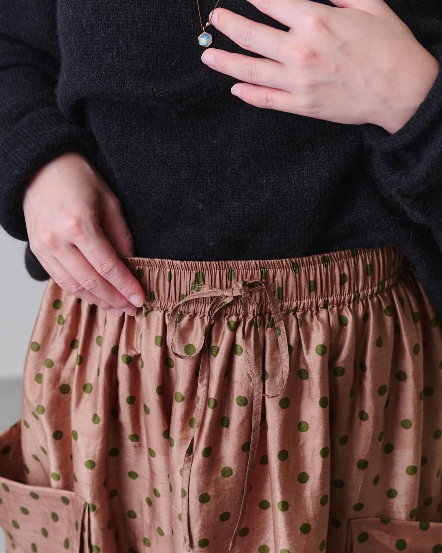 Khadi silk polka dots print Layered skirt