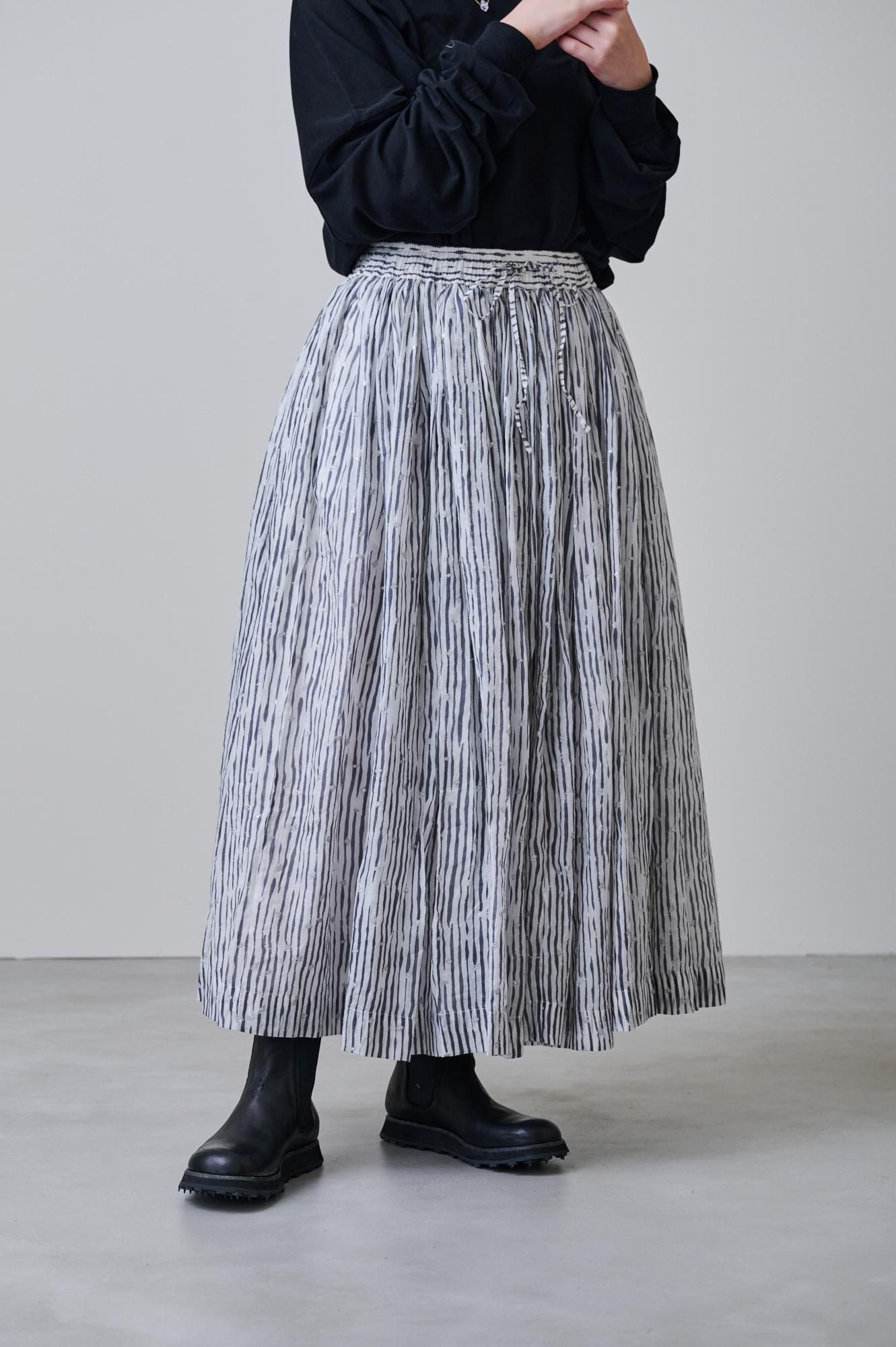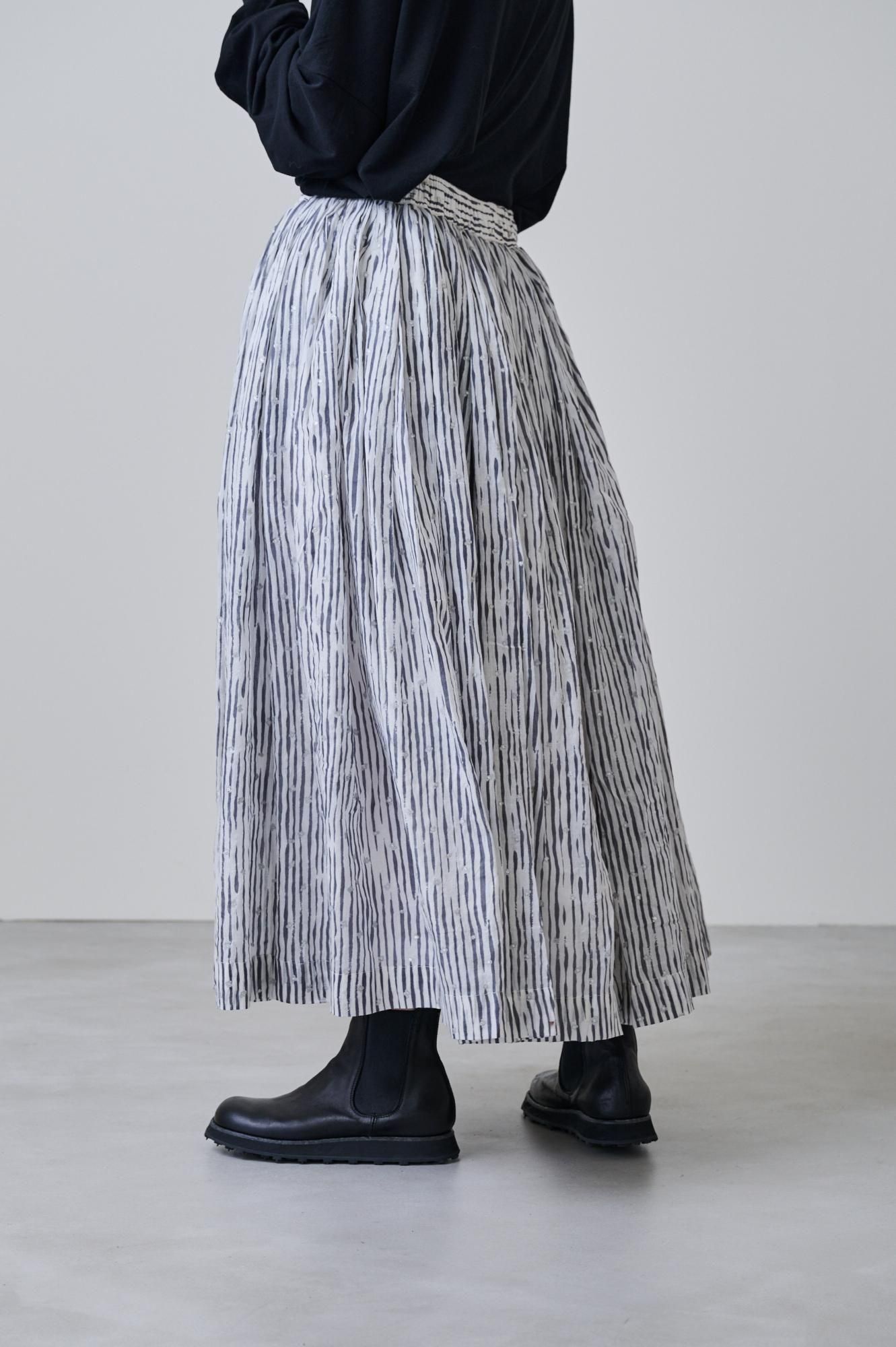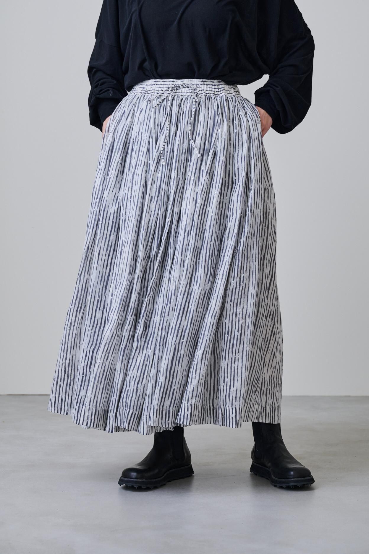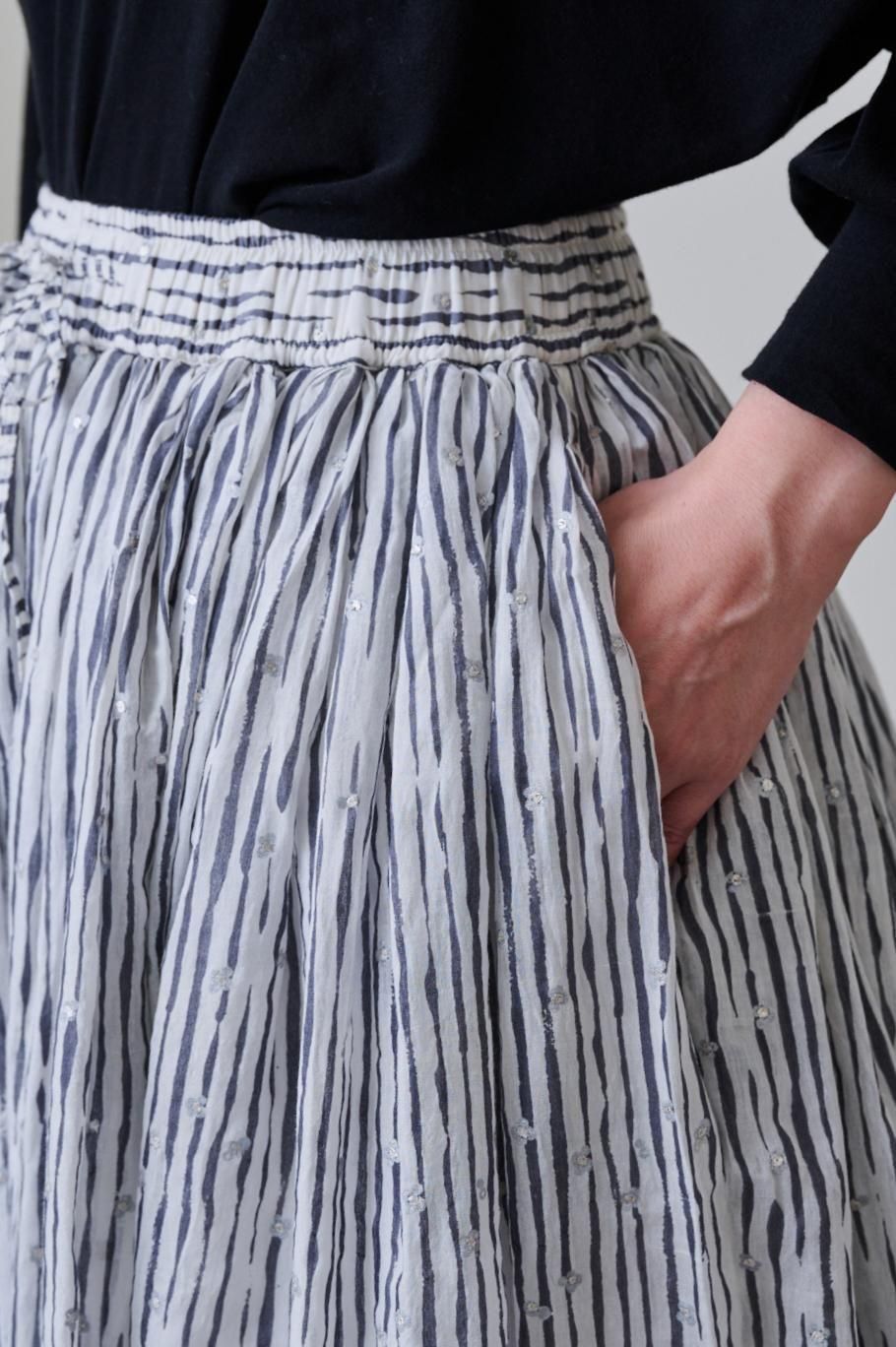 Khadi cotton silk stripe print & gold embroidery Balloon skirt