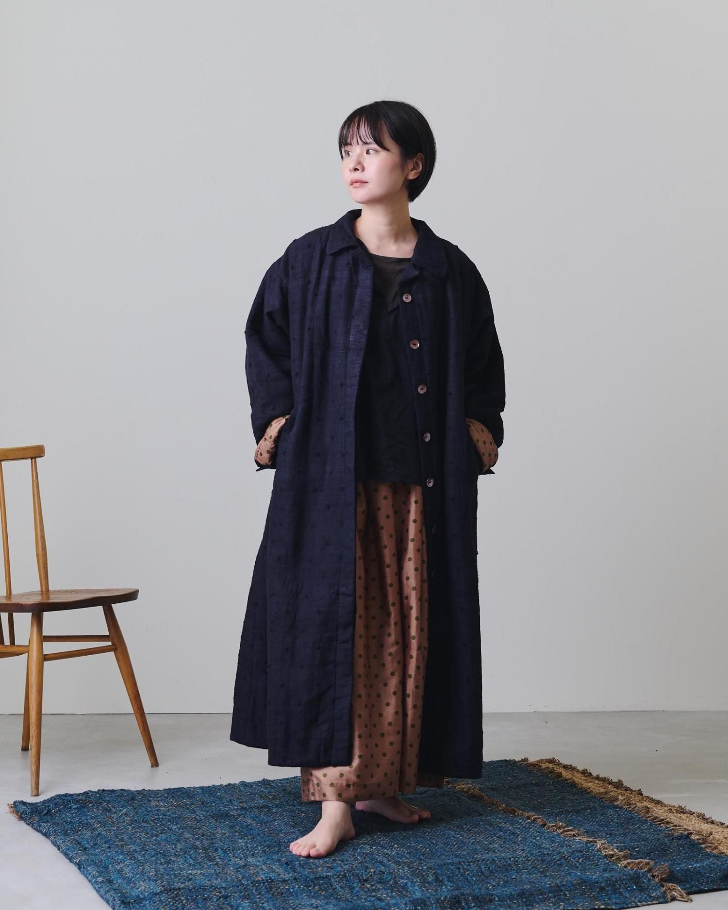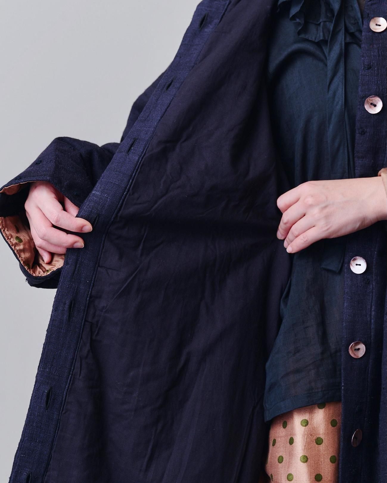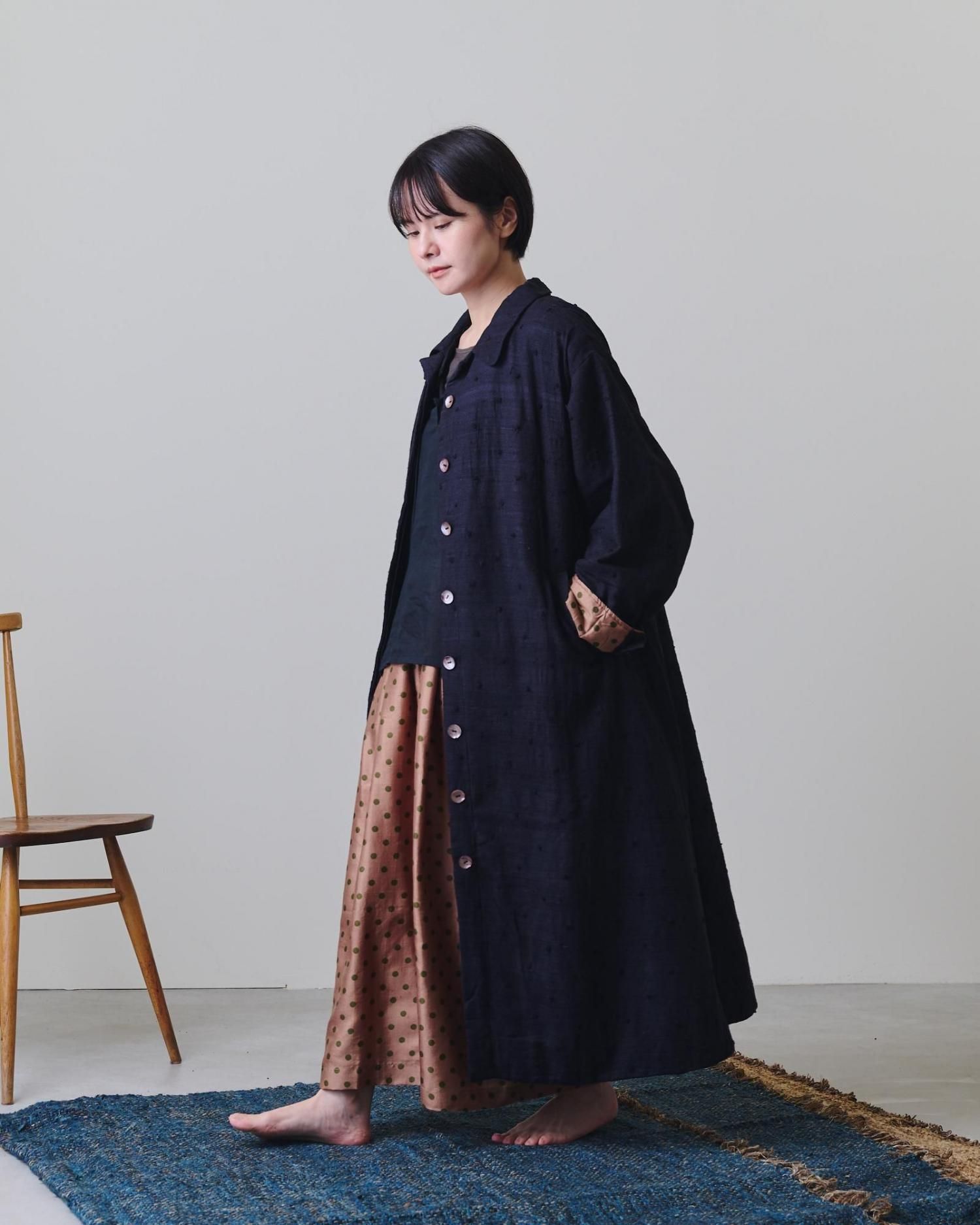 表地にはシルク、裏地にはコットンを用い、キルト仕立てに仕上げた贅沢なコートです。