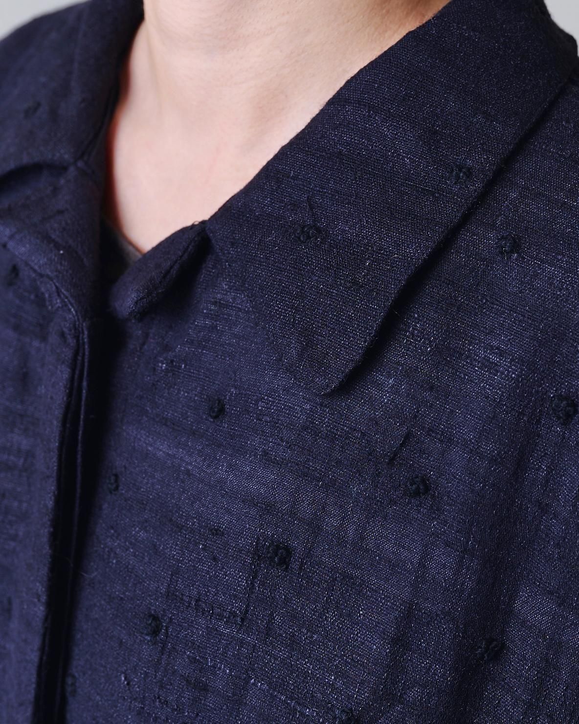 一見すると無地のように見えますが、シルク糸で立体的なドット柄が手刺繍によって施されています。