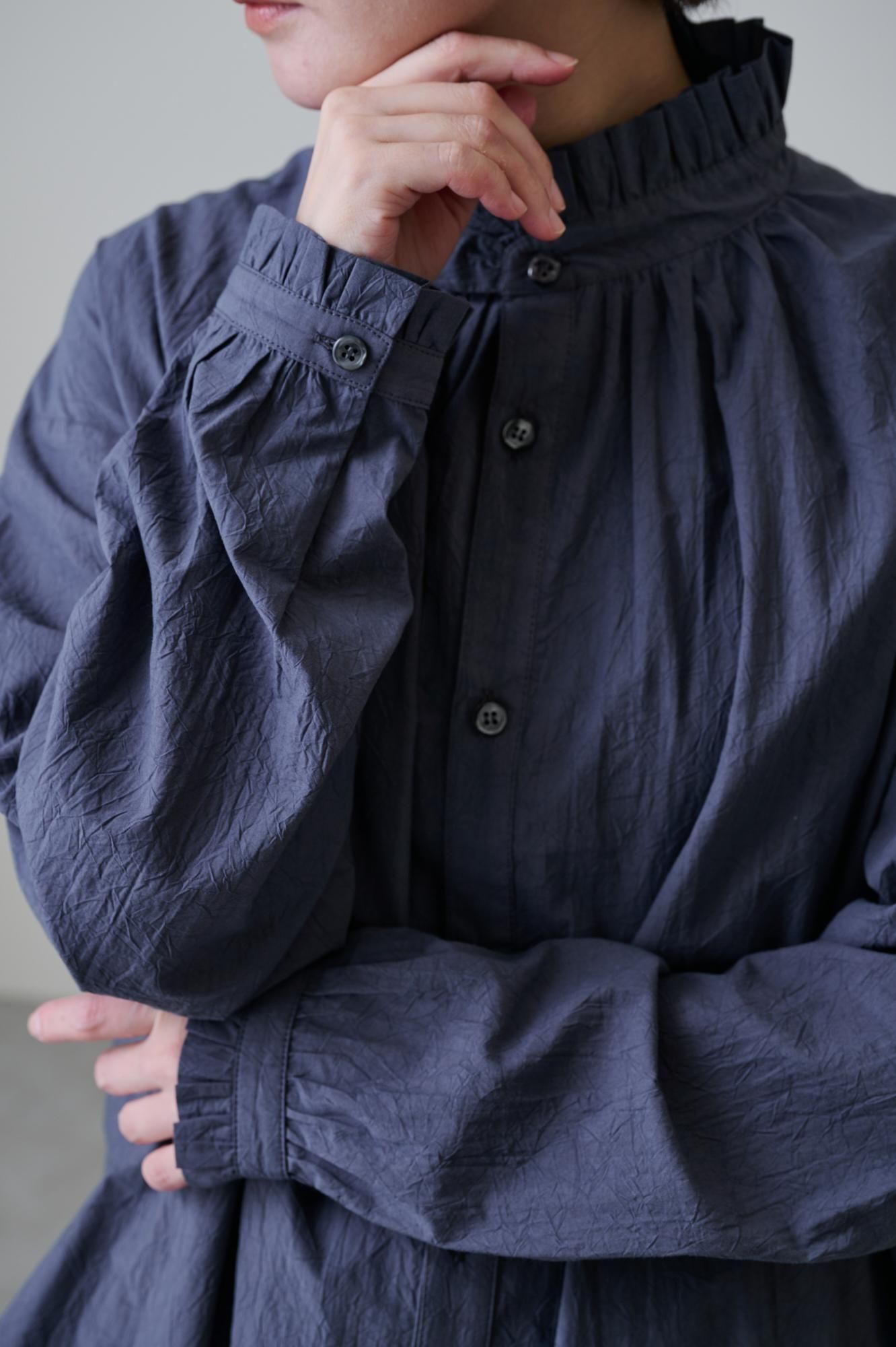 クラッシュ加工を施したコットン地は、パリッとしたハリと独特なシワ感が魅力的。