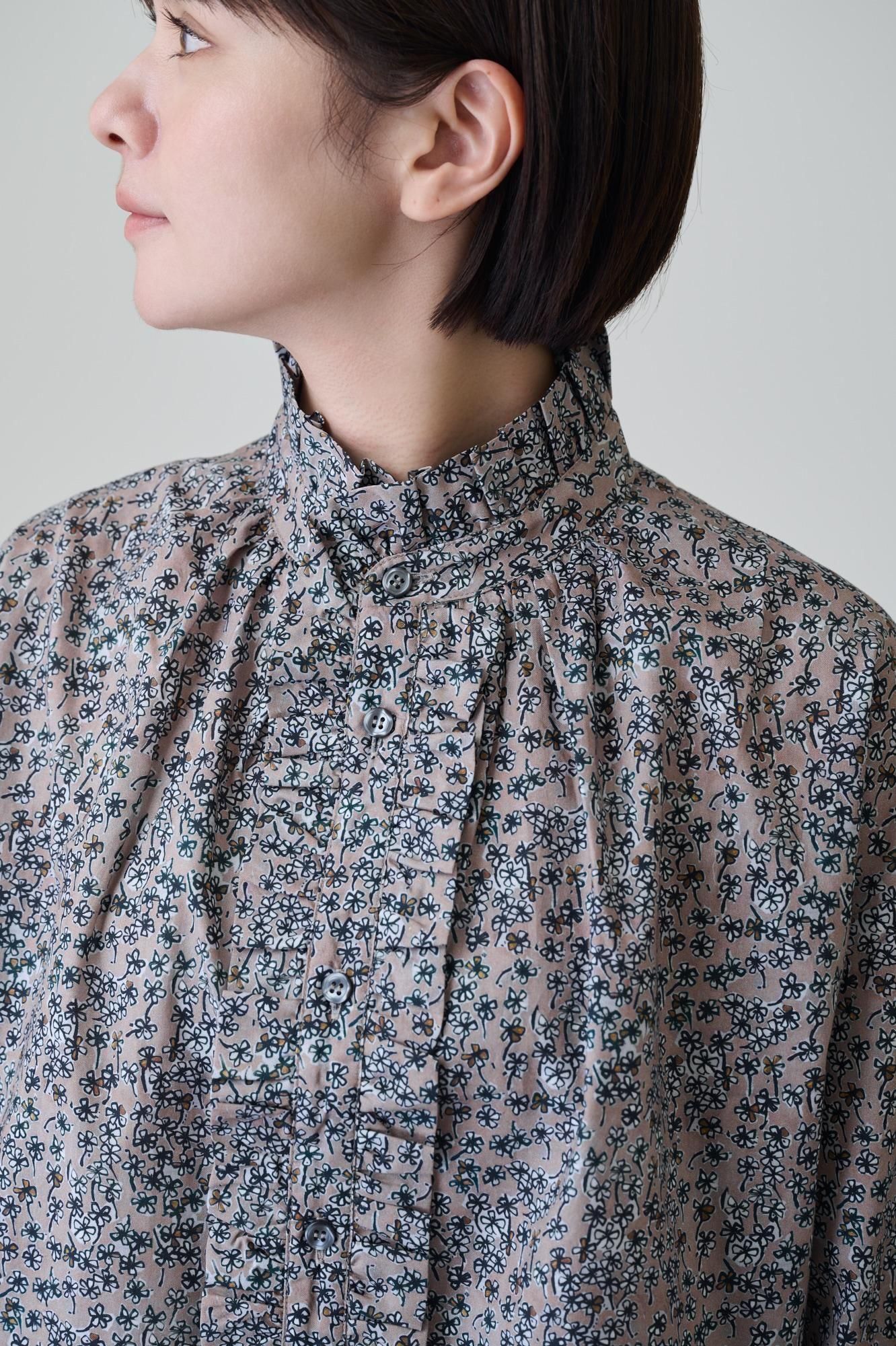ALBINIならではの上品なプリント柄に似合うプリーツカラー。