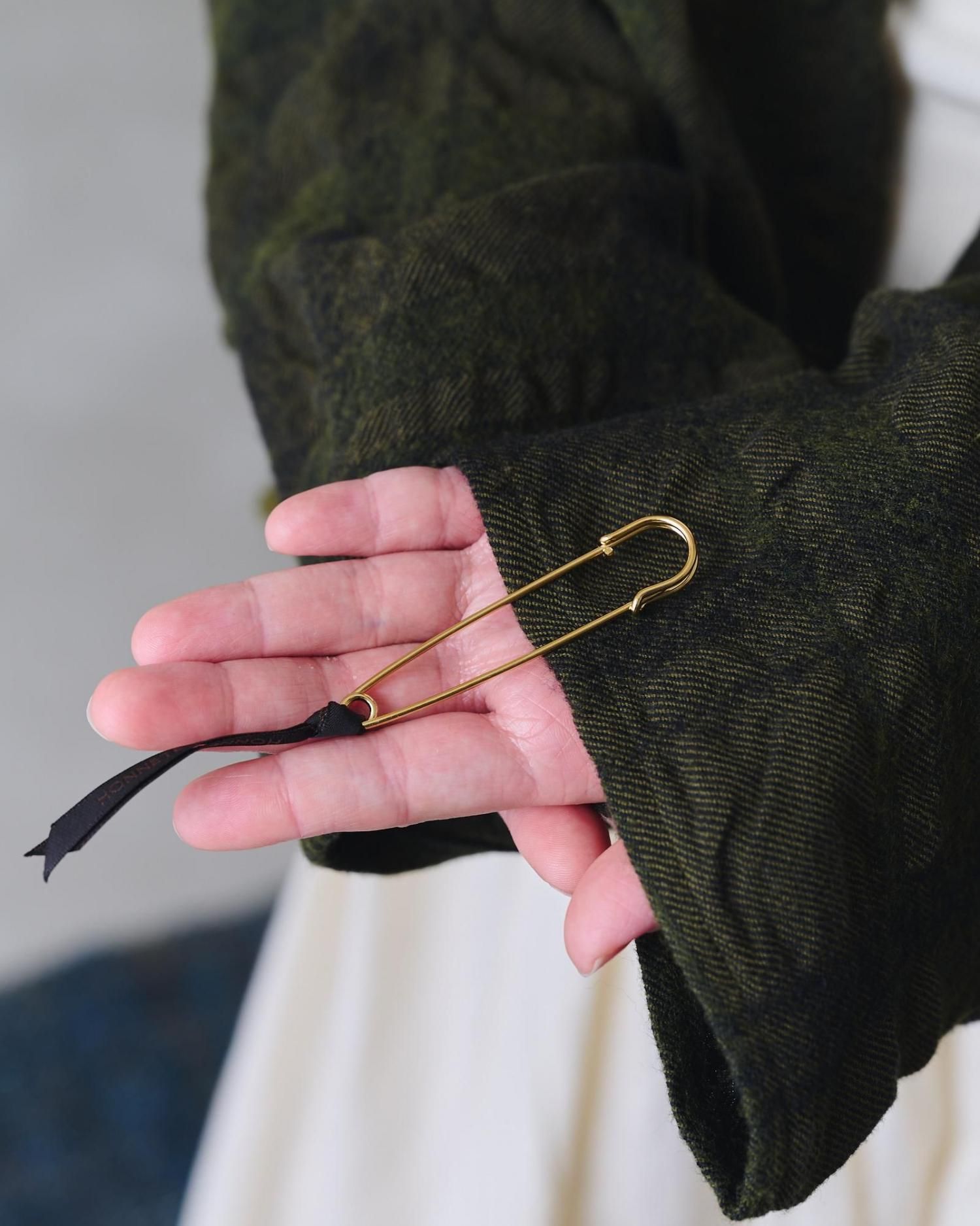 ボタンのないカーディガンは、アクセサリーとしても使える兜ピンが付いてきます。