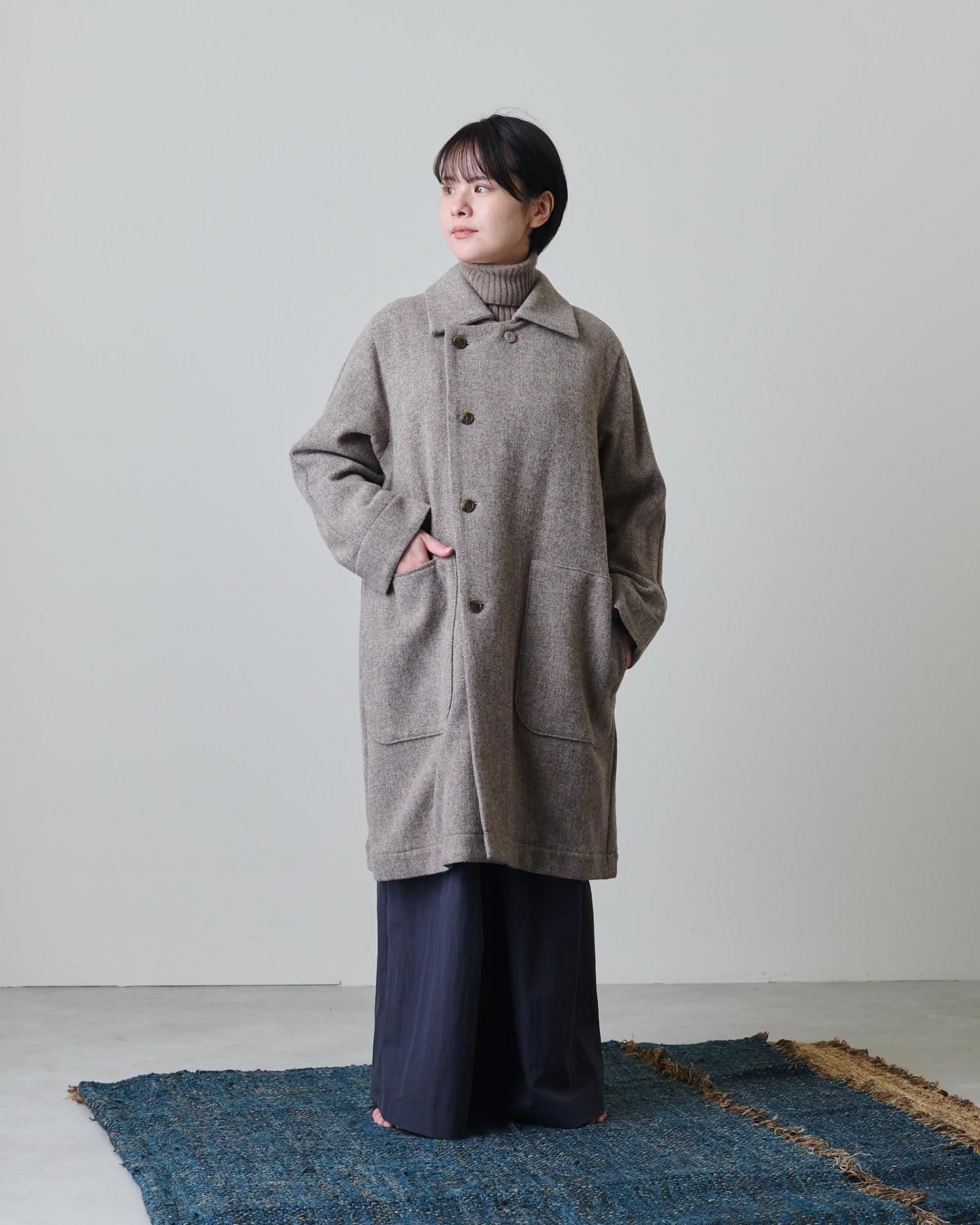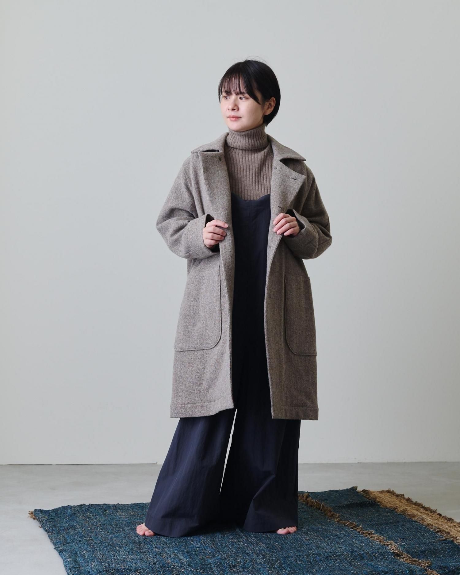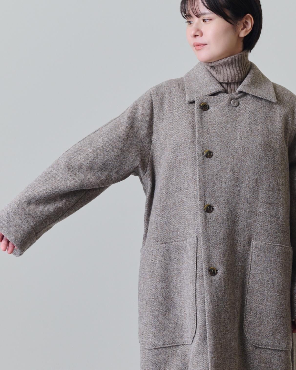 クラシカルな雰囲気のヘリンボーン柄のツィード生地で仕立てたコートは、飽きずに長く愛用できる一着になること間違いなしです。