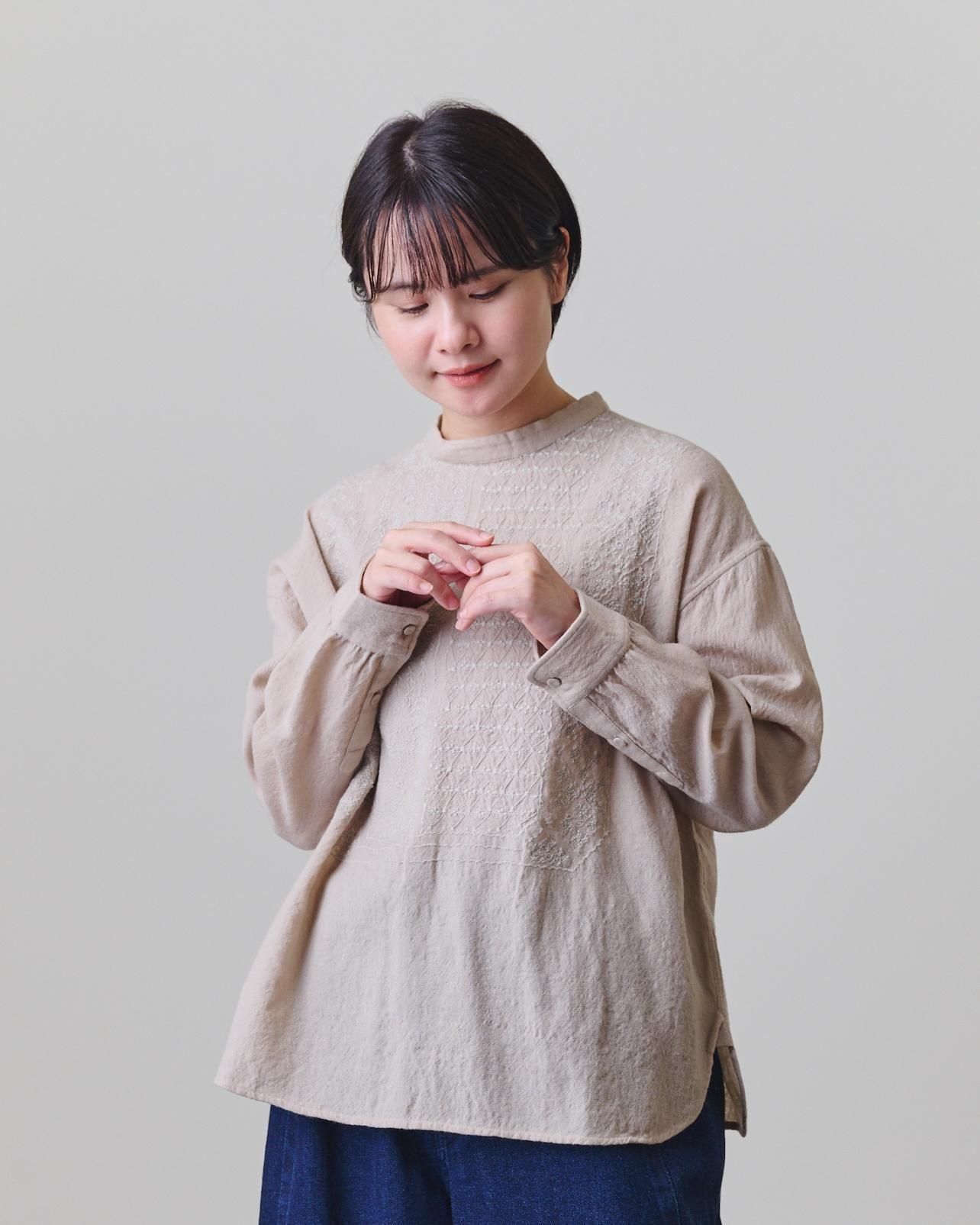 シンプルながらも着映えのする、こだわり満載のブラウスです。