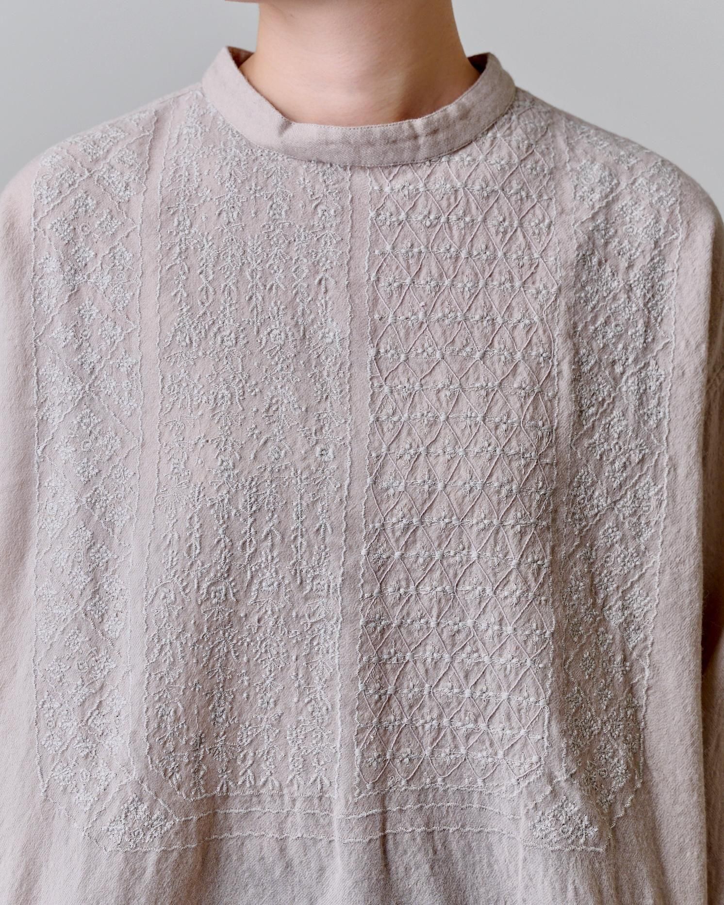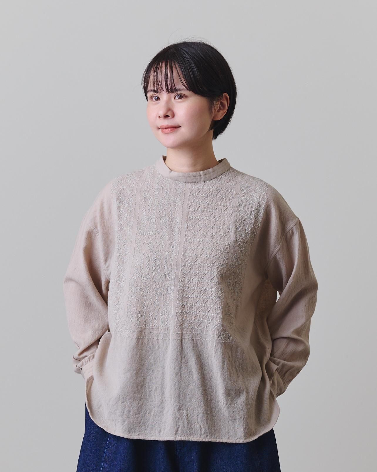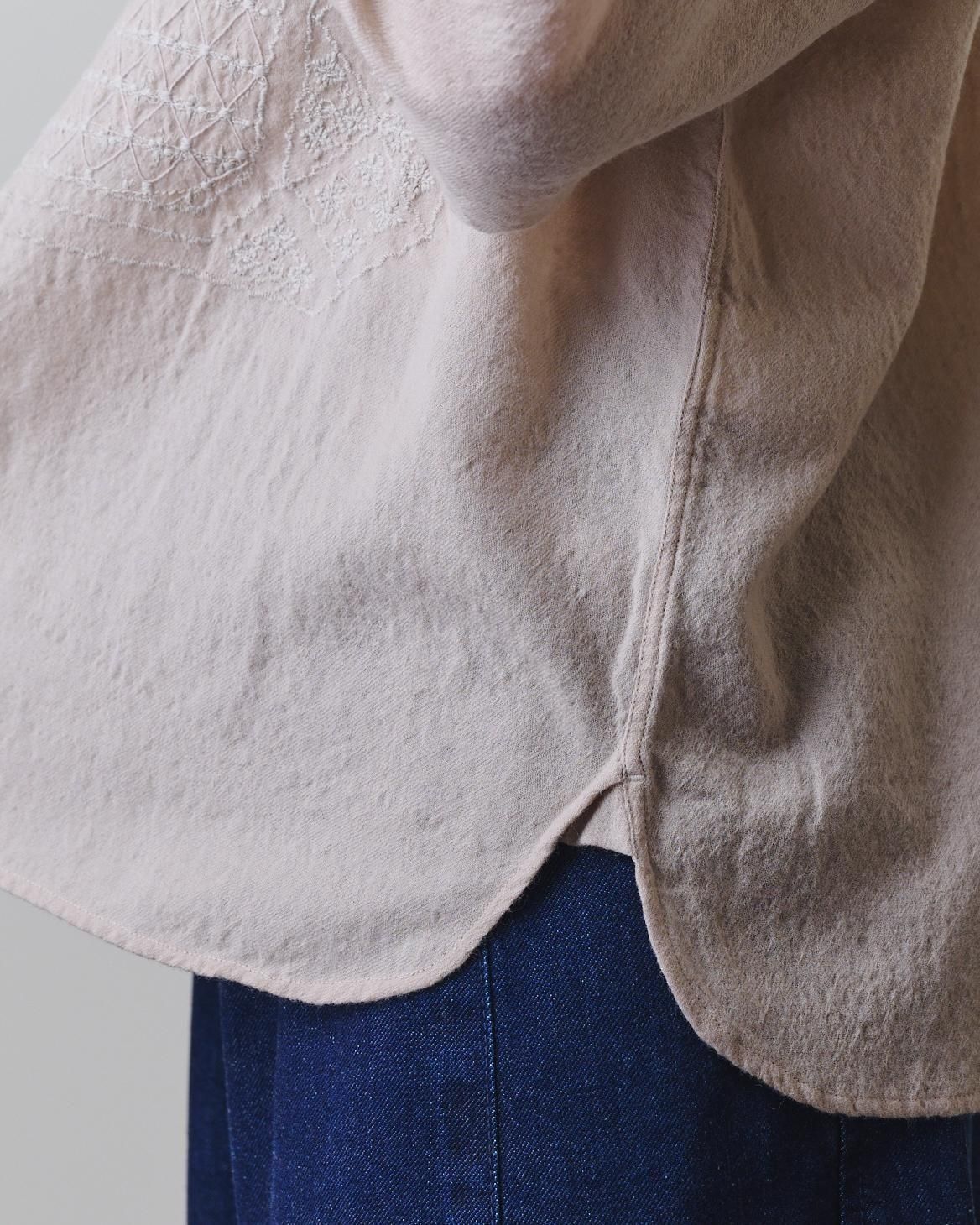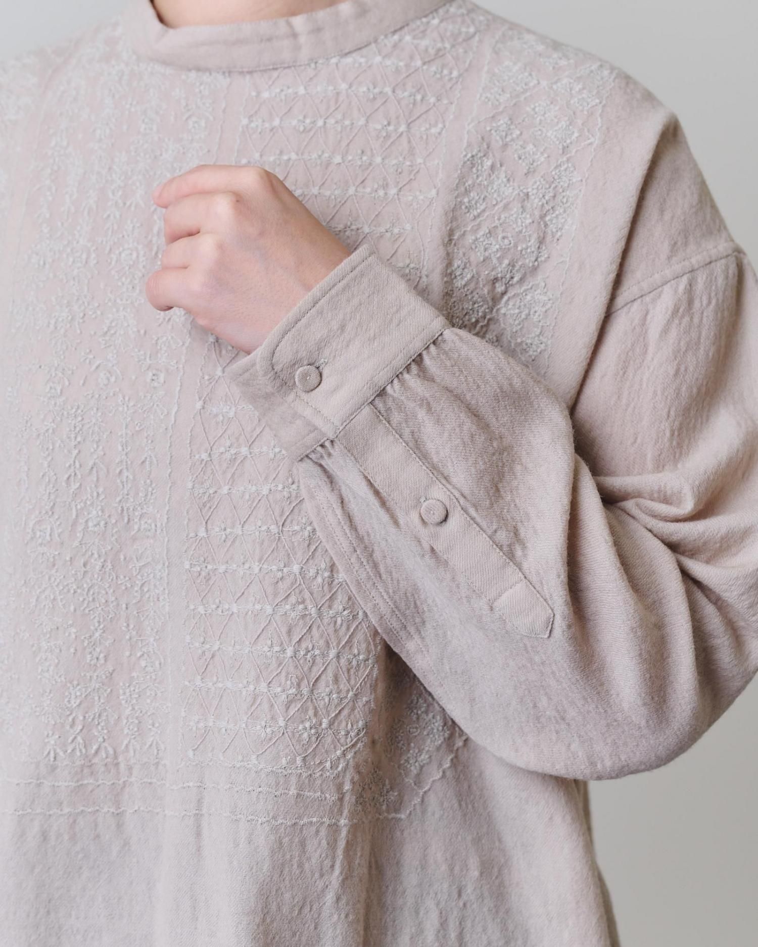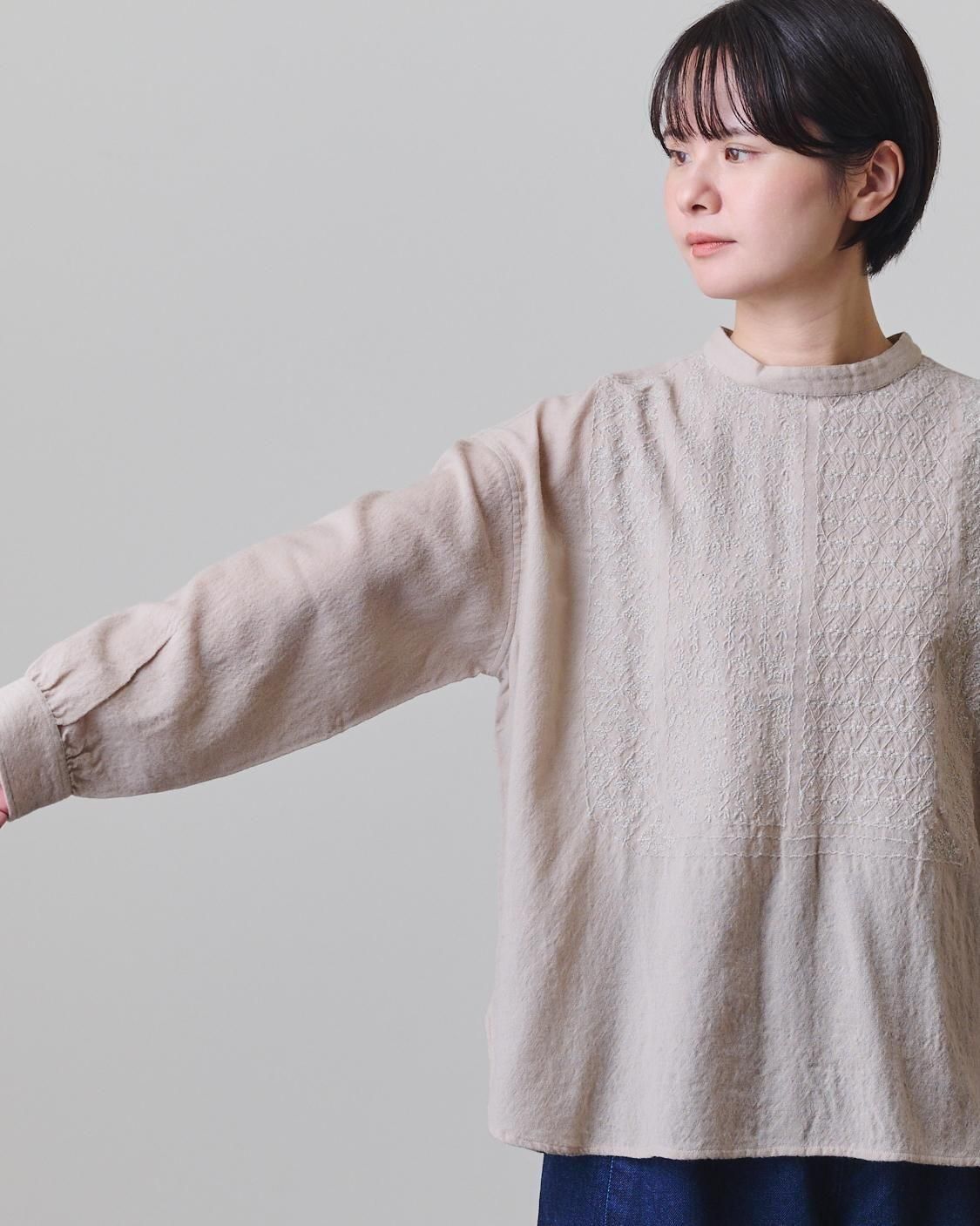 生地と同色の糸で刺繍されているからこそ、ボリューミーな刺繍がくどくならず、贅沢で上品な一枚に仕上がっています。