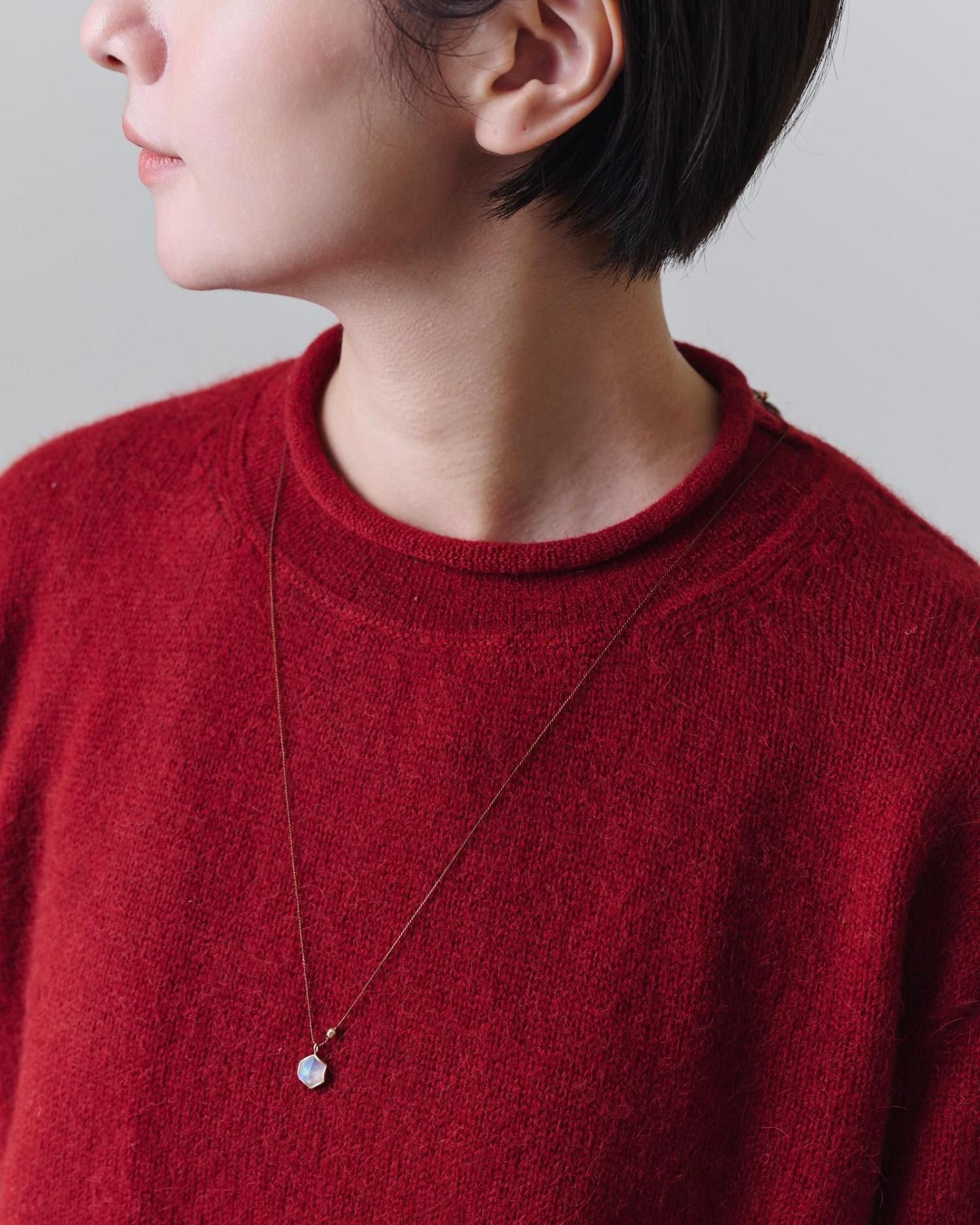 通常のニットは、前身頃、後身頃というように、それぞれのパーツを編んだ後で縫い合わせをしますが、ホールガーメントという製法により作られているこのニットは、編み機から直接、立体的に編み上げて作られているため身頃や袖の繋ぎ目がありません。