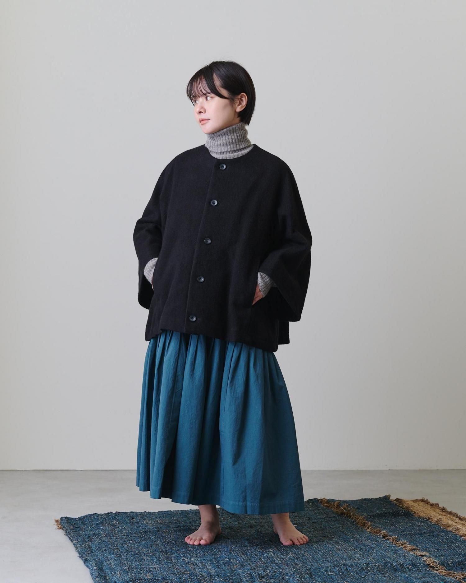 たっぷりと空気を含んだウールの生地は、しっかりとした厚みがありながらも驚くほどに軽く柔らか。