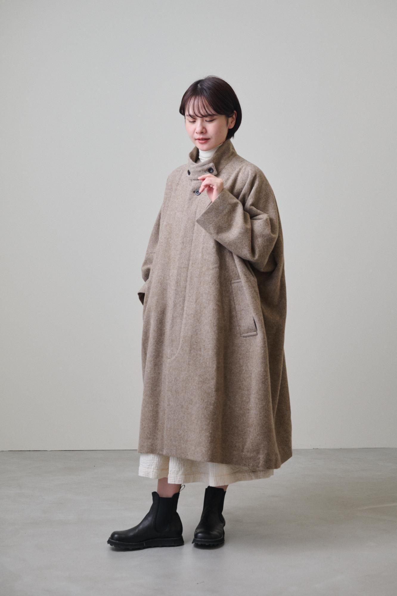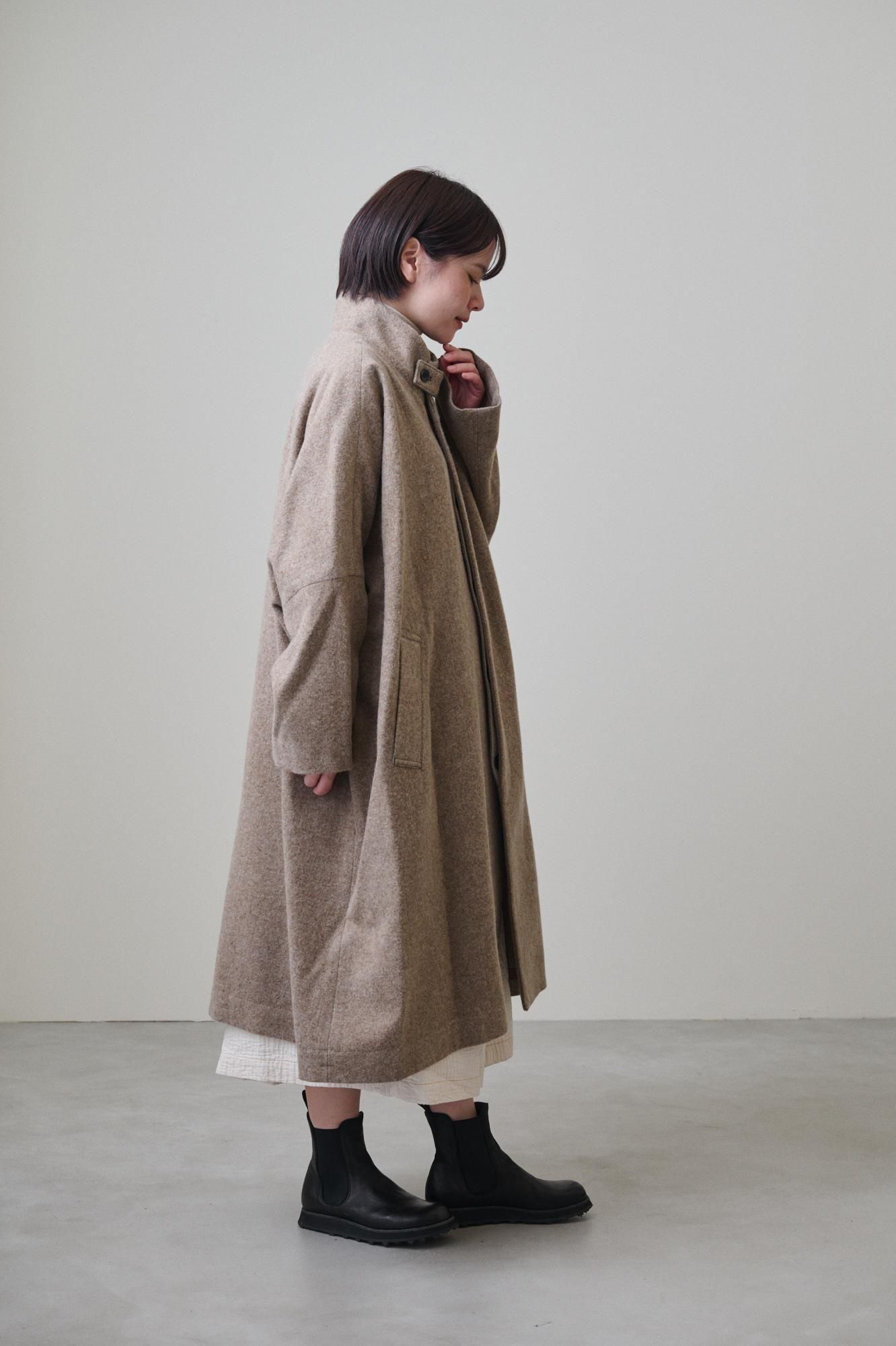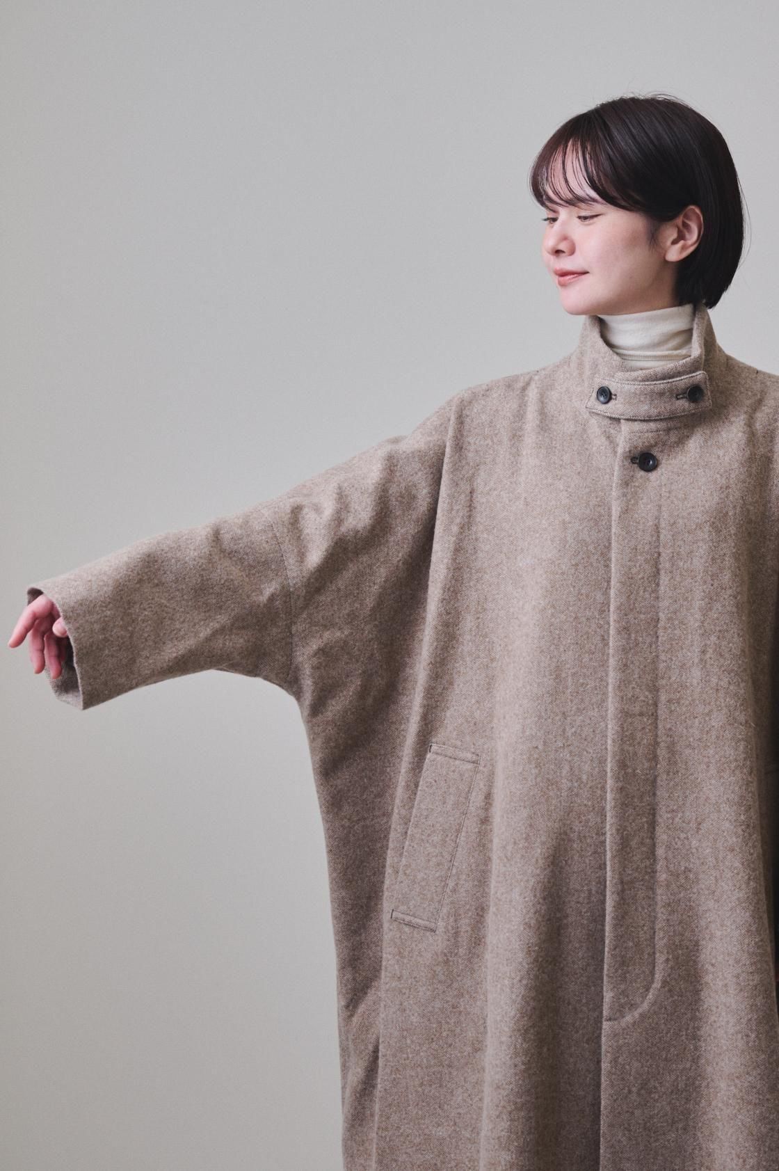 たっぷりと空気を含んだ柔らかなウール地で仕立てたコートです。