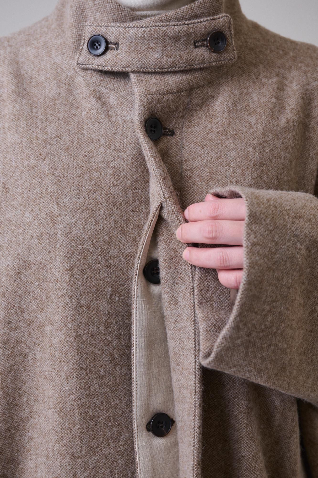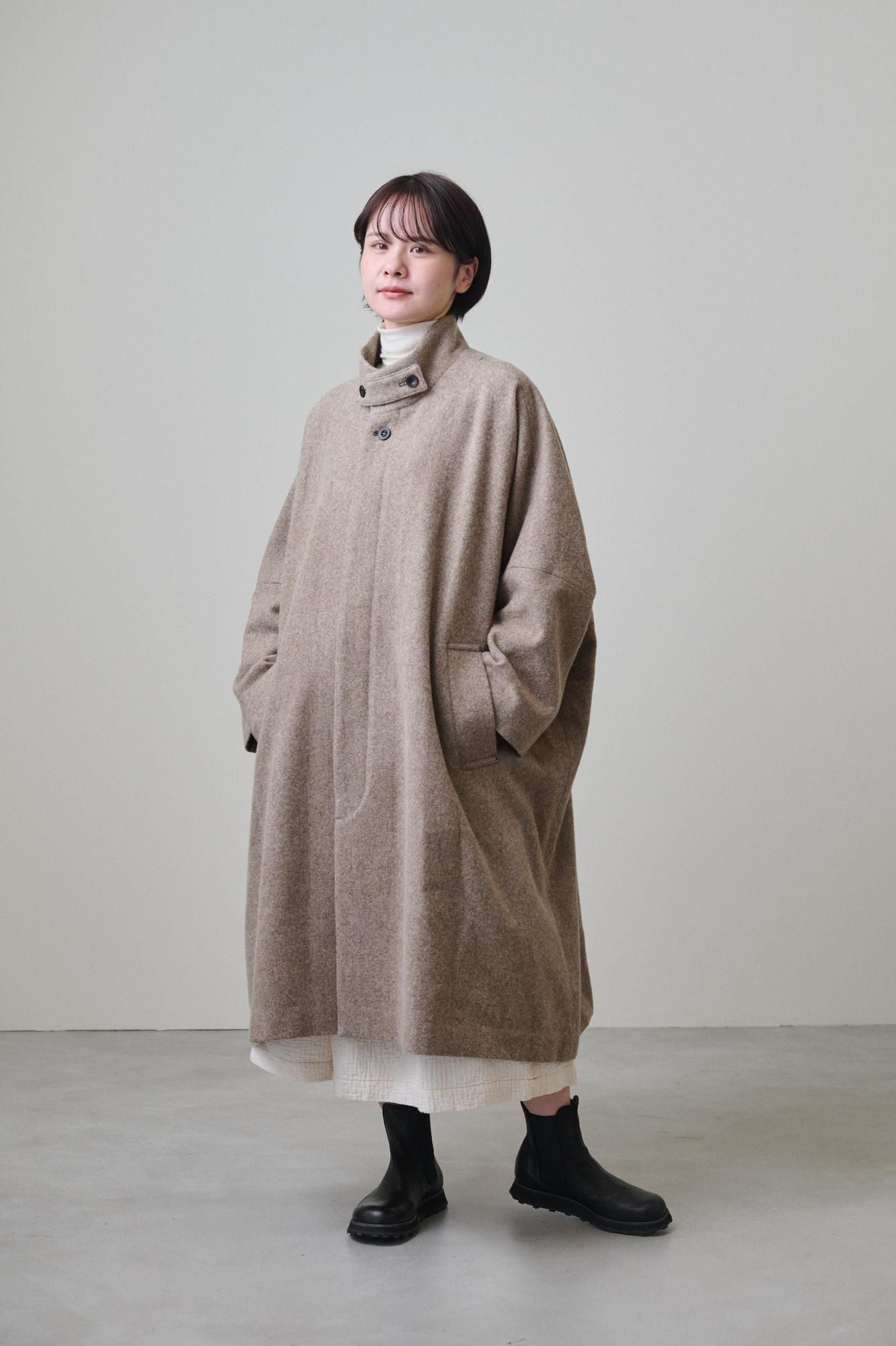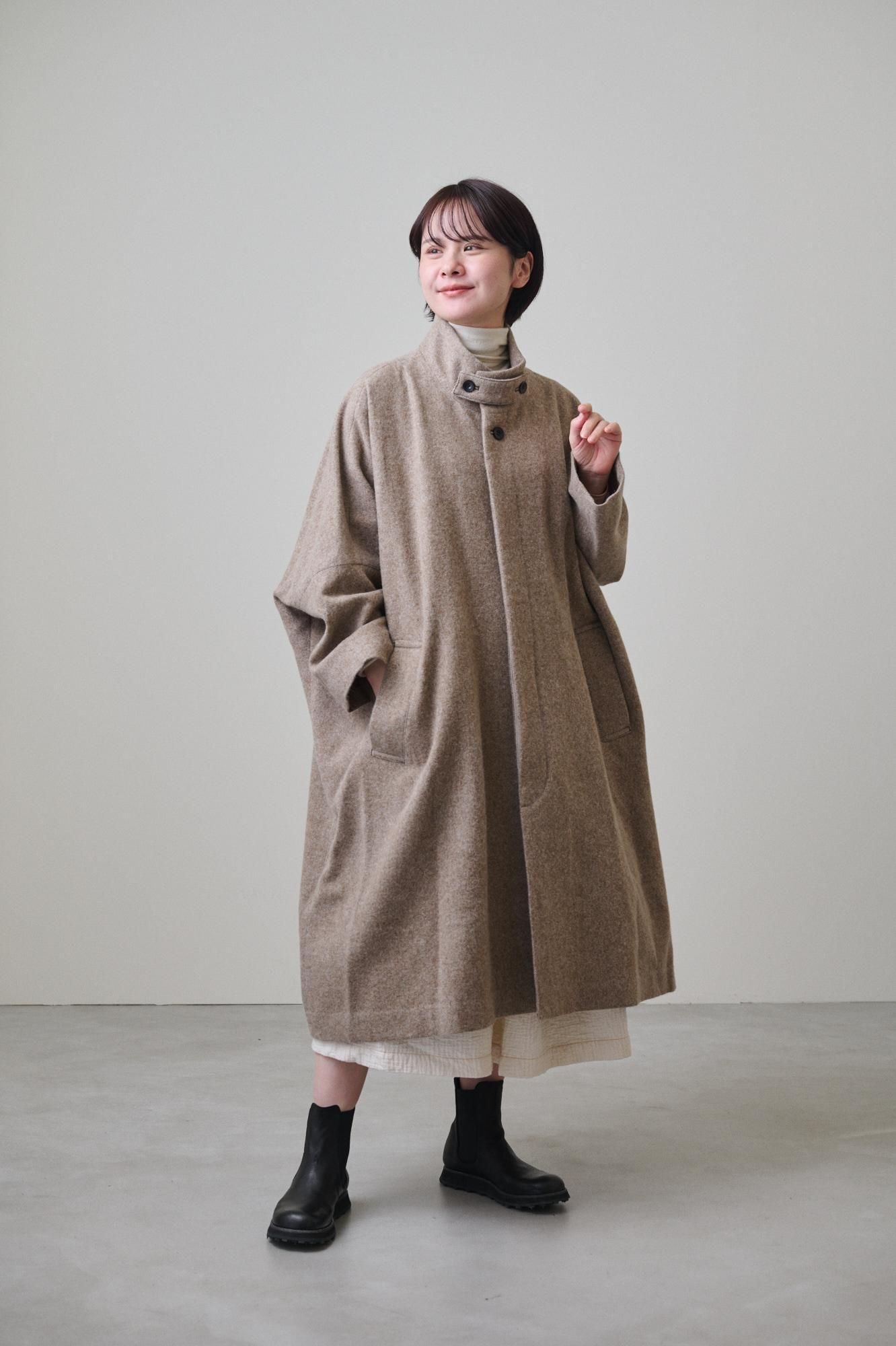 たっぷりと空気を含んだ柔らかなウール地で仕立てたコートです。