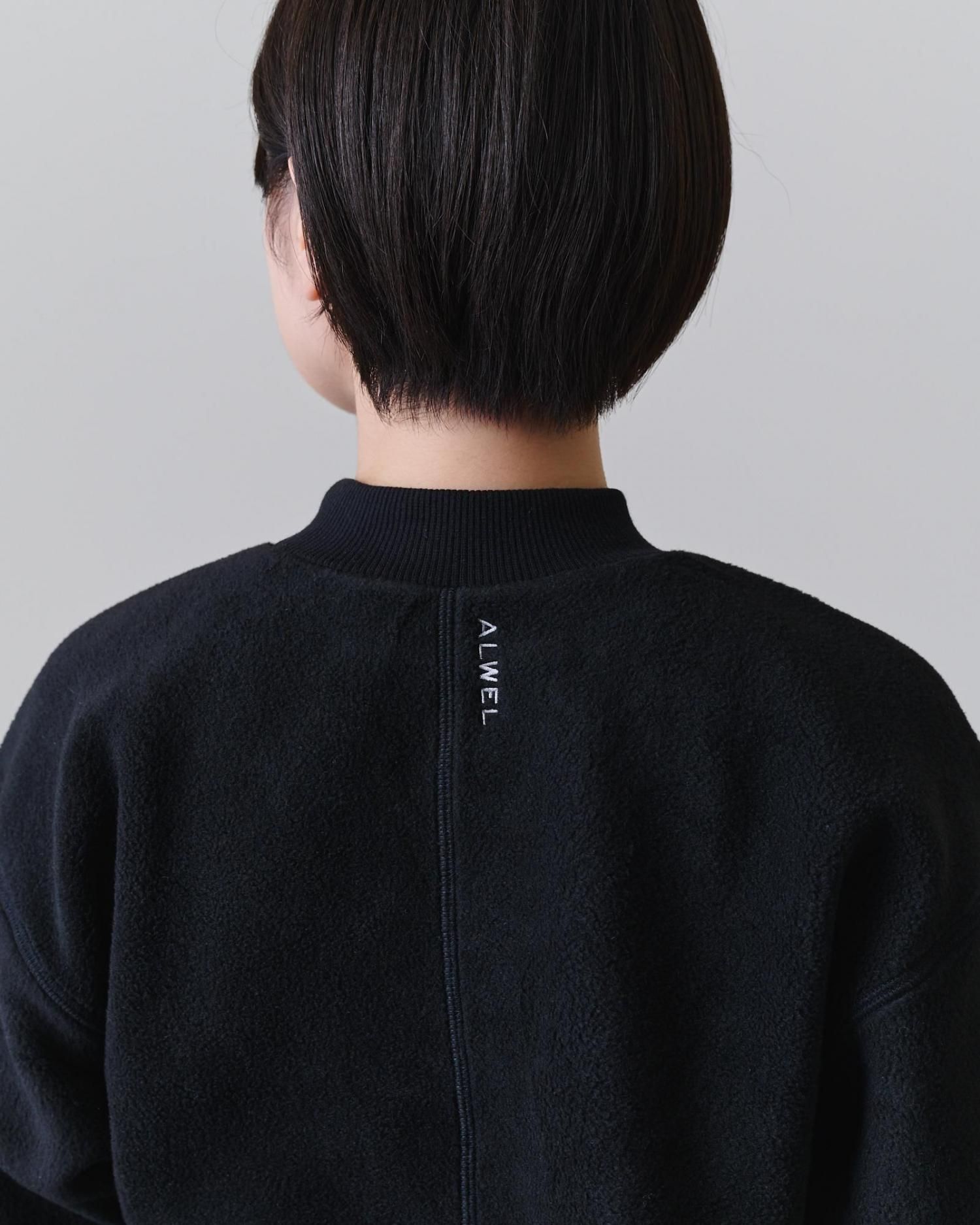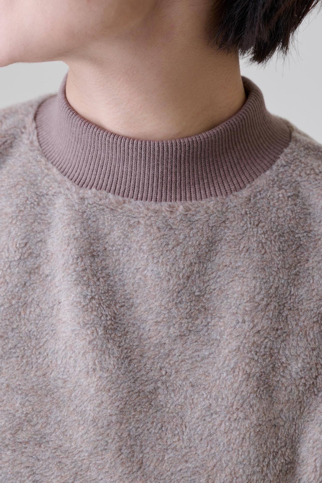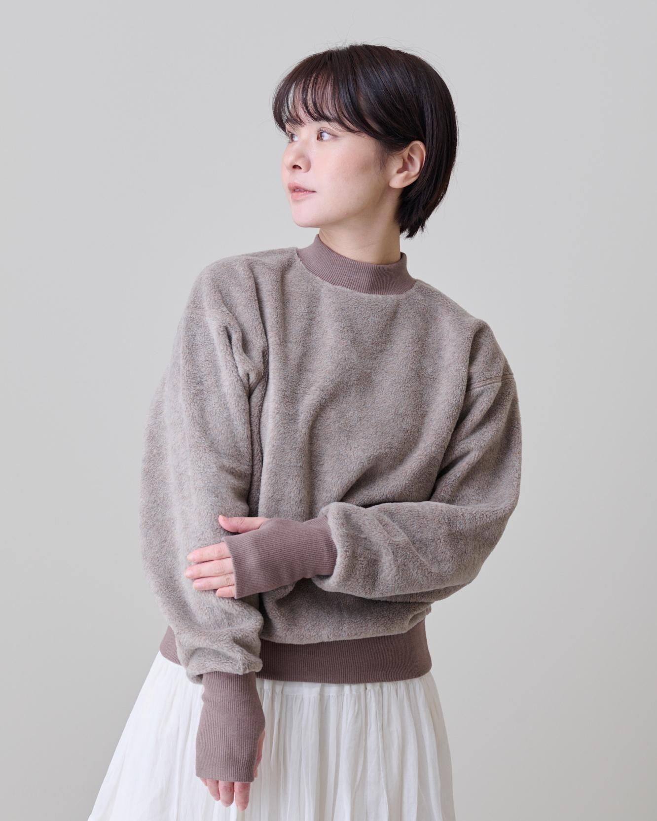 襟元はモックネックにすることで暖かさとデザイン性の両方を確保。