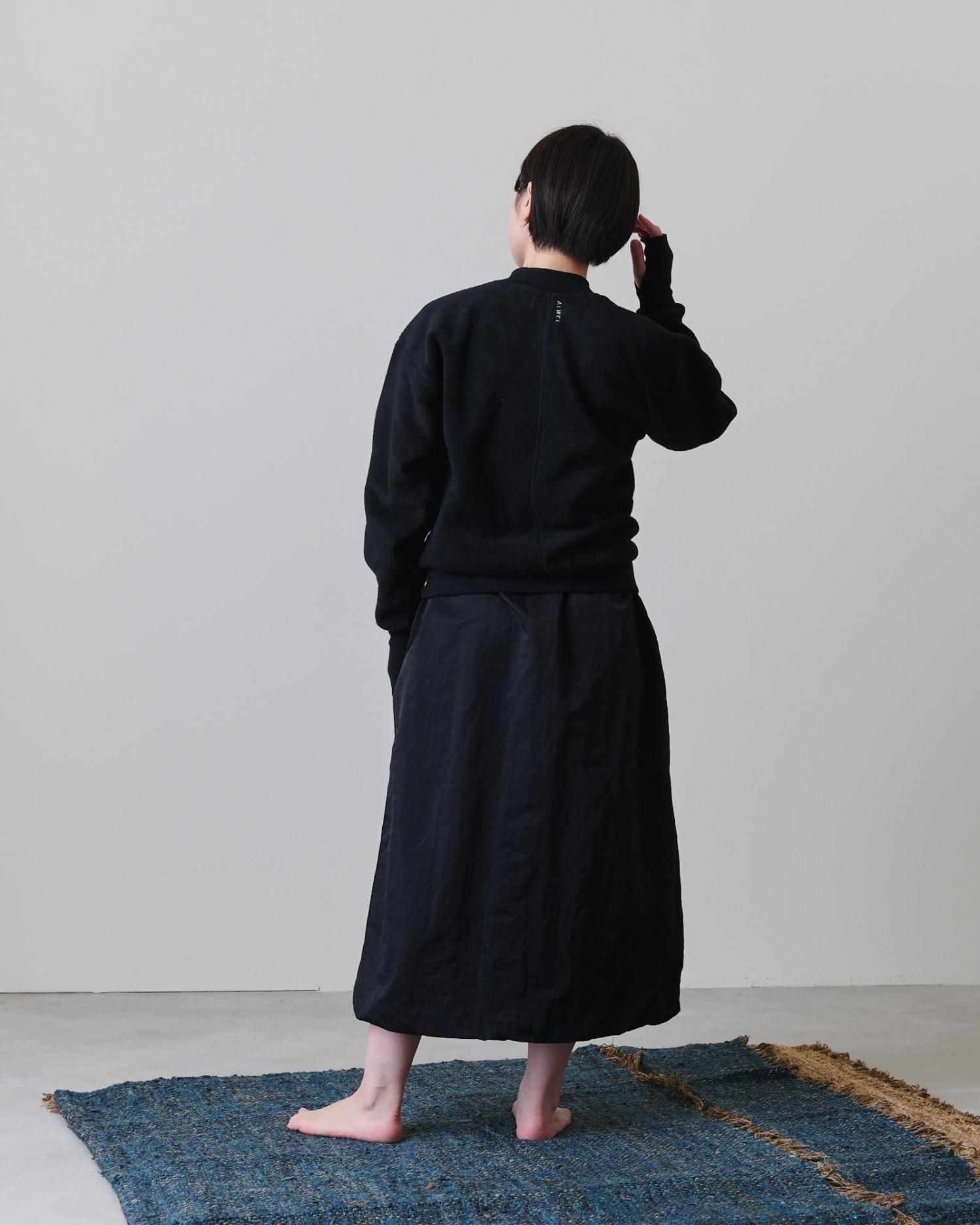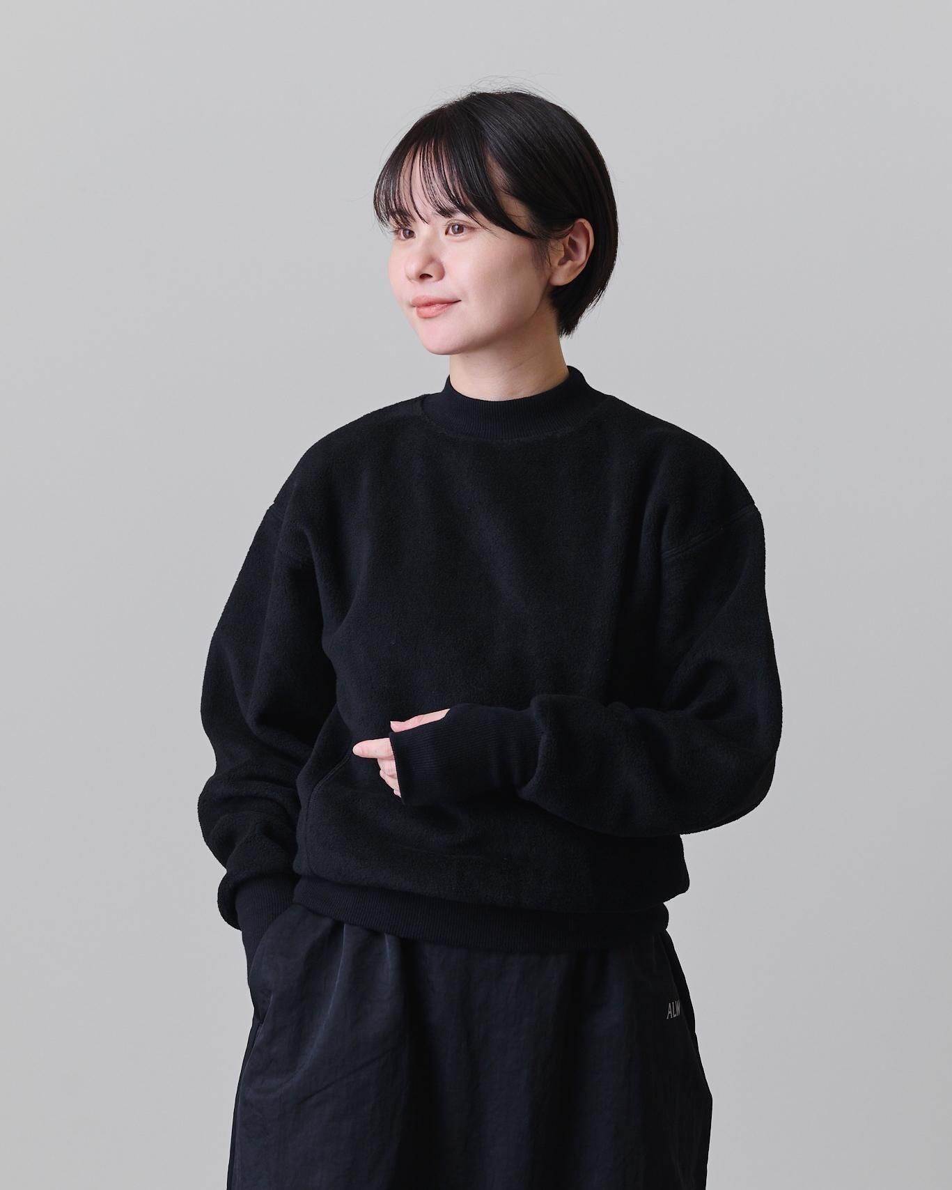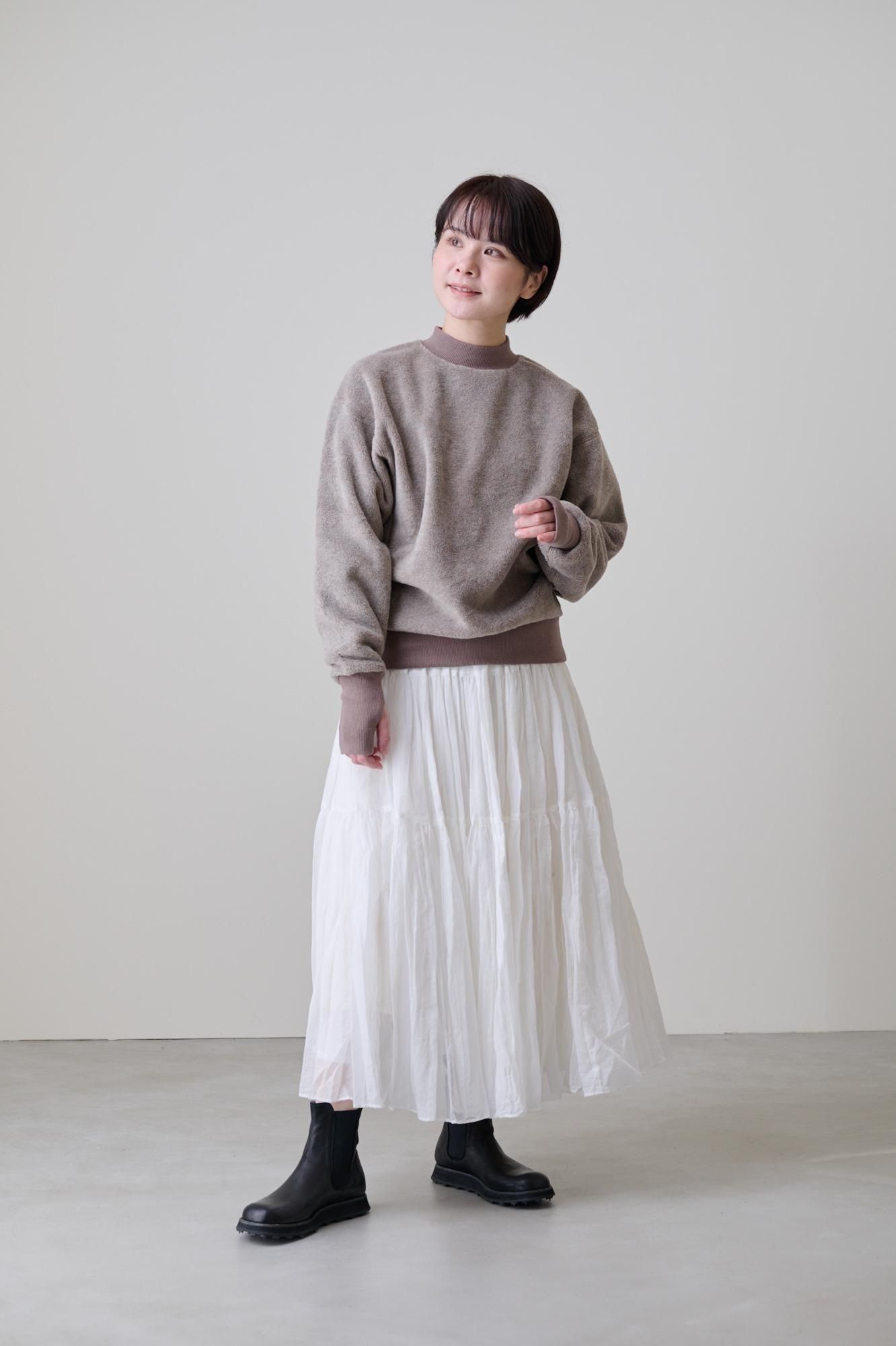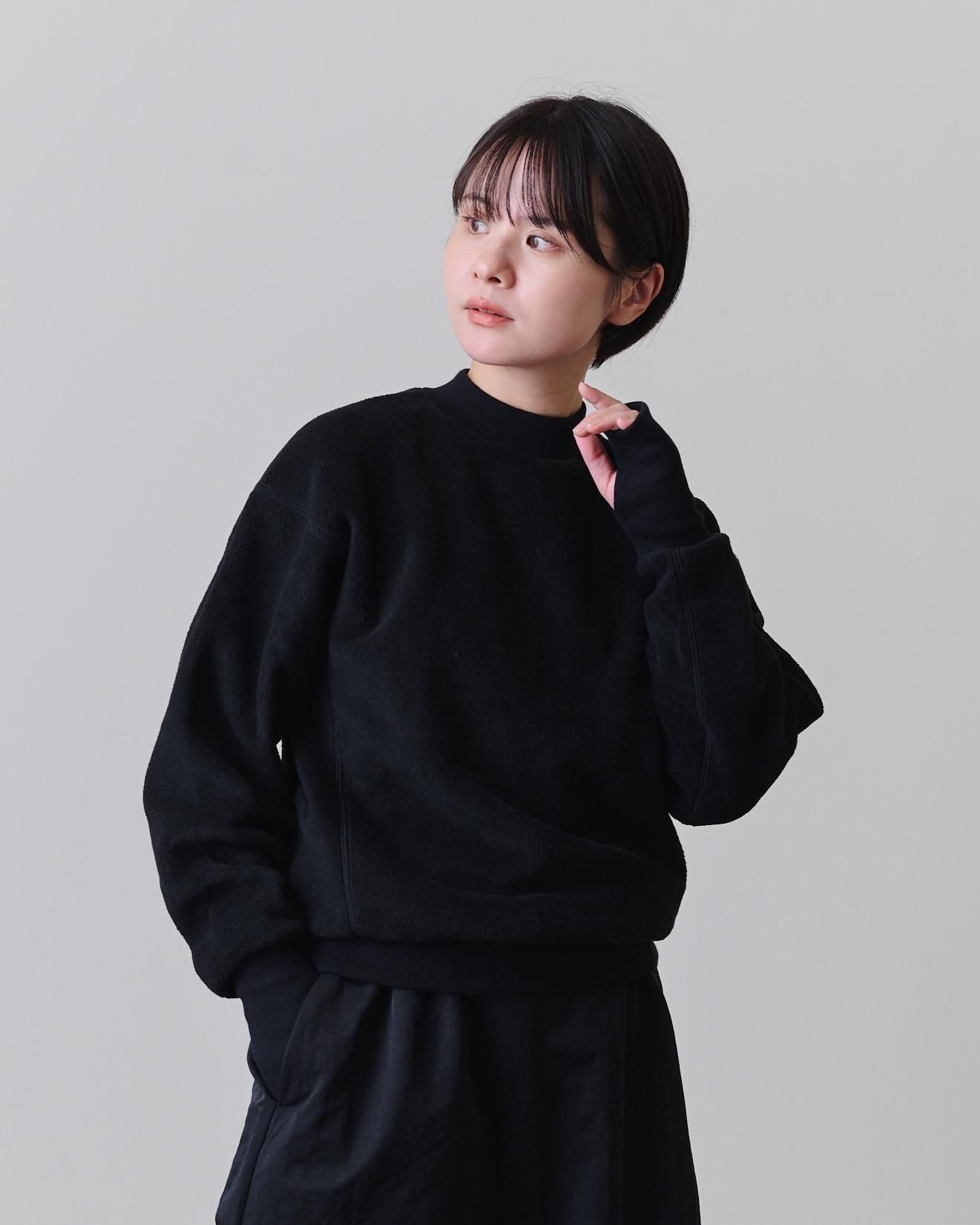 襟元はモックネックにすることで暖かさとデザイン性の両方を確保。