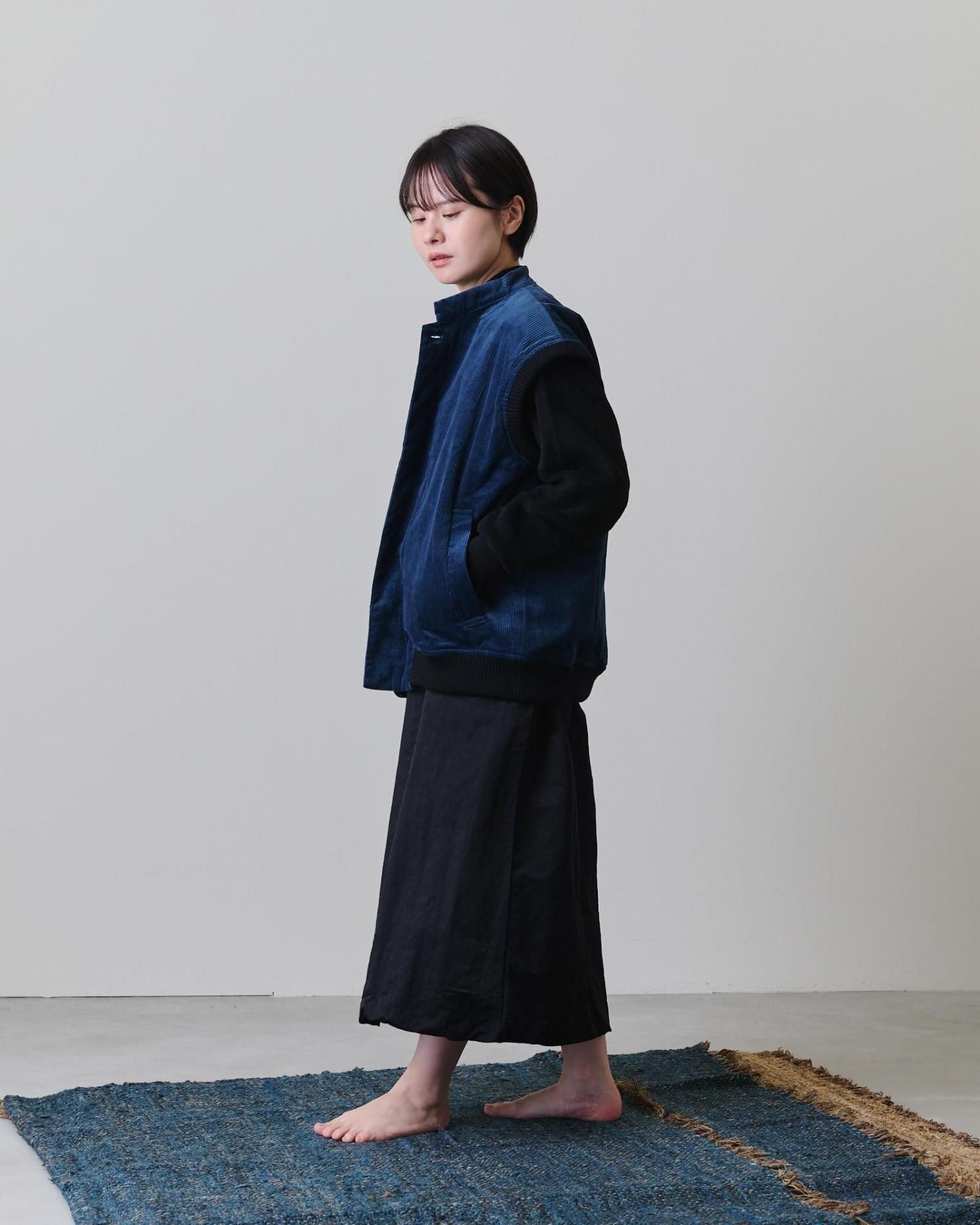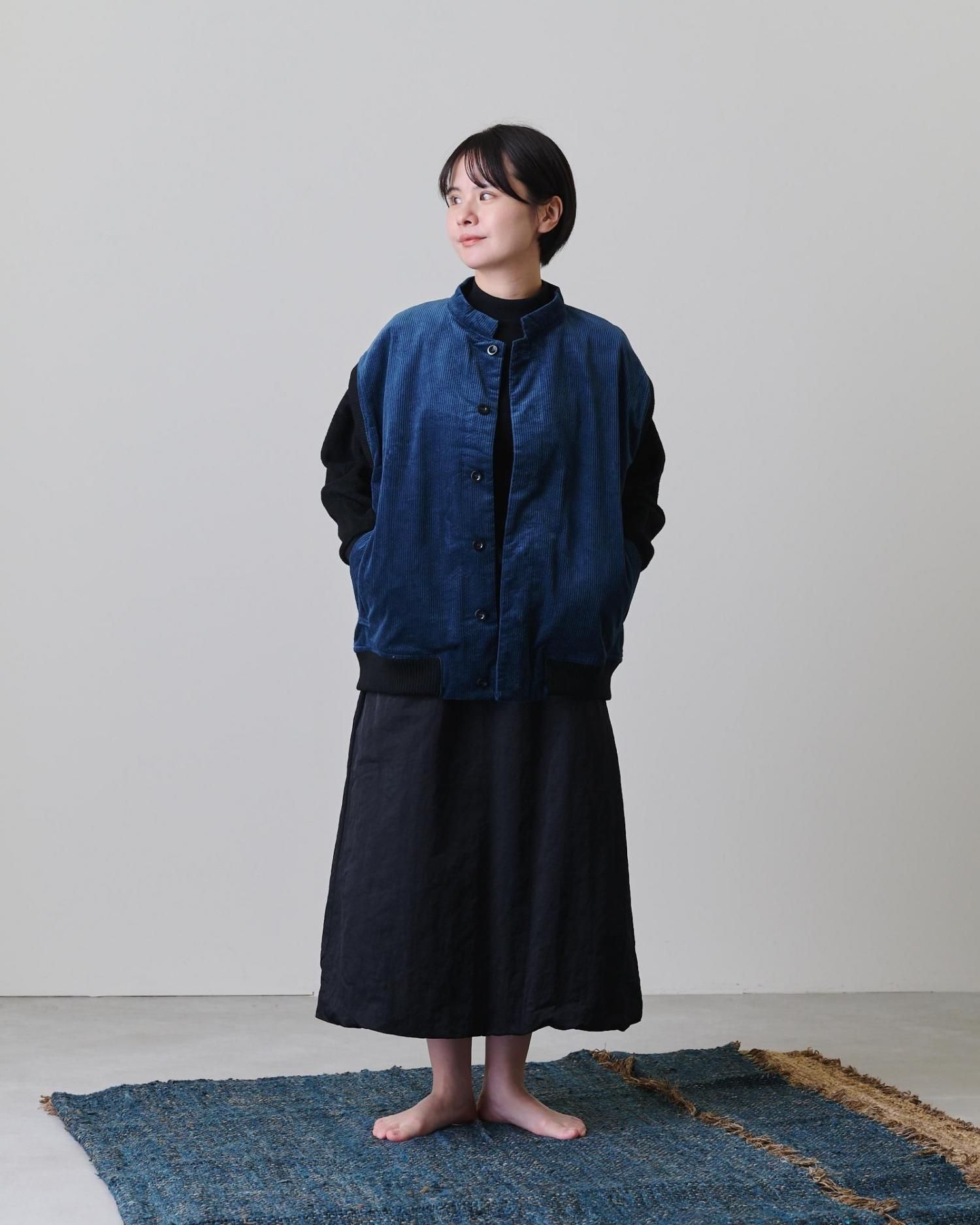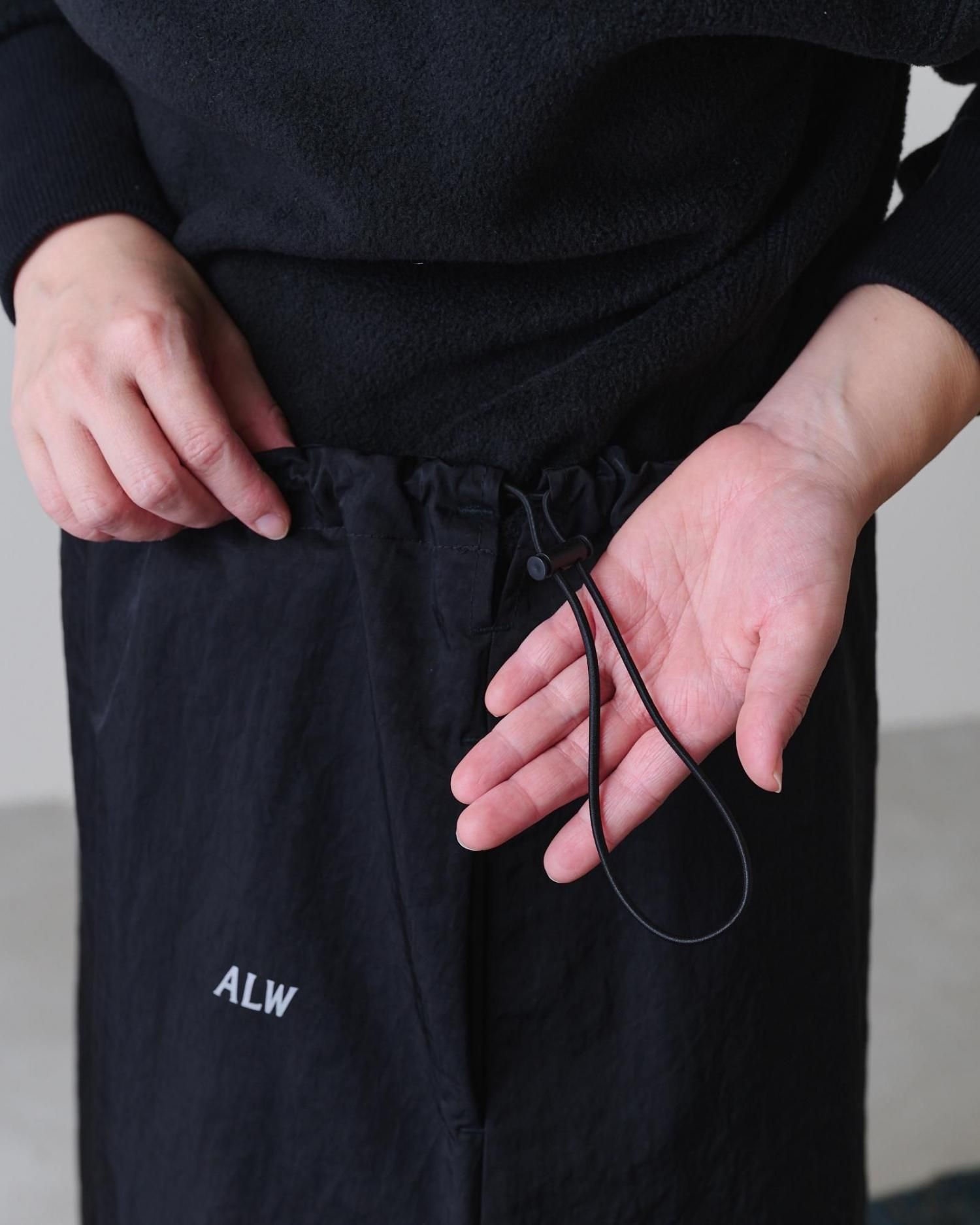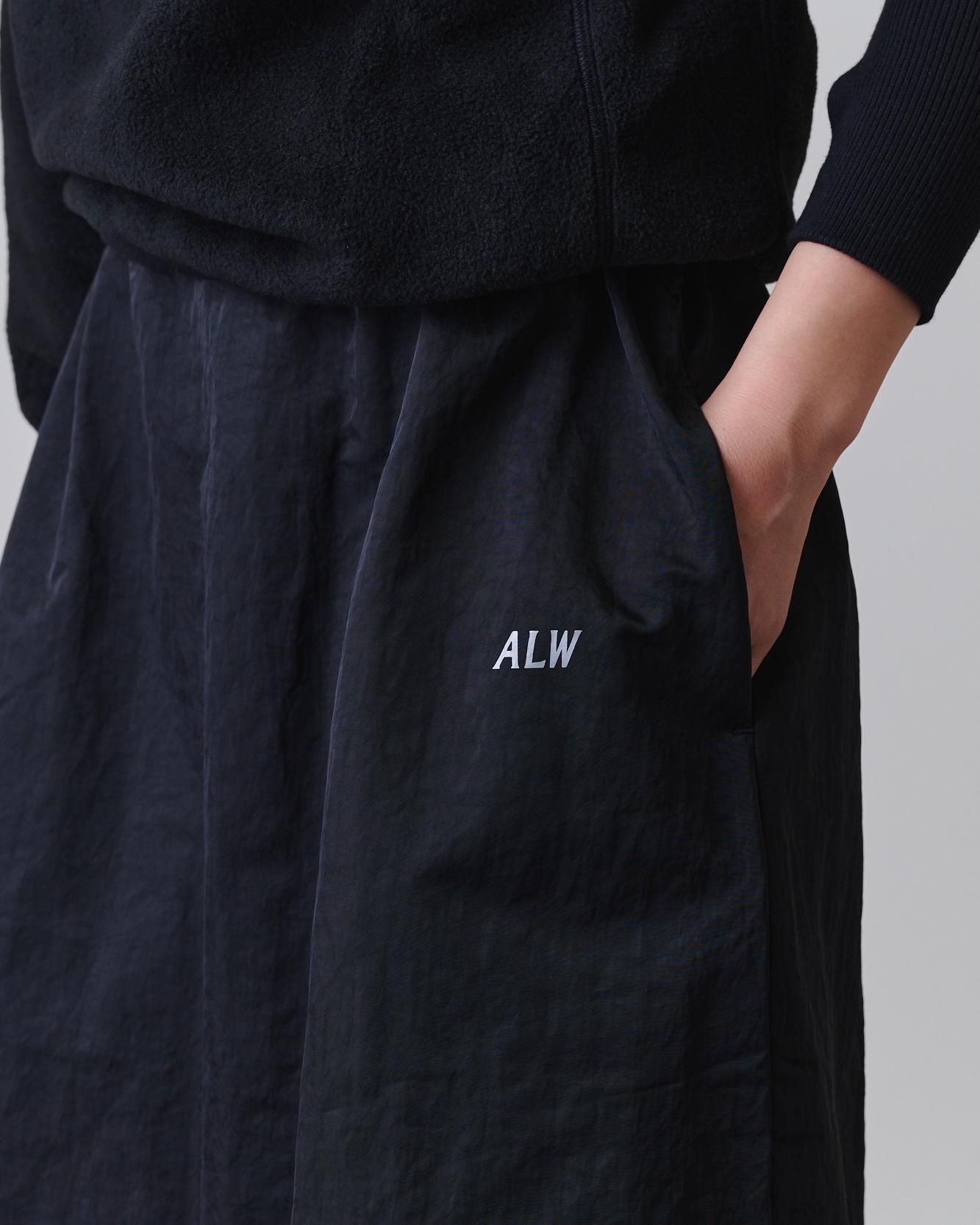 防水性を兼ね備えたナイロンツイル地で仕立てたスカートは、スポーティーな素材を用いながらも、ゆったり上品なシルエットに仕立てることでモード感のある大人の雰囲気に仕上げています。