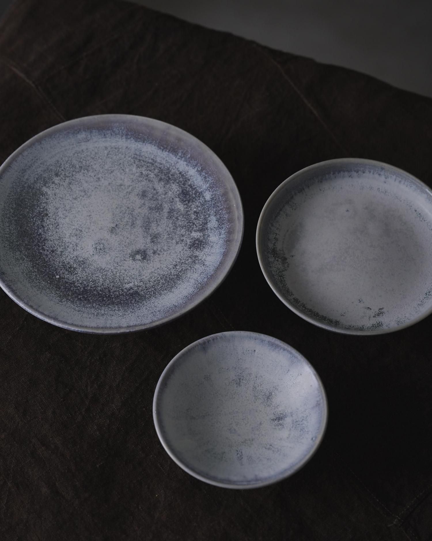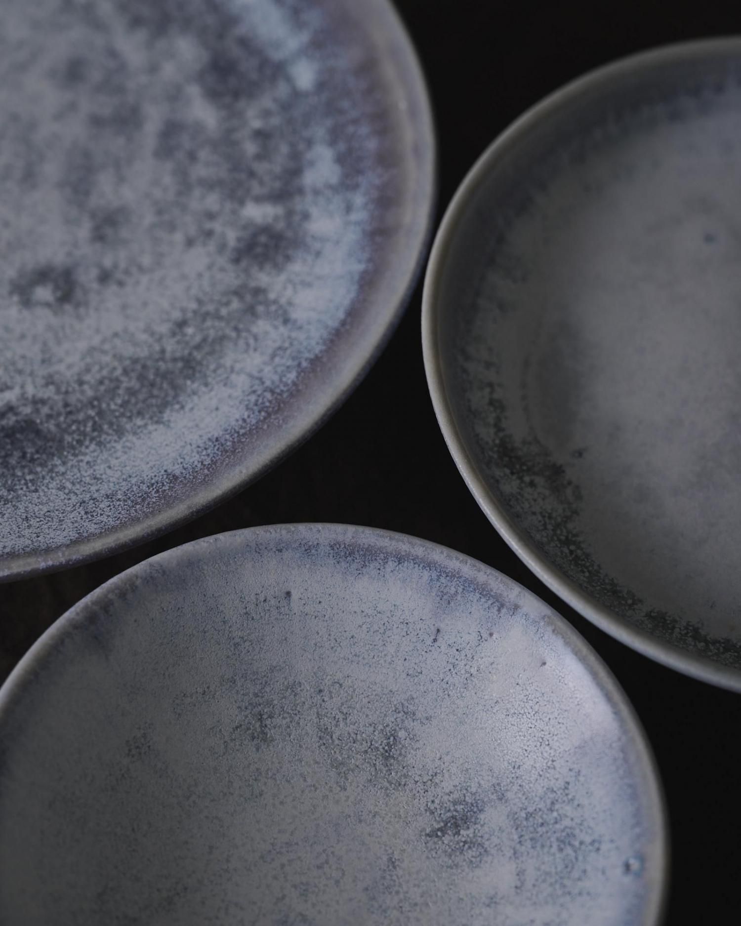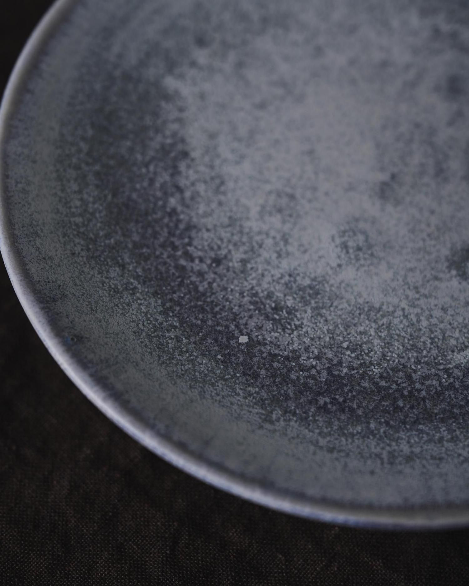 チタン釉の器はところどころ青みやシルバーの色味が独特の雰囲気の質感を持ちます。