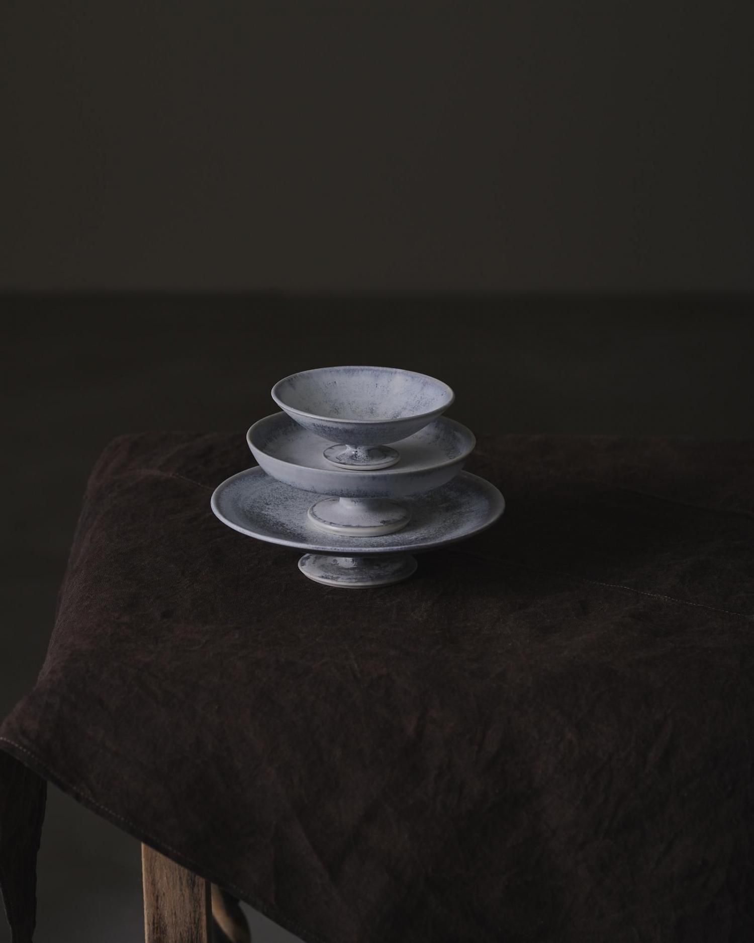 愛知県で作陶されている、村井大介(Murai Daisuke)さんの高脚プレート&鉢です。