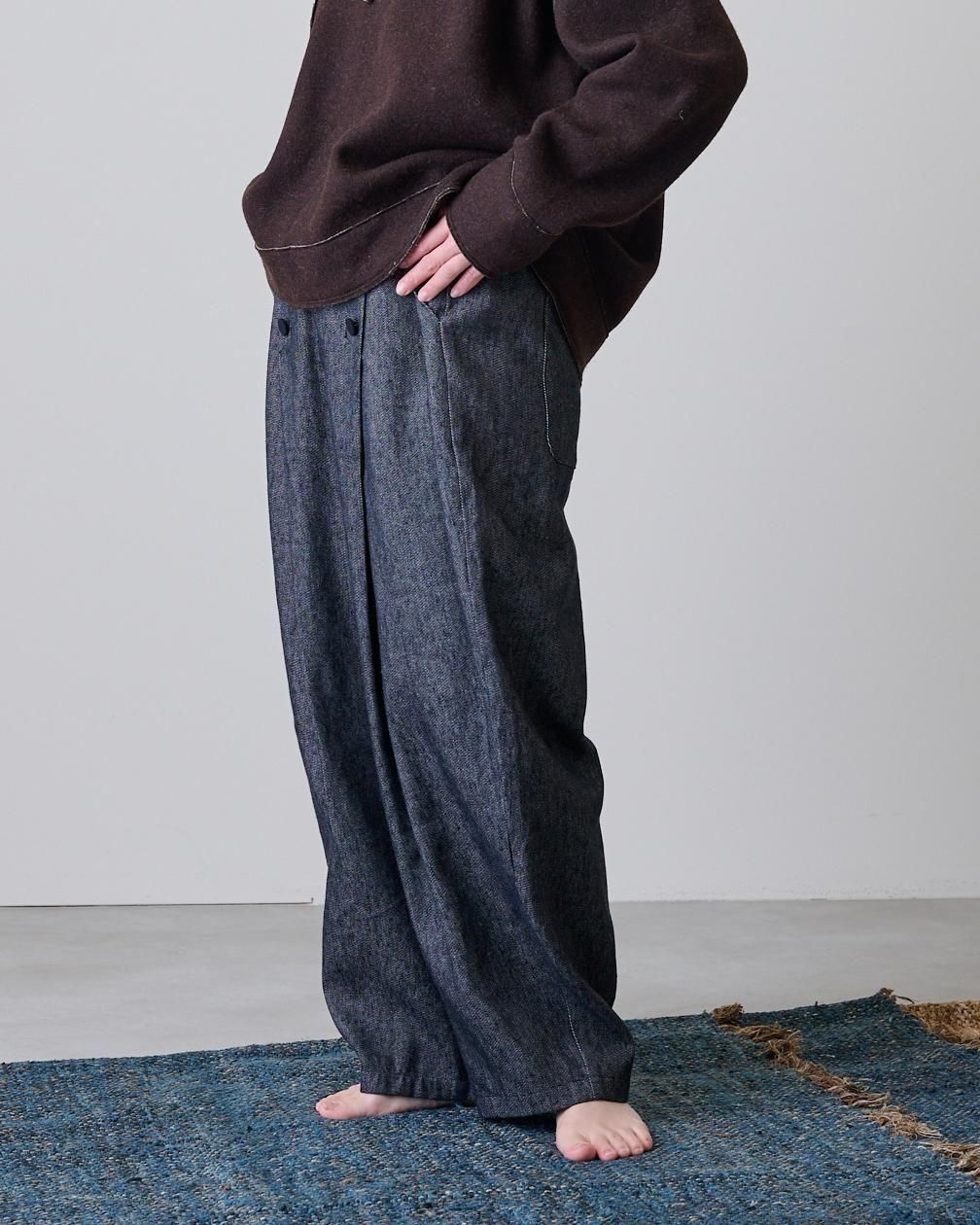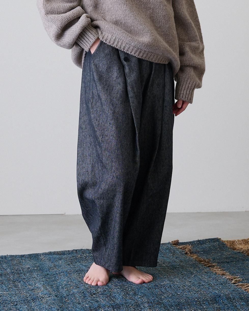 裾に向かってゆったりとテパードするワイドめのシルエットは、体型を選ばず誰もが綺麗に履きこなせるシルエットです。