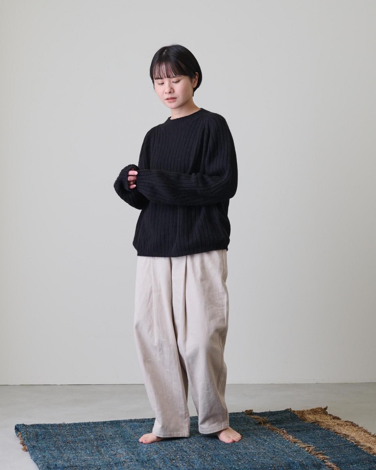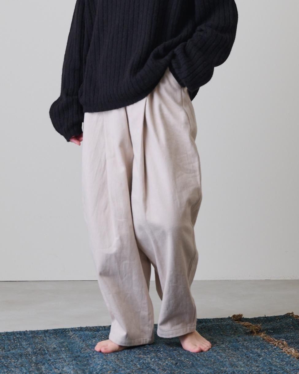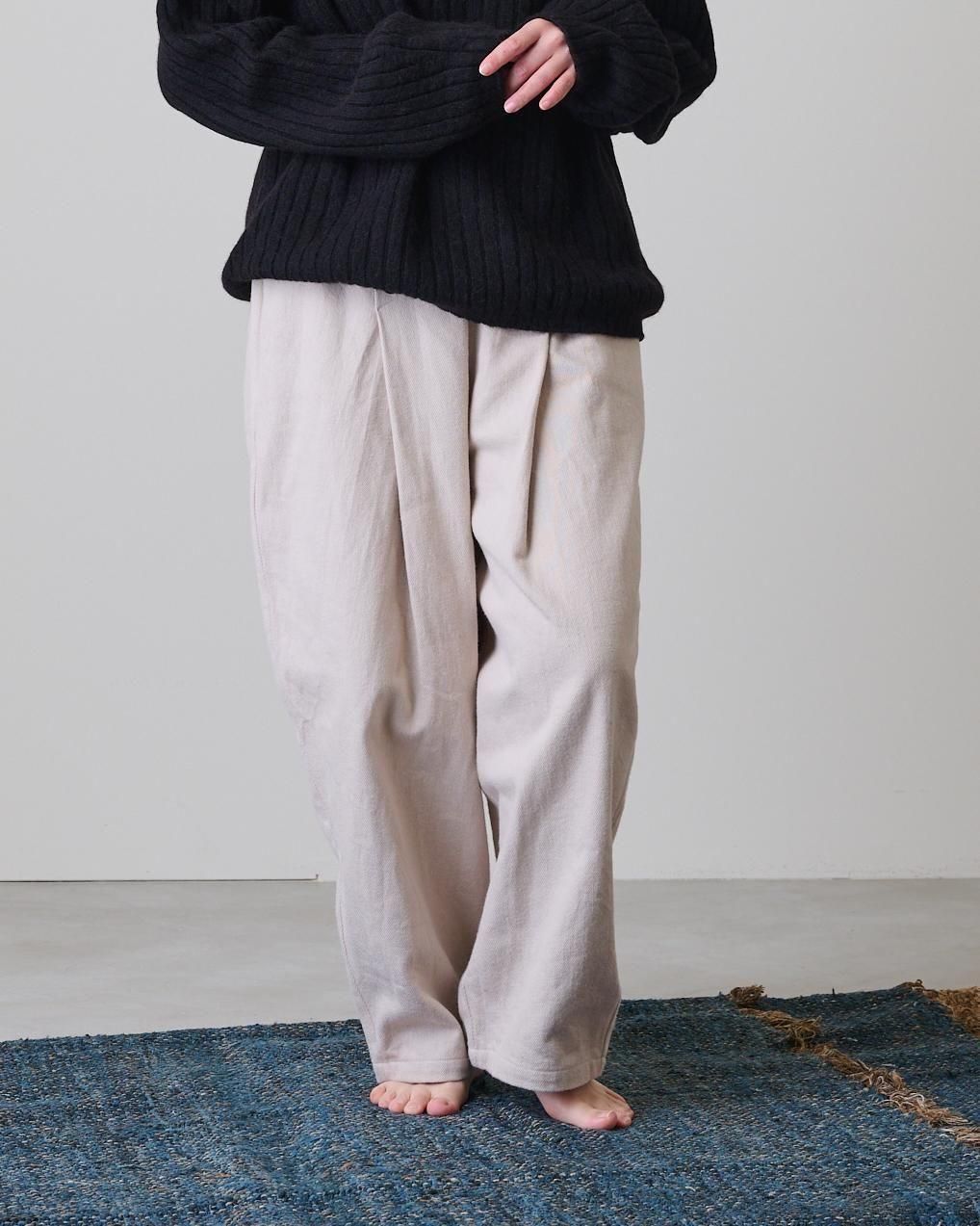 裾に向かってゆったりとテパードするワイドめのシルエットは、体型を選ばず誰もが綺麗に履きこなせるシルエットです。