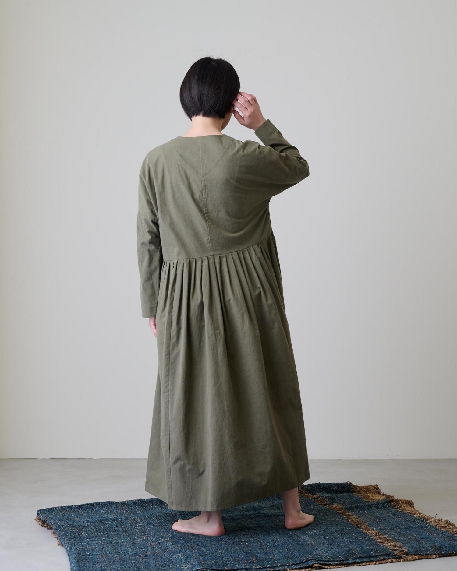 ワンピースに用いられているのは、ピグメントダイ(顔料)で特殊染色したコットン生地。