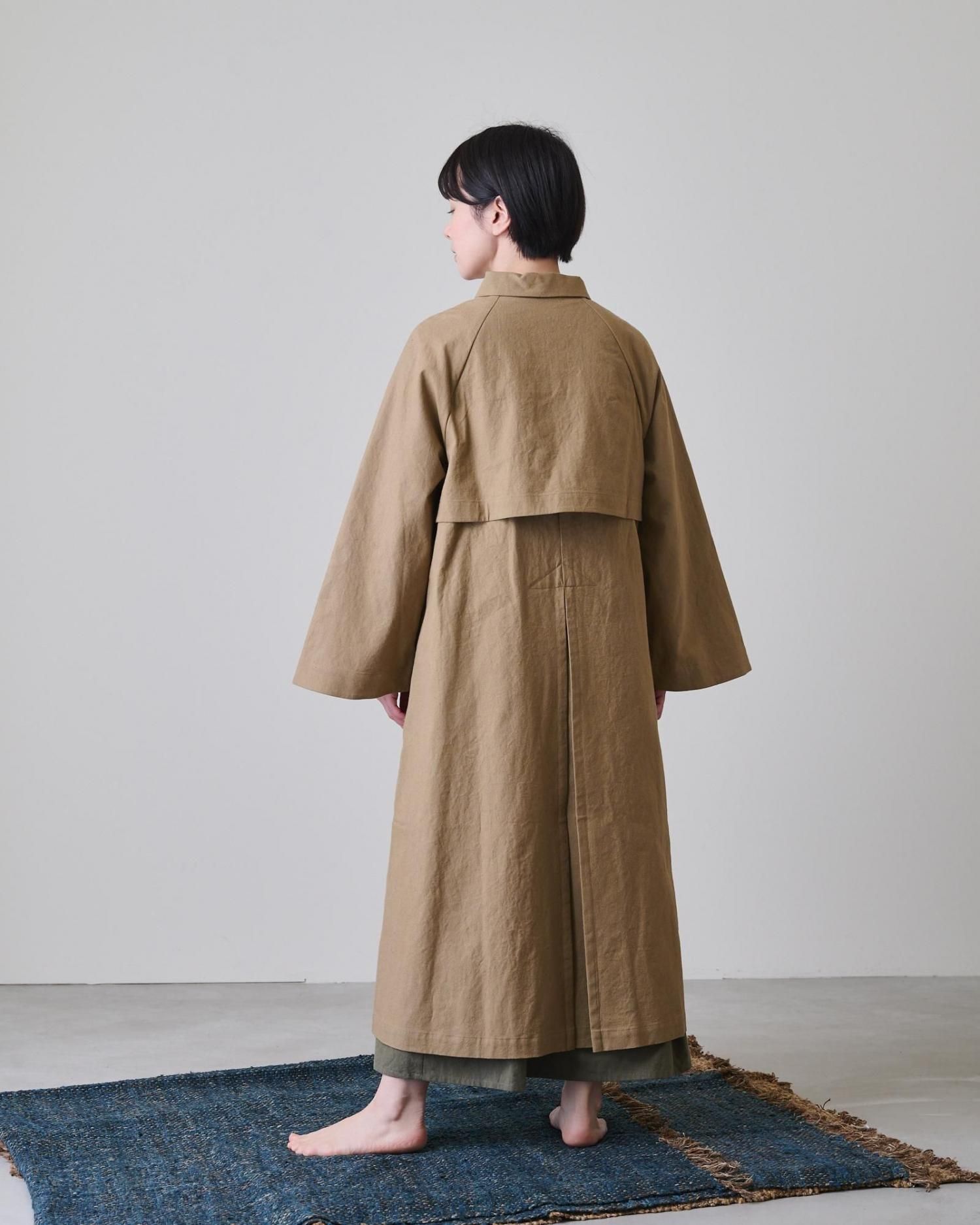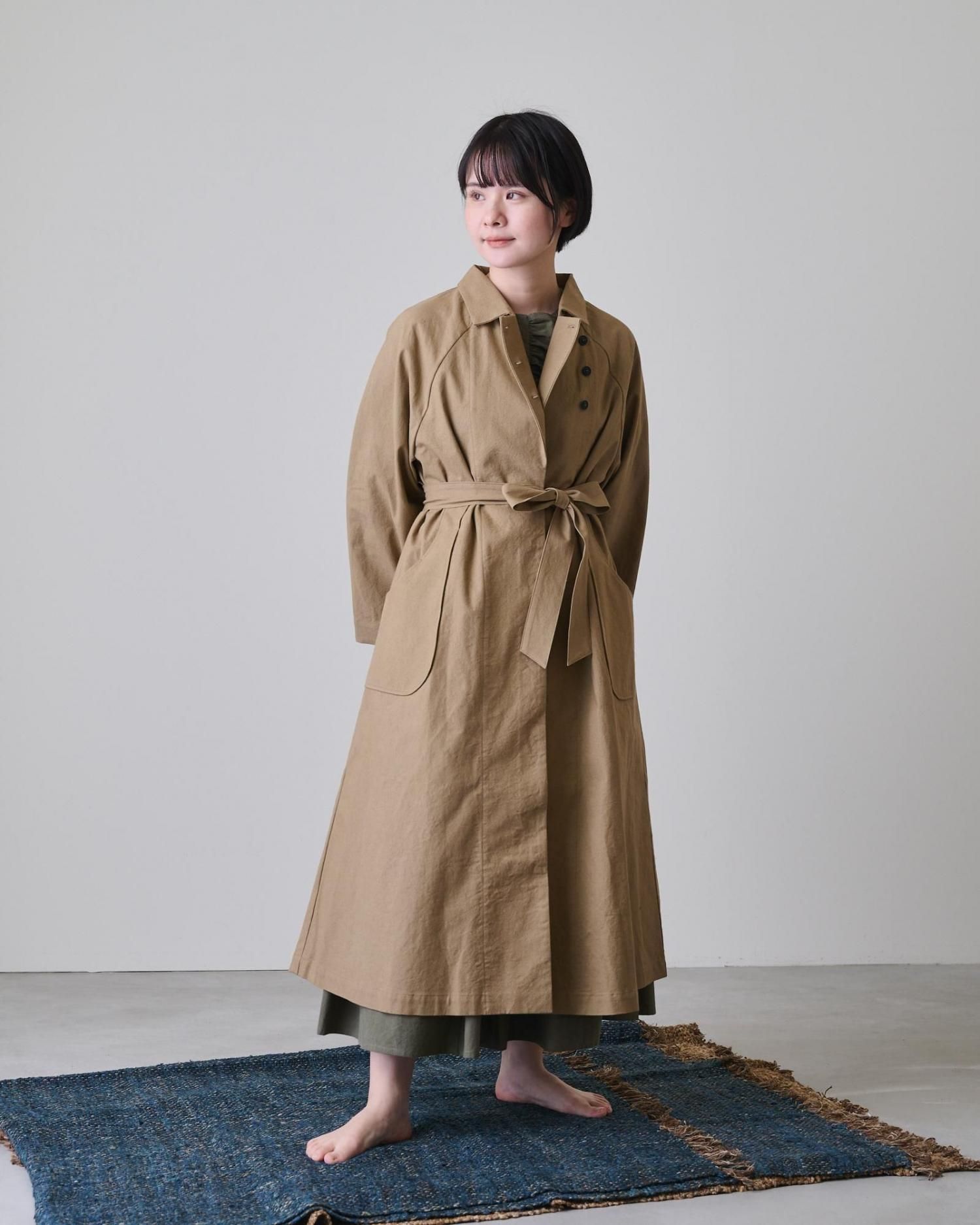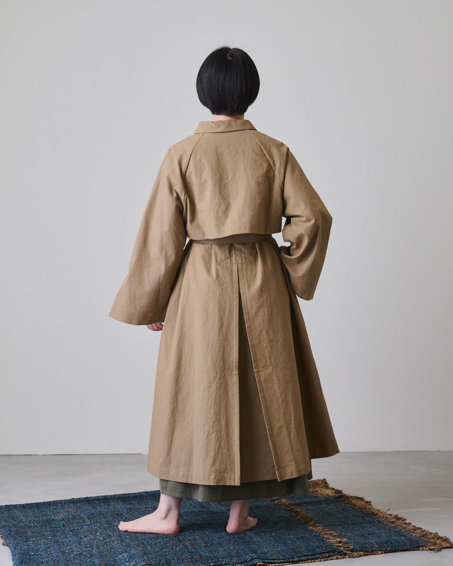 裏地のない一枚仕立てのコートは長い期間着られるのはもちろんのこと、ワンピースのように着まわすこともでき、様々な着こなしが楽しめる魅力的な一着です。