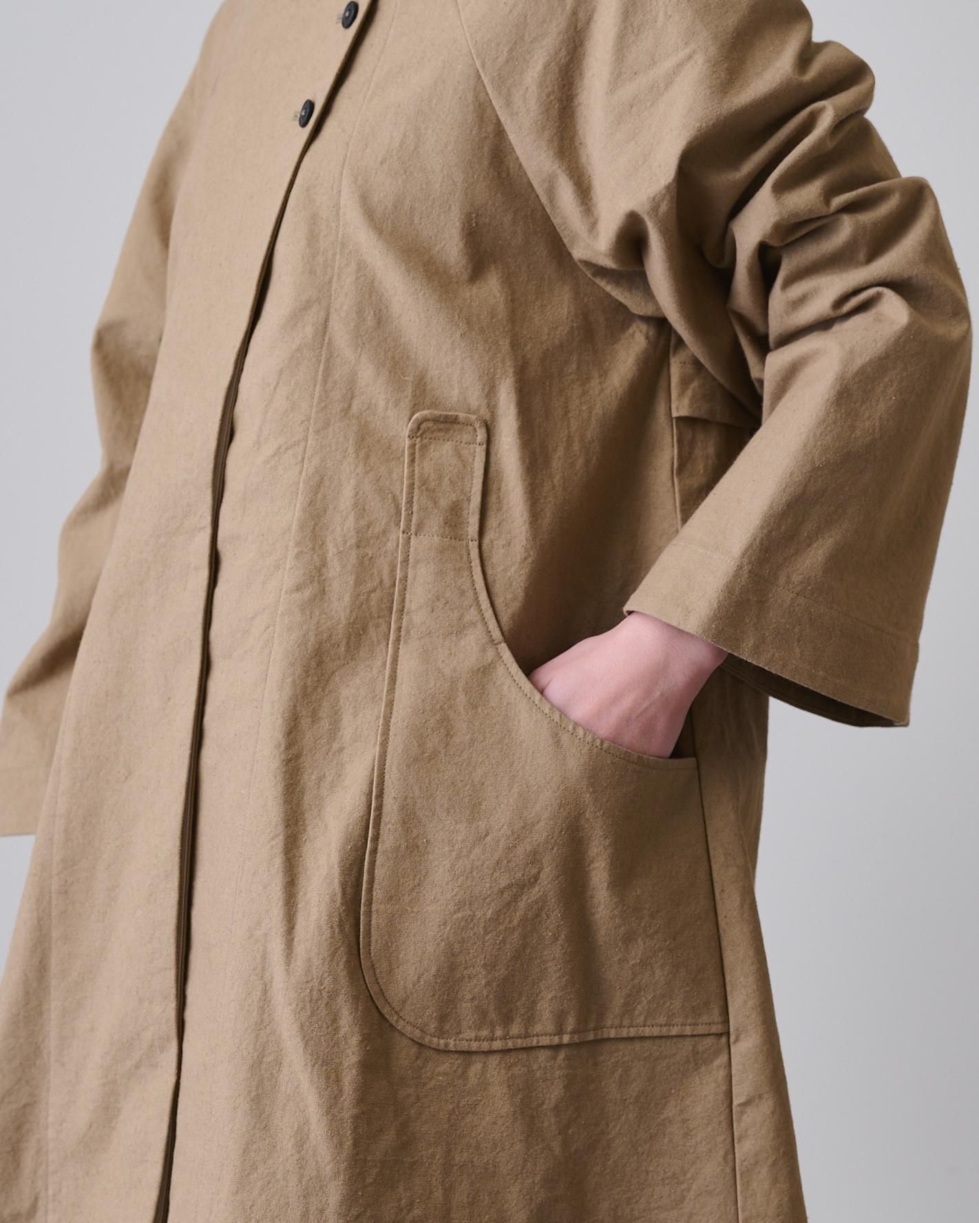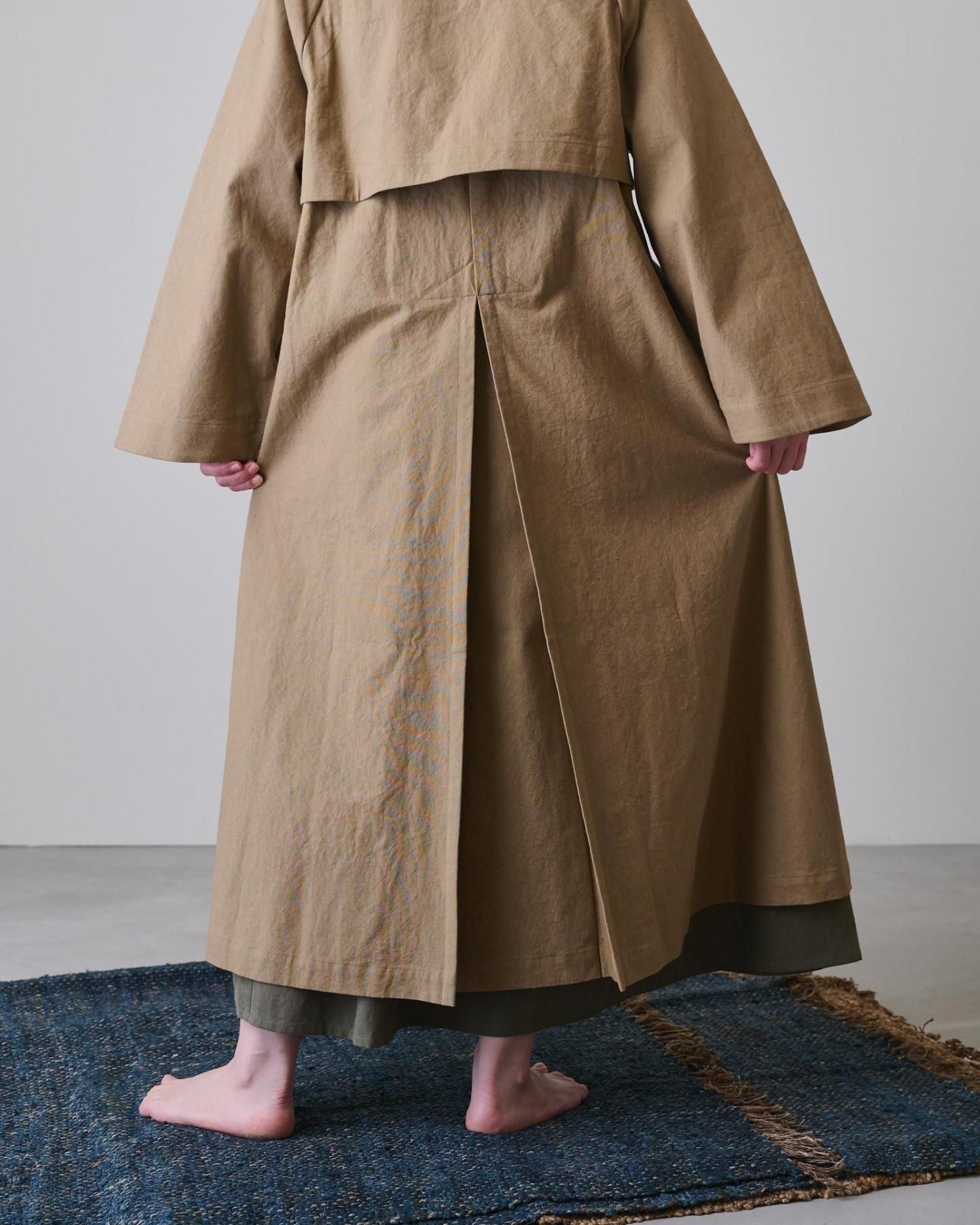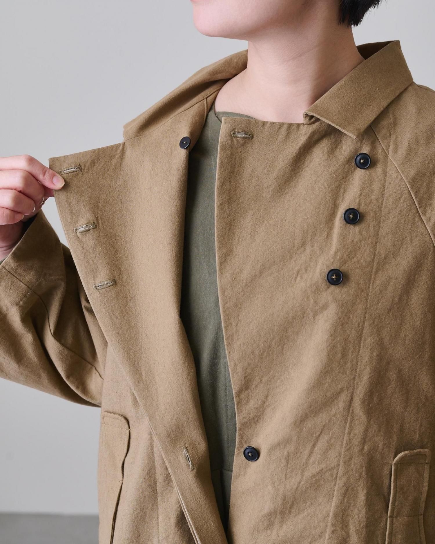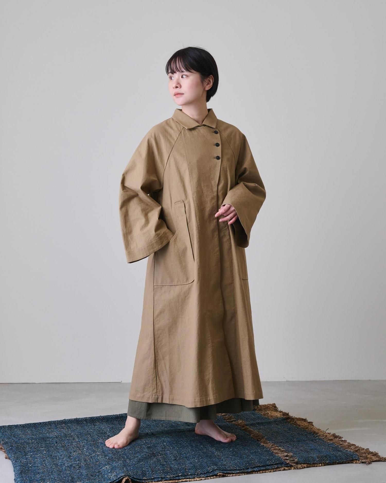 裏地のない一枚仕立てのコートは長い期間着られるのはもちろんのこと、ワンピースのように着まわすこともでき、様々な着こなしが楽しめる魅力的な一着です。