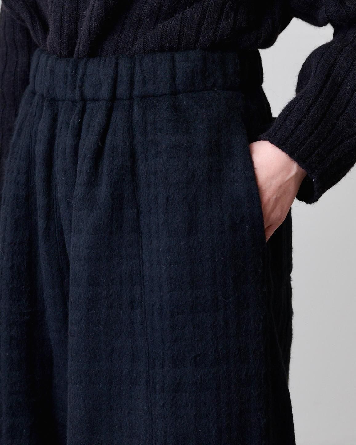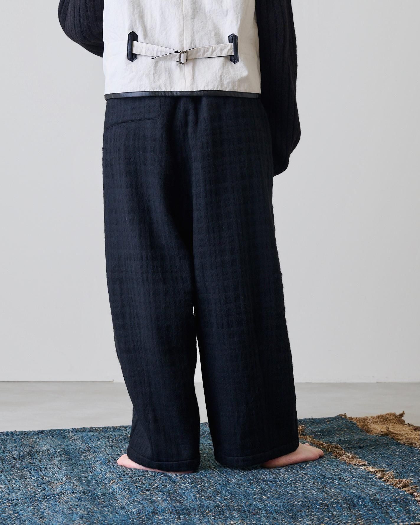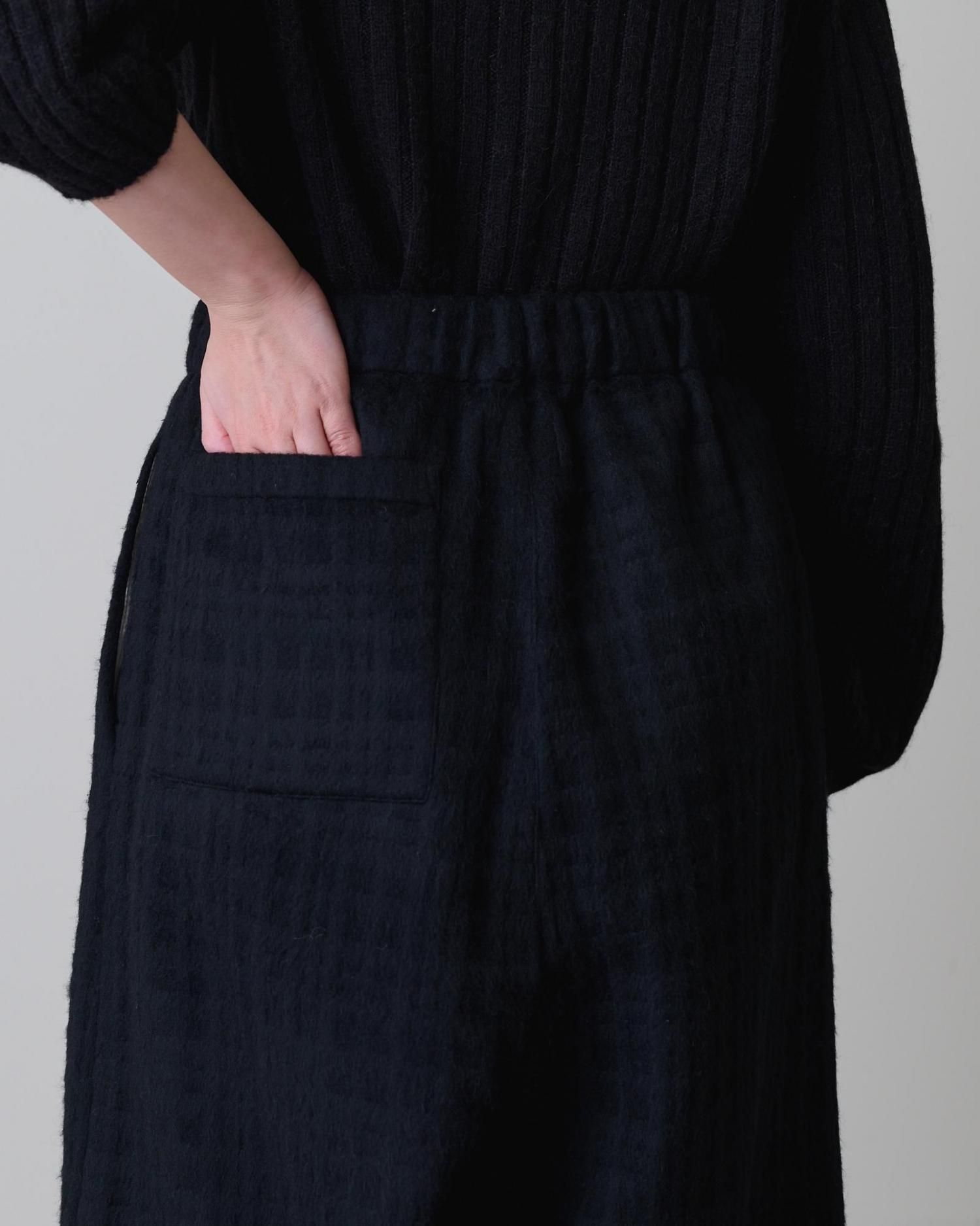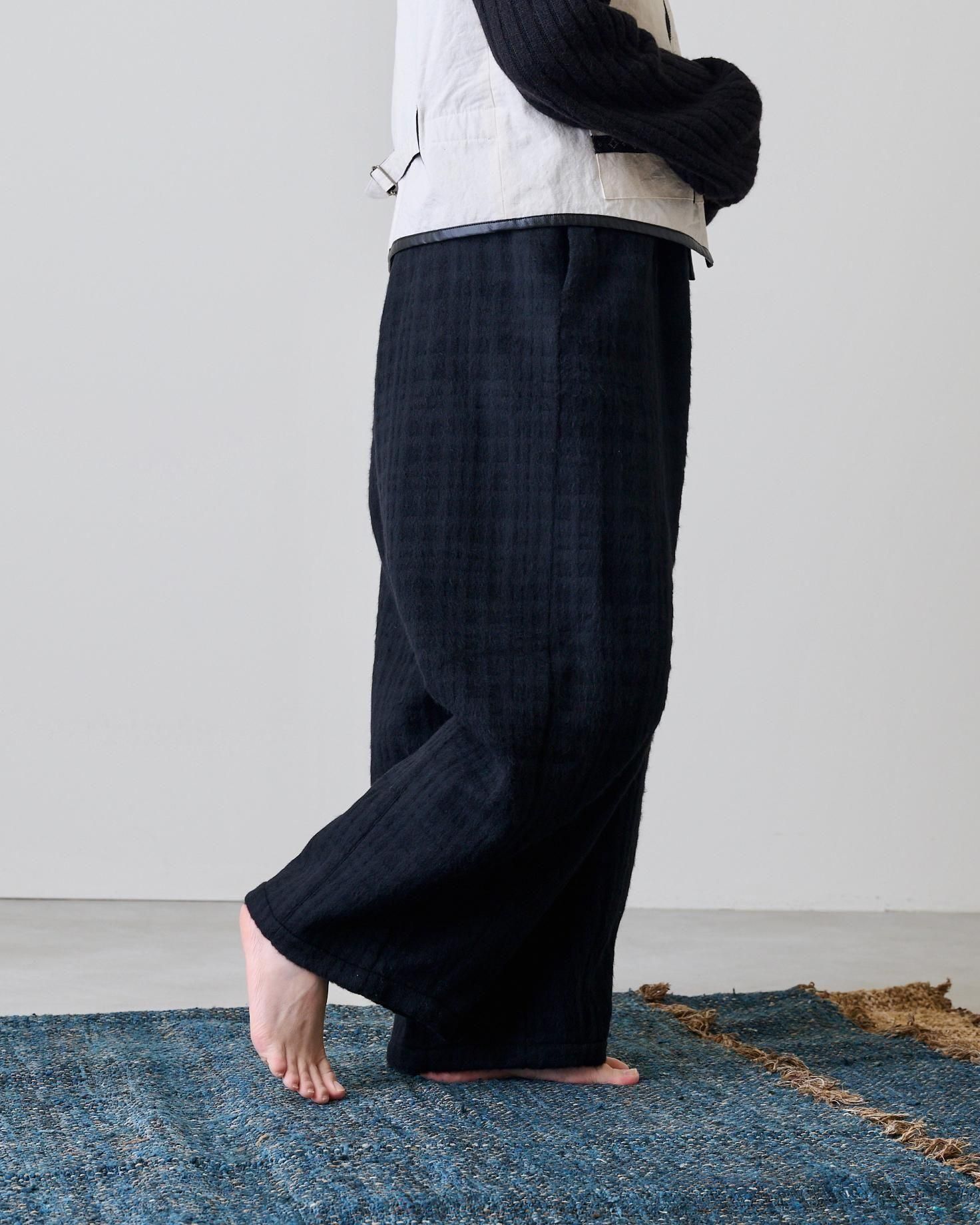 黒地にチャコールを織り込んだチェック柄は、無地のように着回せながら、単なるブラックとは一味違う洗練された着こなしを完成させてくれます。