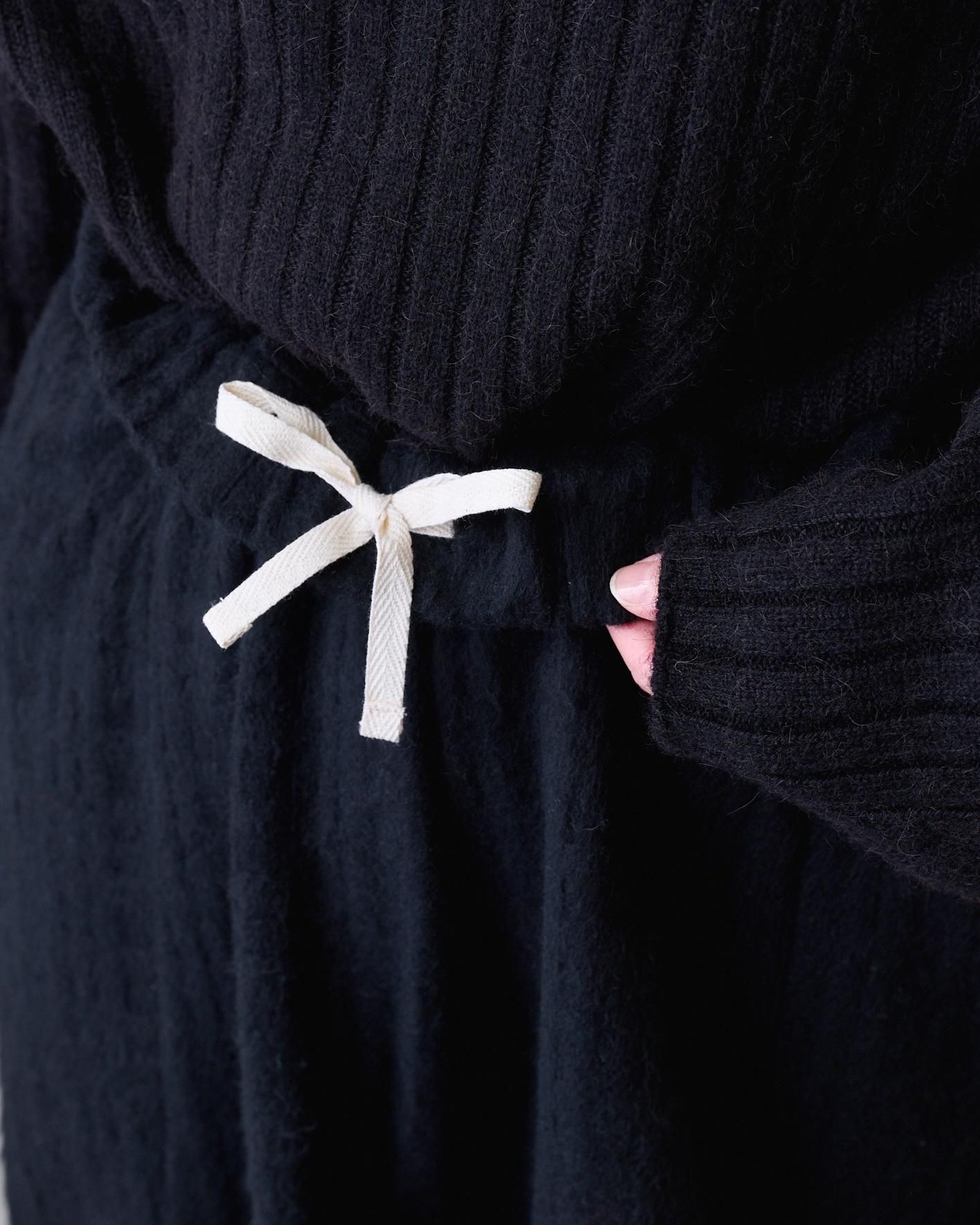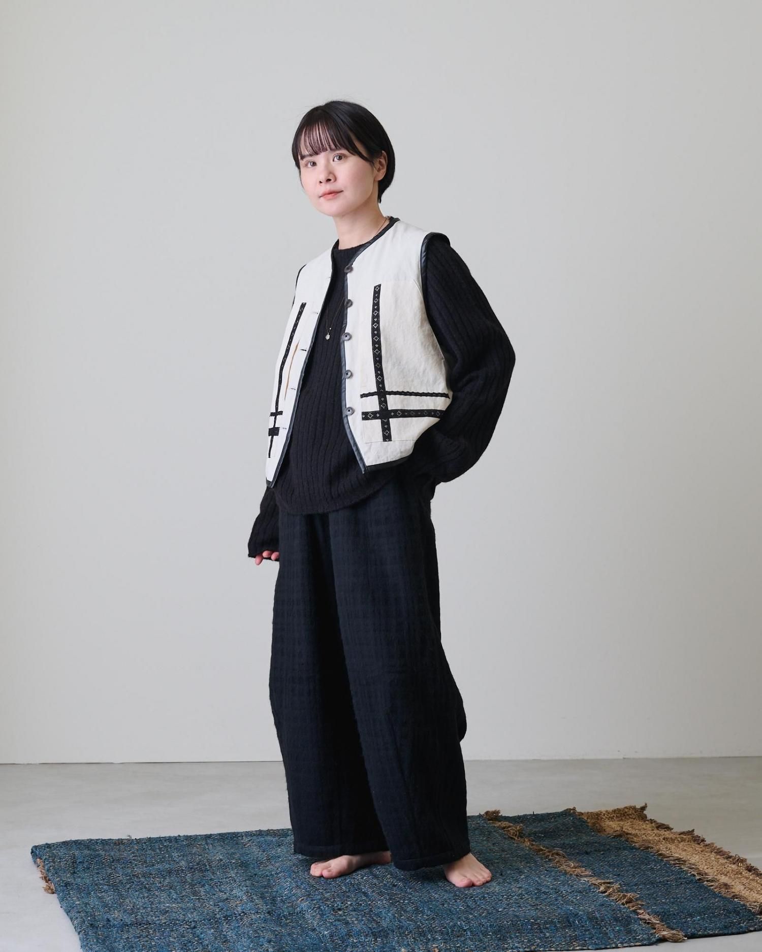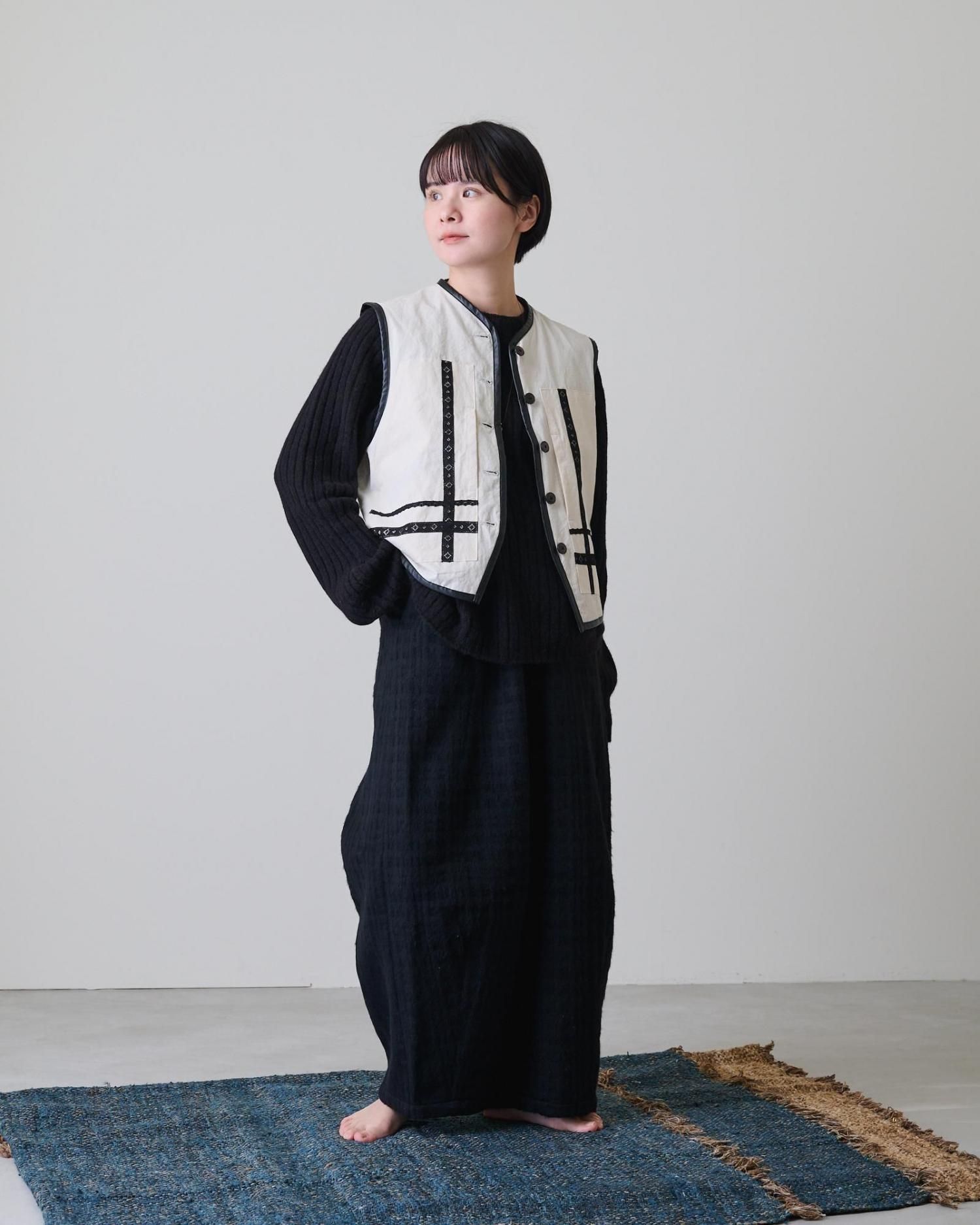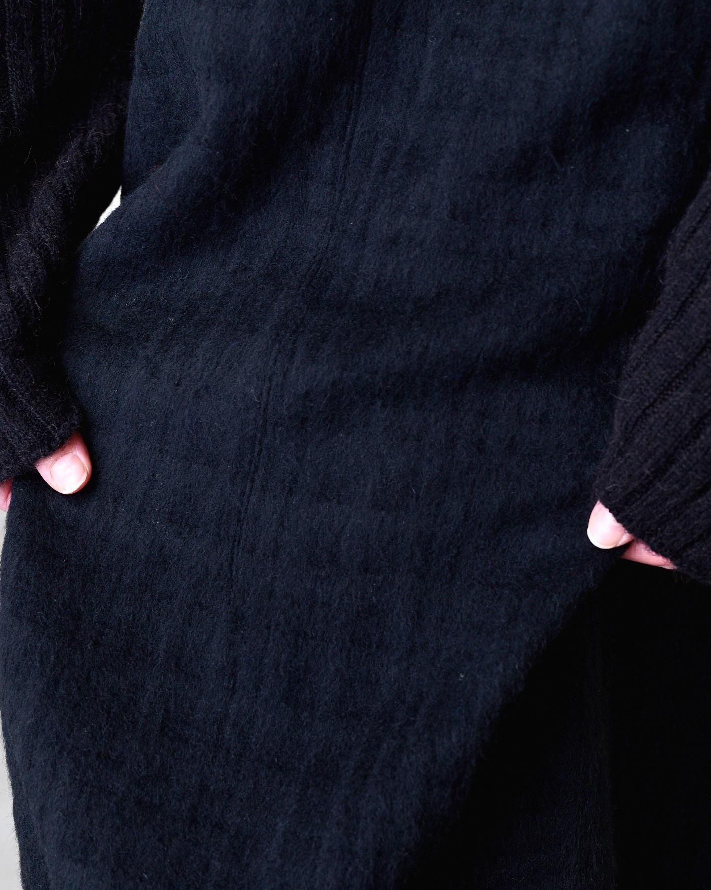 黒地にチャコールを織り込んだチェック柄は、無地のように着回せながら、単なるブラックとは一味違う洗練された着こなしを完成させてくれます。