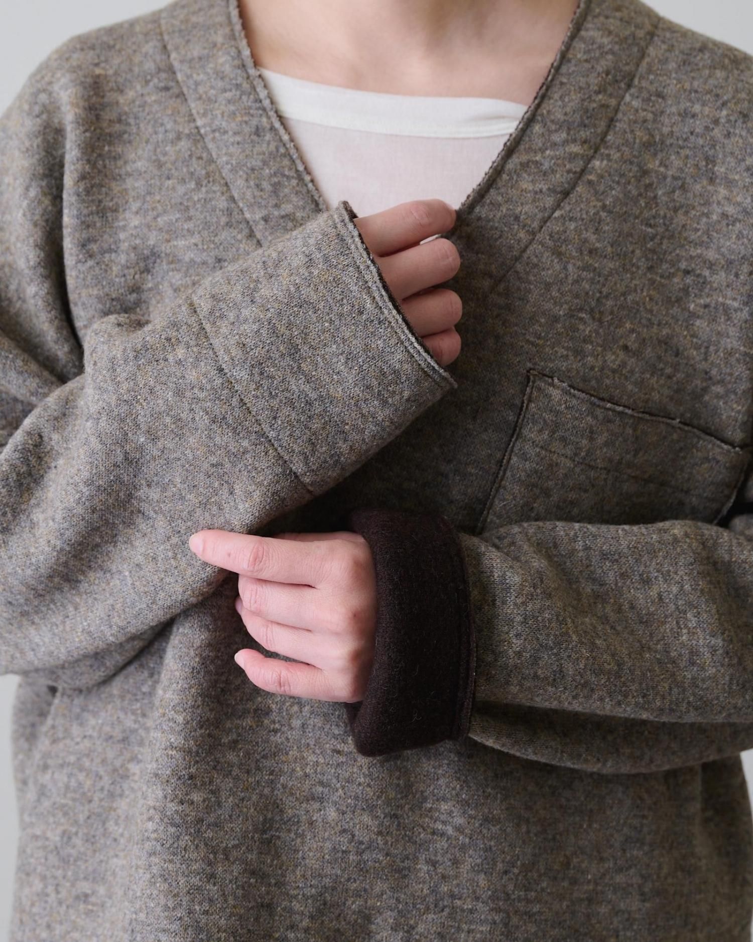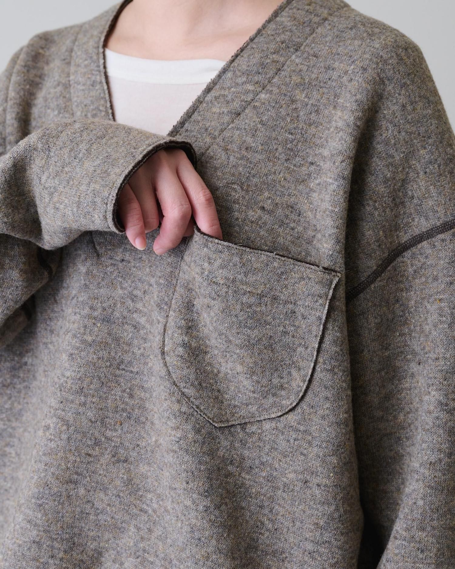 このプルオーバーは、学生達が学校や宿舎の中で着ているスクールジャージをイメージして作られたものです。