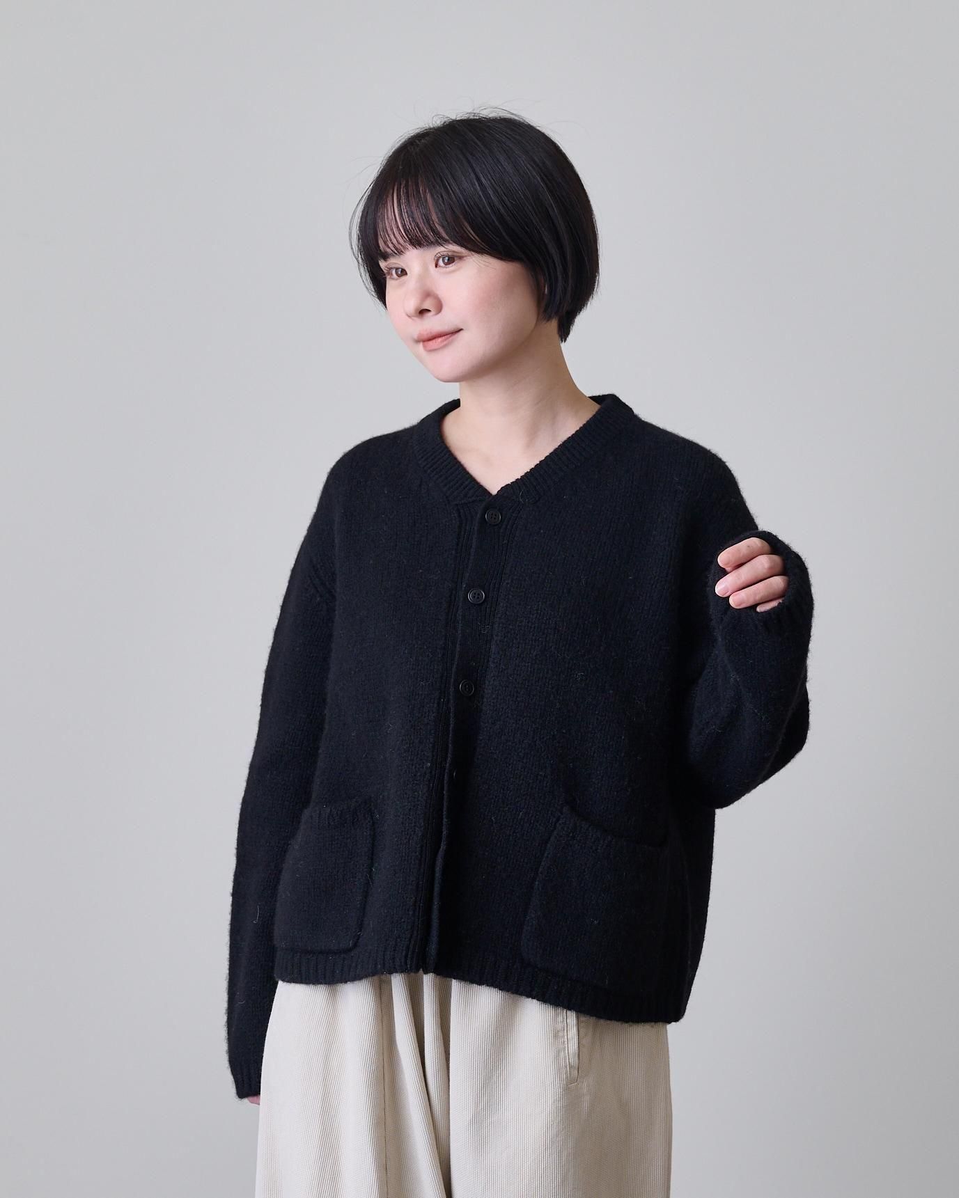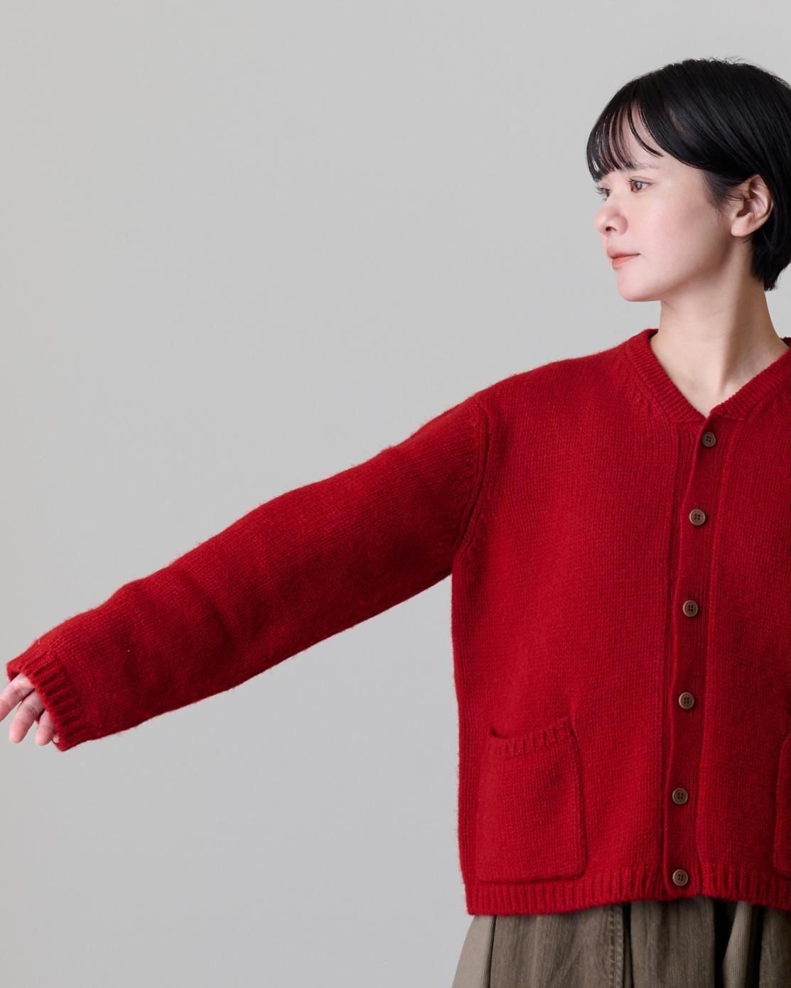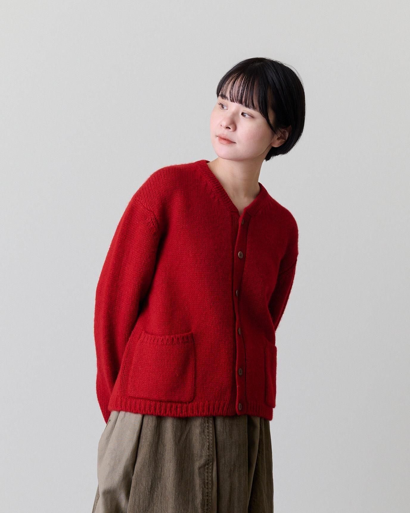 短めの丈はボトムスを選ばず、控えめのVネックはカーディガンとしてはもちろんのこと、プルオーバーとしての着こなしも楽しめます。